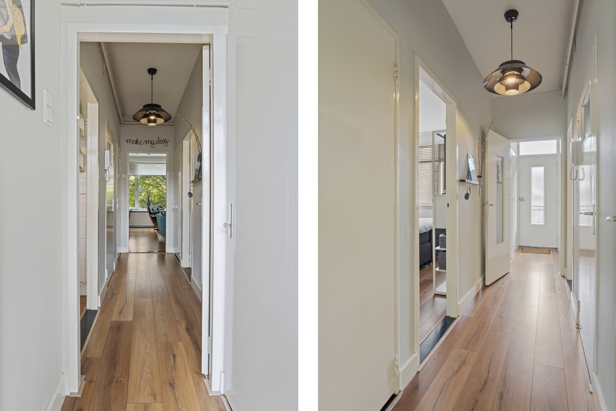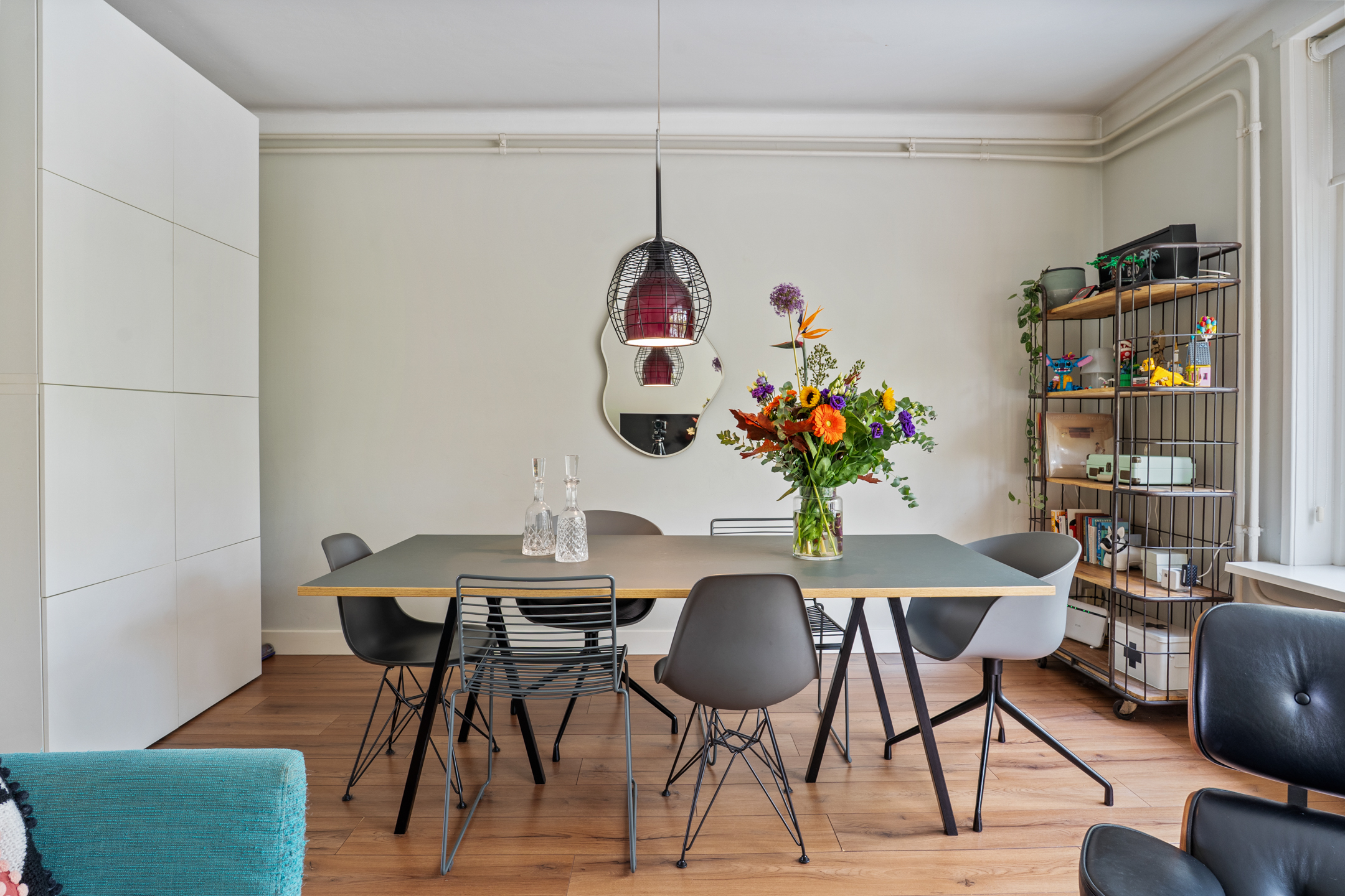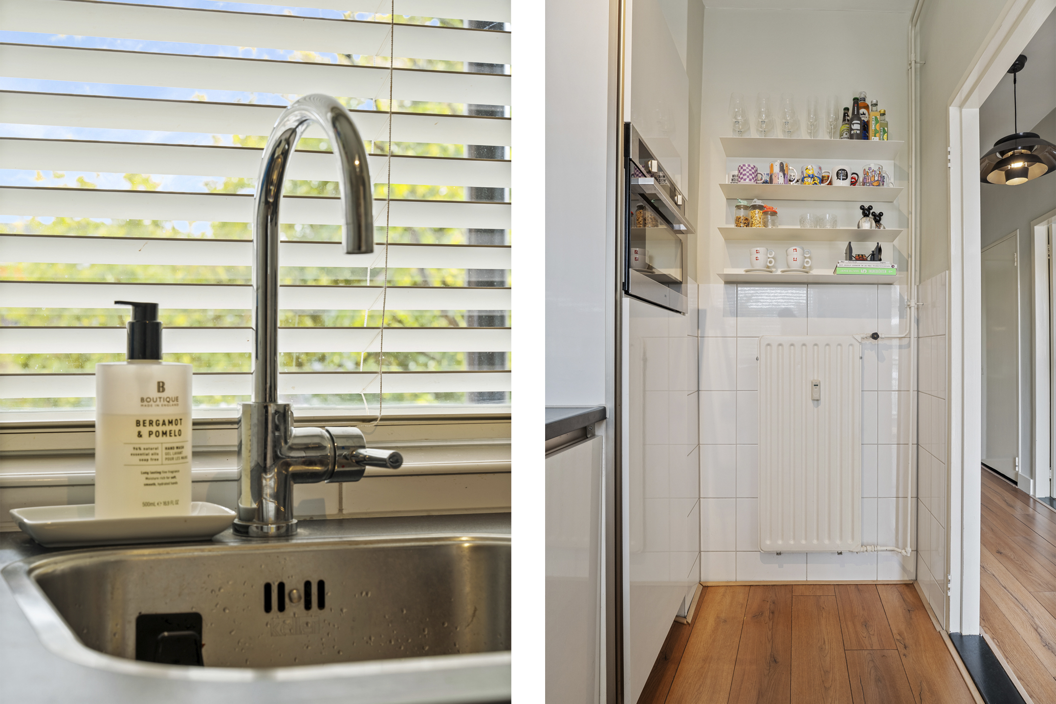 De nette laminaatvloer en strakke wanden zorgen voor een moderne, frisse uitstraling. Vanuit de woonkamer heb je toegang tot het zonnige balkon op het zuidwesten — een fijne plek om in de middag en avond te ontspannen in de zon.