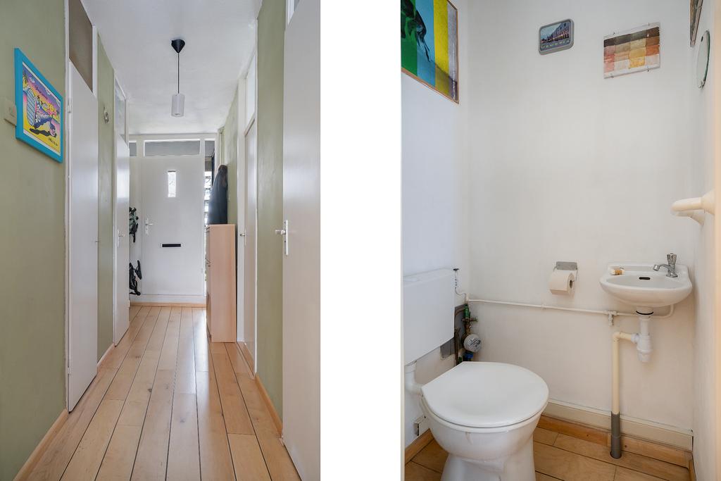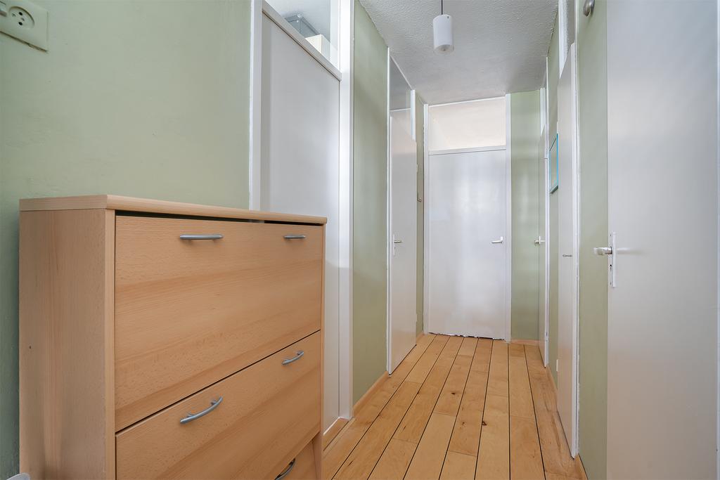 Hal met toegang tot de slaapkamers, badkamer, meterkast en de woonkamer.