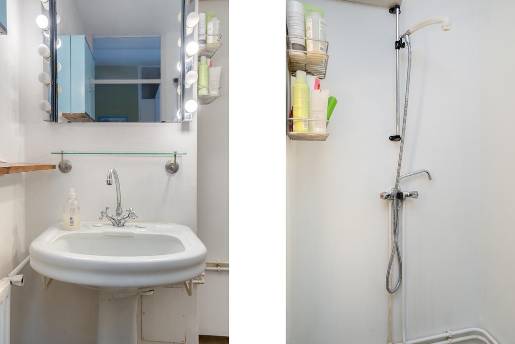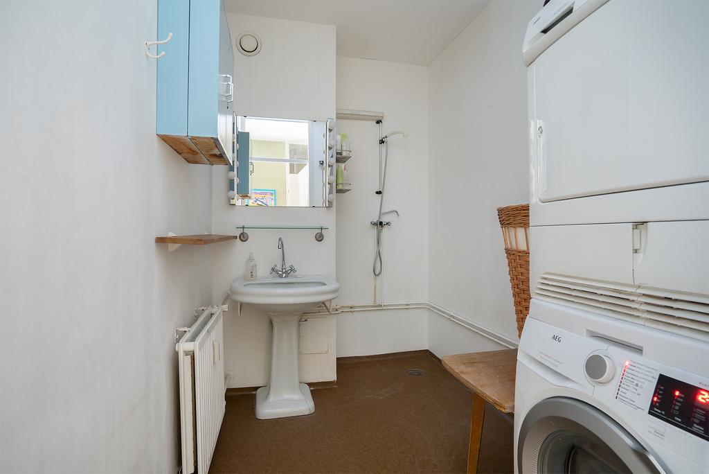 De badkamer is ruim en voorzien van inloopdouche, wastafelmeubel en wasmachineaansluiting.