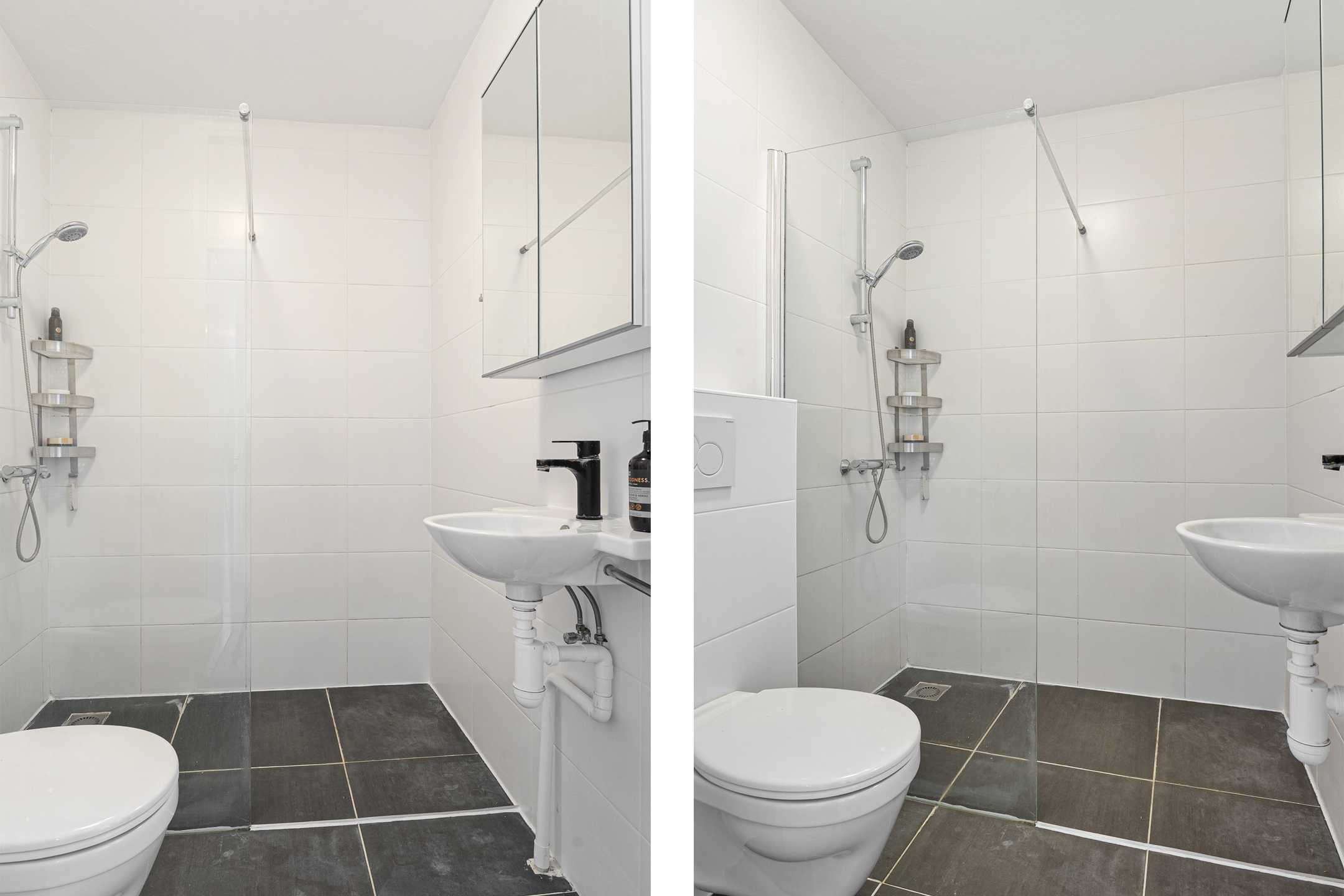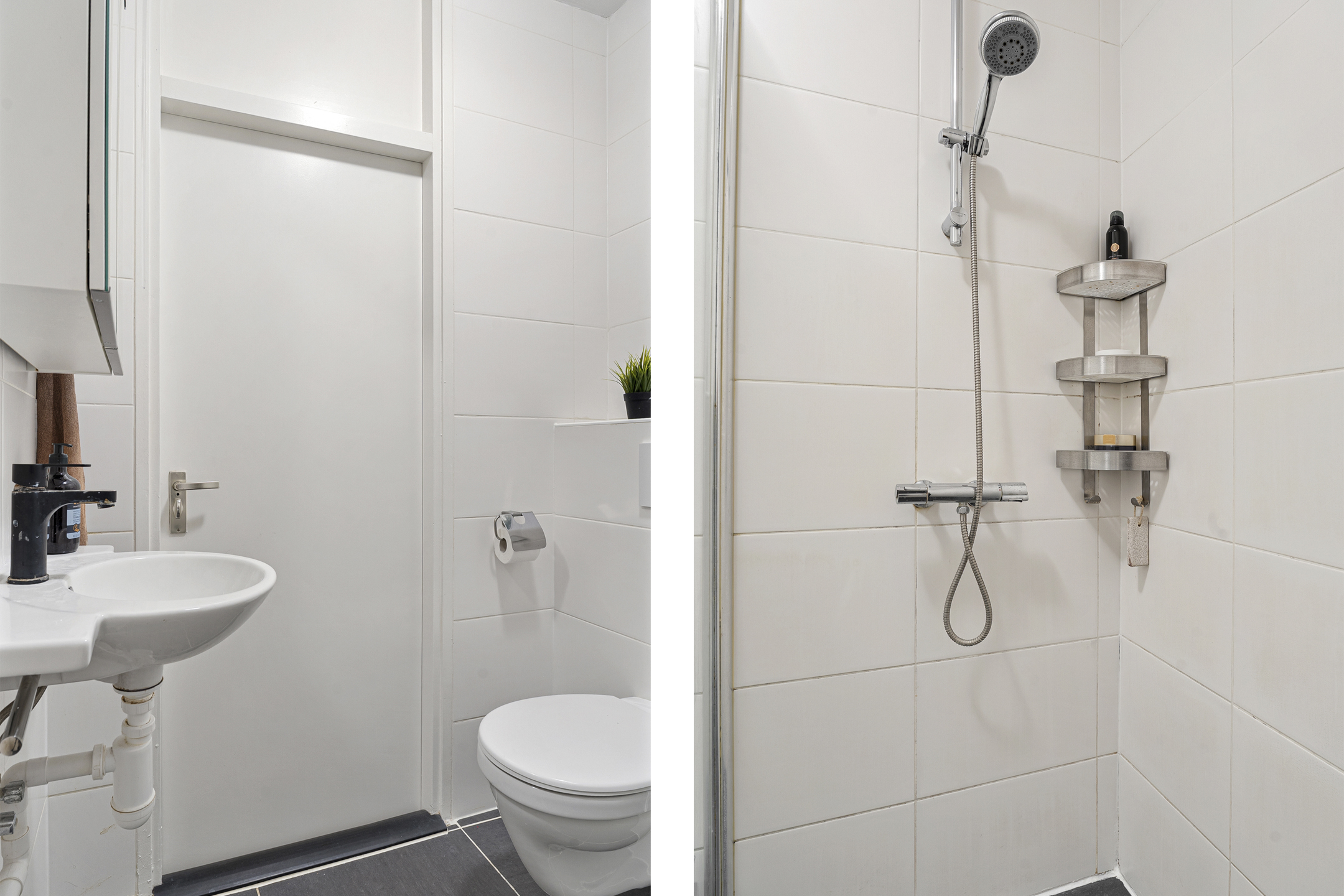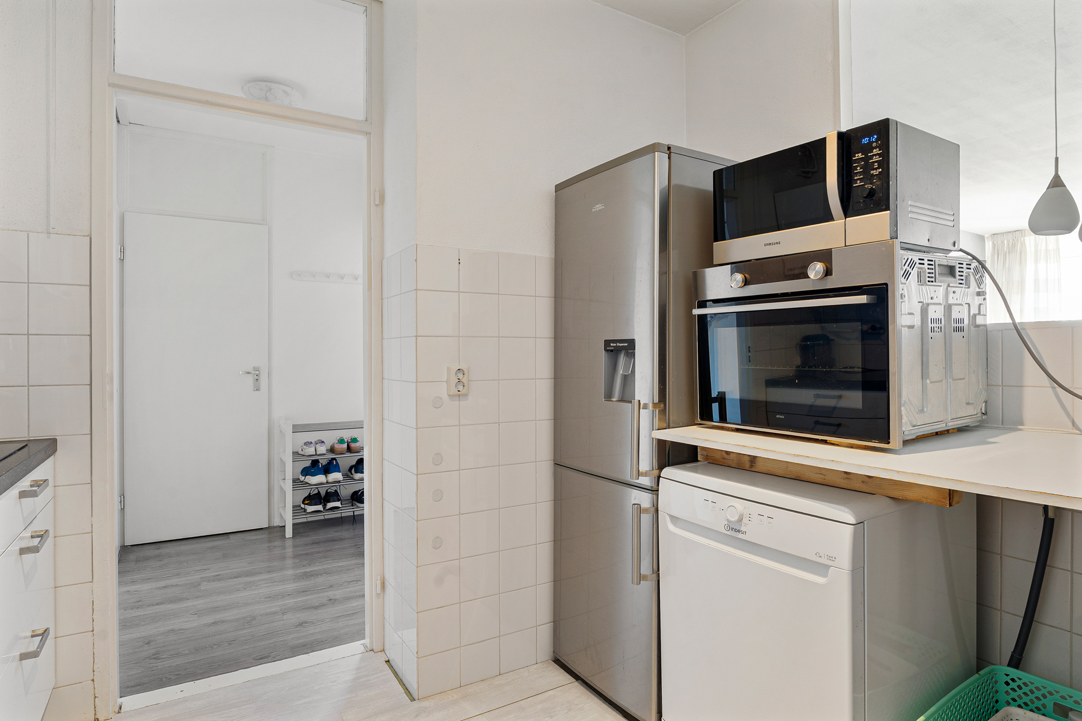 De keuken aan de voorzijde is praktisch ingedeeld en voorzien van diverse inbouwapparatuur en een aansluiting voor de wasmachine. De neutrale badkamer is goed onderhouden en beschikt over een inloopdouche, wastafel en toilet.