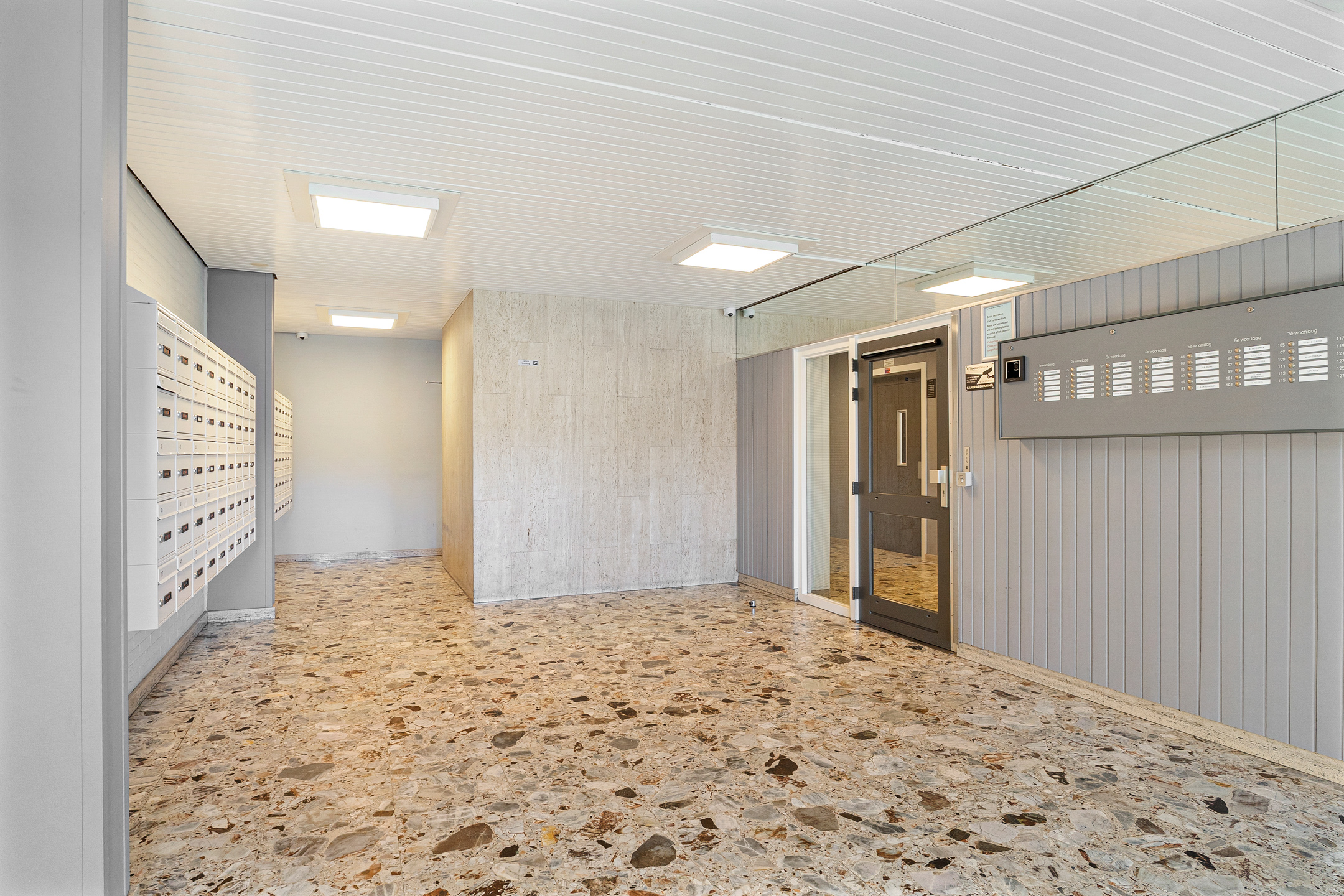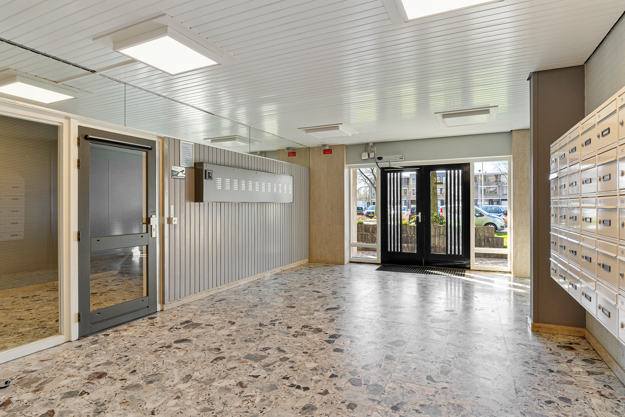 Het verzorgde appartementencomplex bestaat uit 72 woningen, verdeeld over 12 woonlagen. De fraaie centrale entree is voorzien van travertin wandtegels, natuurstenen vloertegels, een bellenbord, brievenkasten en een intercominstallatie. Beveiligingscamera’s zorgen voor extra veiligheid. Via een afgesloten toegang kom je in de tussenhal met twee liften en een trappenhuis.