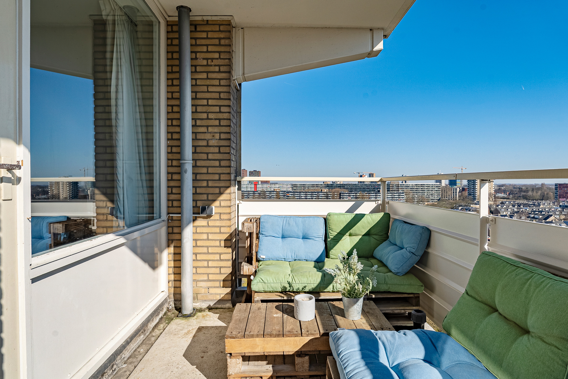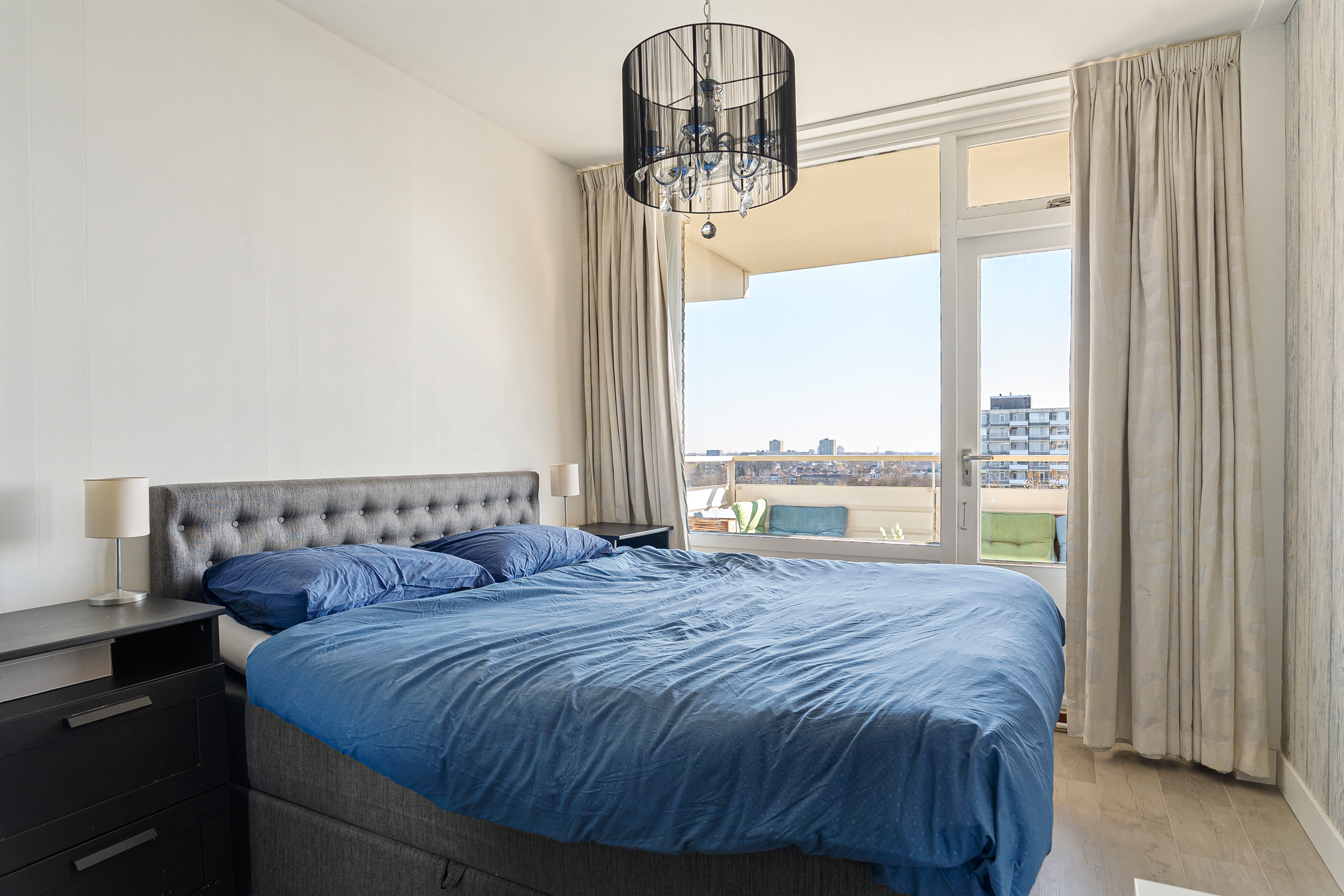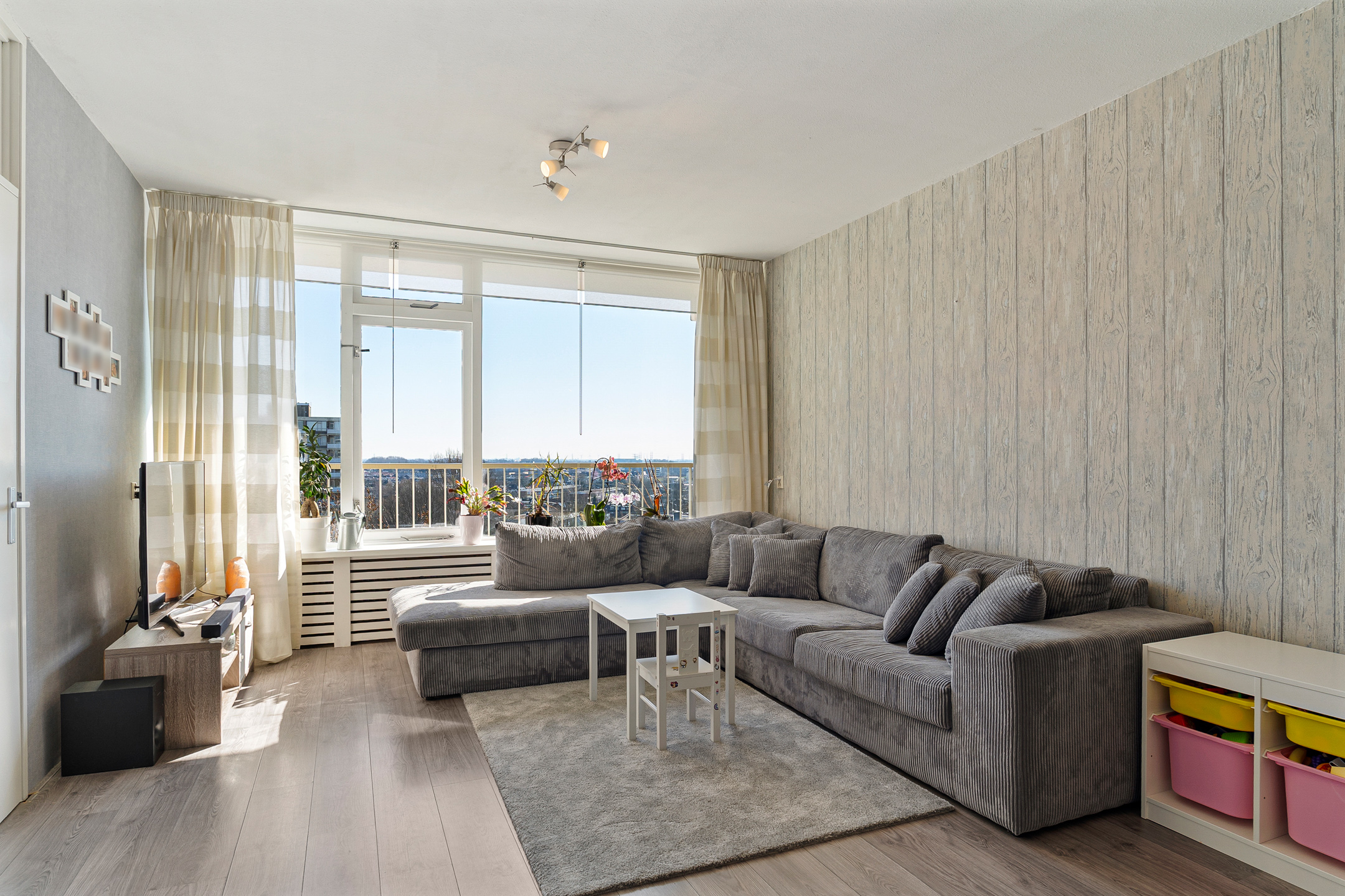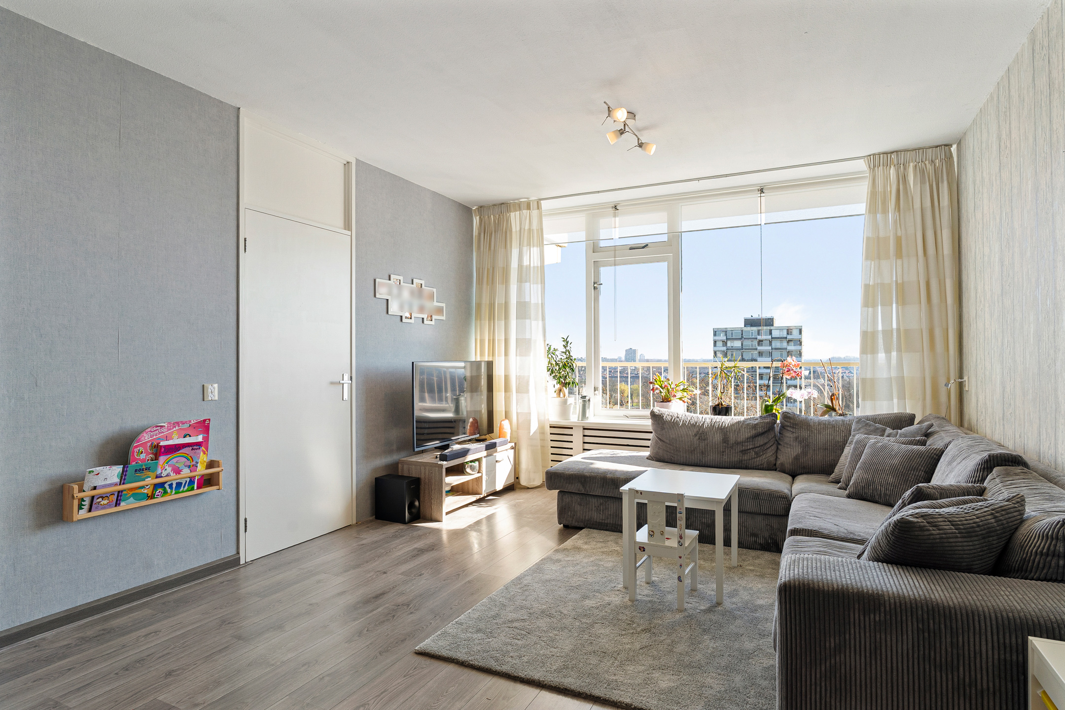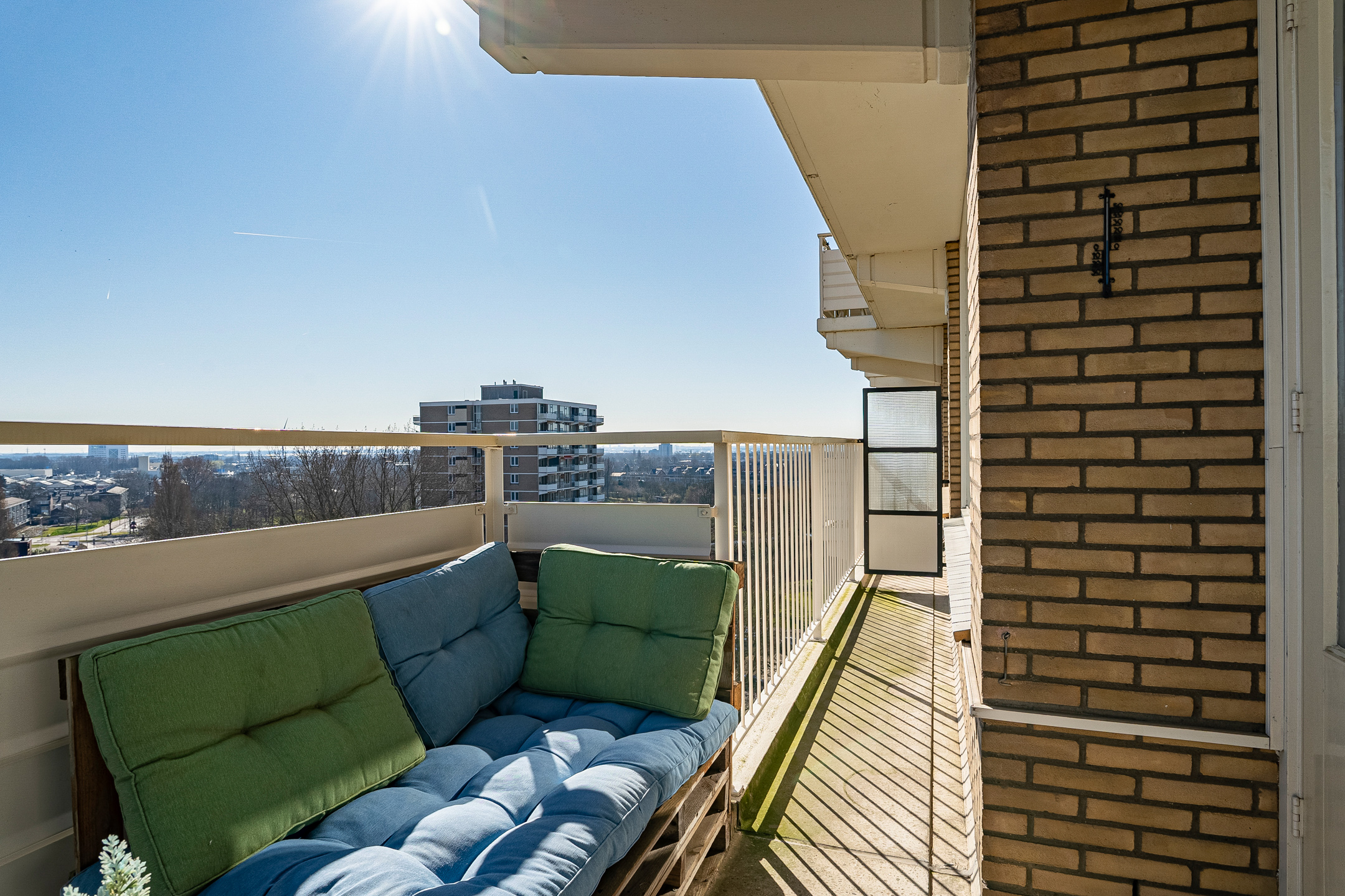 Wonen op hoogte met een panoramisch uitzicht! Dit lichte en goed onderhouden hoekappartement op de 11e verdieping biedt alle comfort die je zoekt. Met een ruime woonkamer, twee fijne slaapkamers en een praktische keuken woon je hier heerlijk. Het woningbrede balkon op het oosten laat je optimaal genieten van de ochtendzon en het vrije uitzicht over de stad.