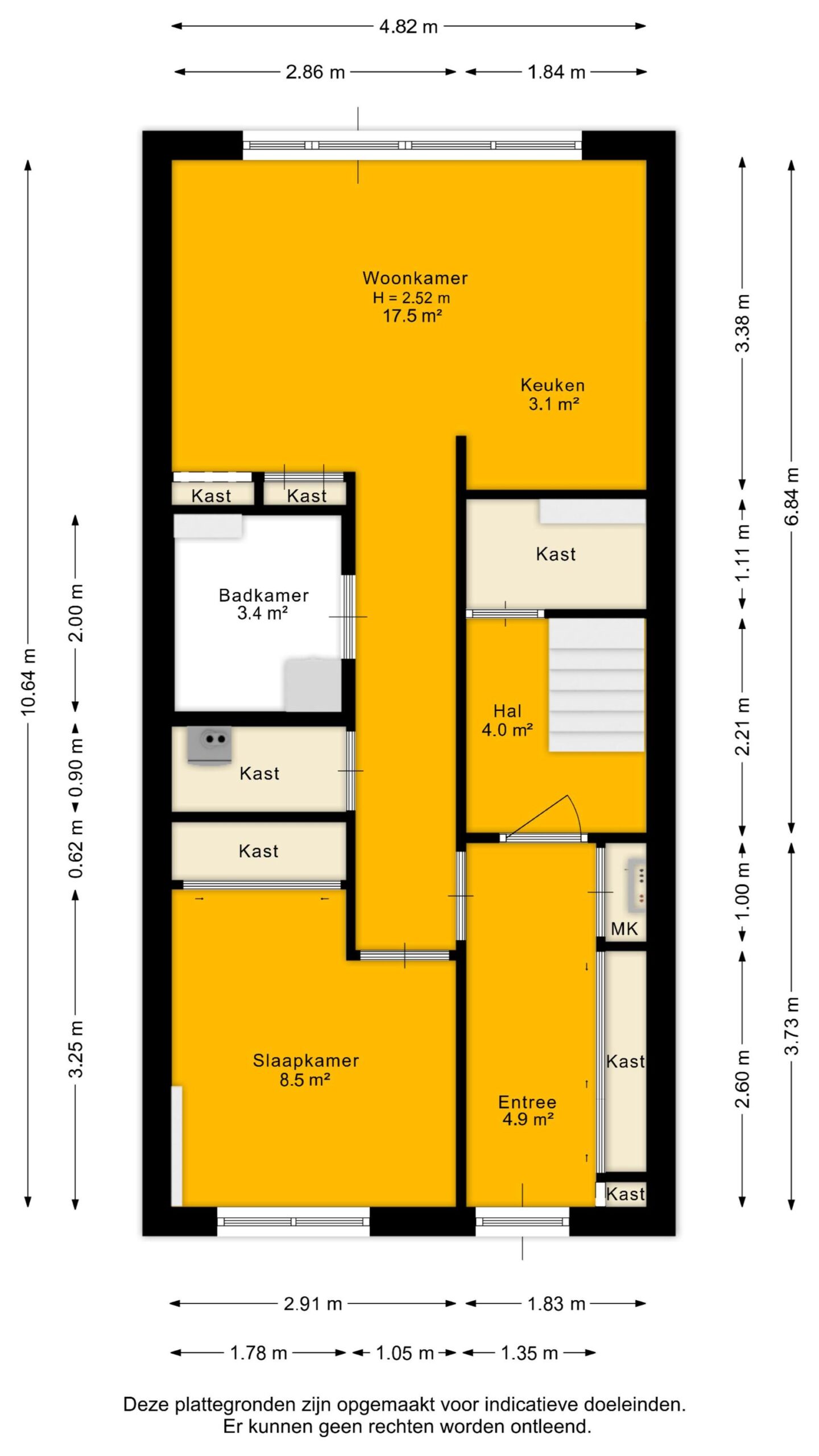 Je komt binnen in de verzorgde hal met garderobe, meterkast en trapopgang. Wat direct opvalt, is de slimme indeling: vanuit de hal heb je toegang tot twee afzonderlijke gedeeltes dankzij twee deuren. Eén deur leidt naar de begane grond zelf, terwijl de andere deur toegang geeft tot de trap richting de eerste en tweede verdieping. Dit biedt een interessante mogelijkheid om het huis deels af te scheiden, ideaal als je bijvoorbeeld een inwonende zoon, student of een familielid dat zorg nodig heeft een eigen plek wilt geven.