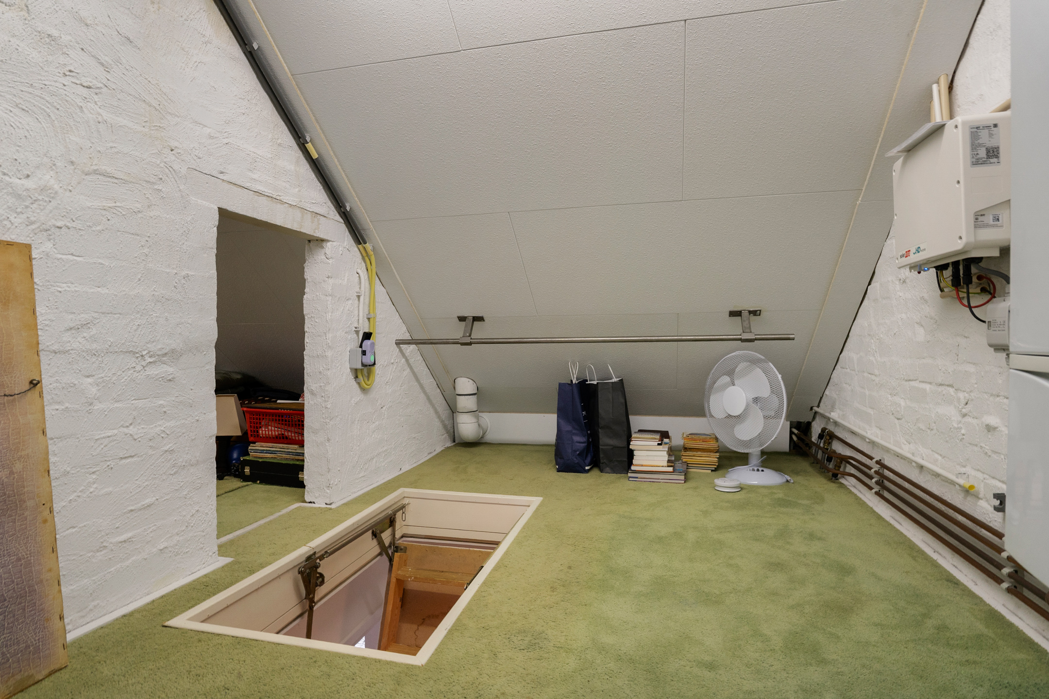 Via de vlizotrap bereikbare praktische bergvliering met opstelplaats voor de stookapparatuur en de omvormer ten behoeve van de zonnepanelen. Ideaal voor extra opslag.