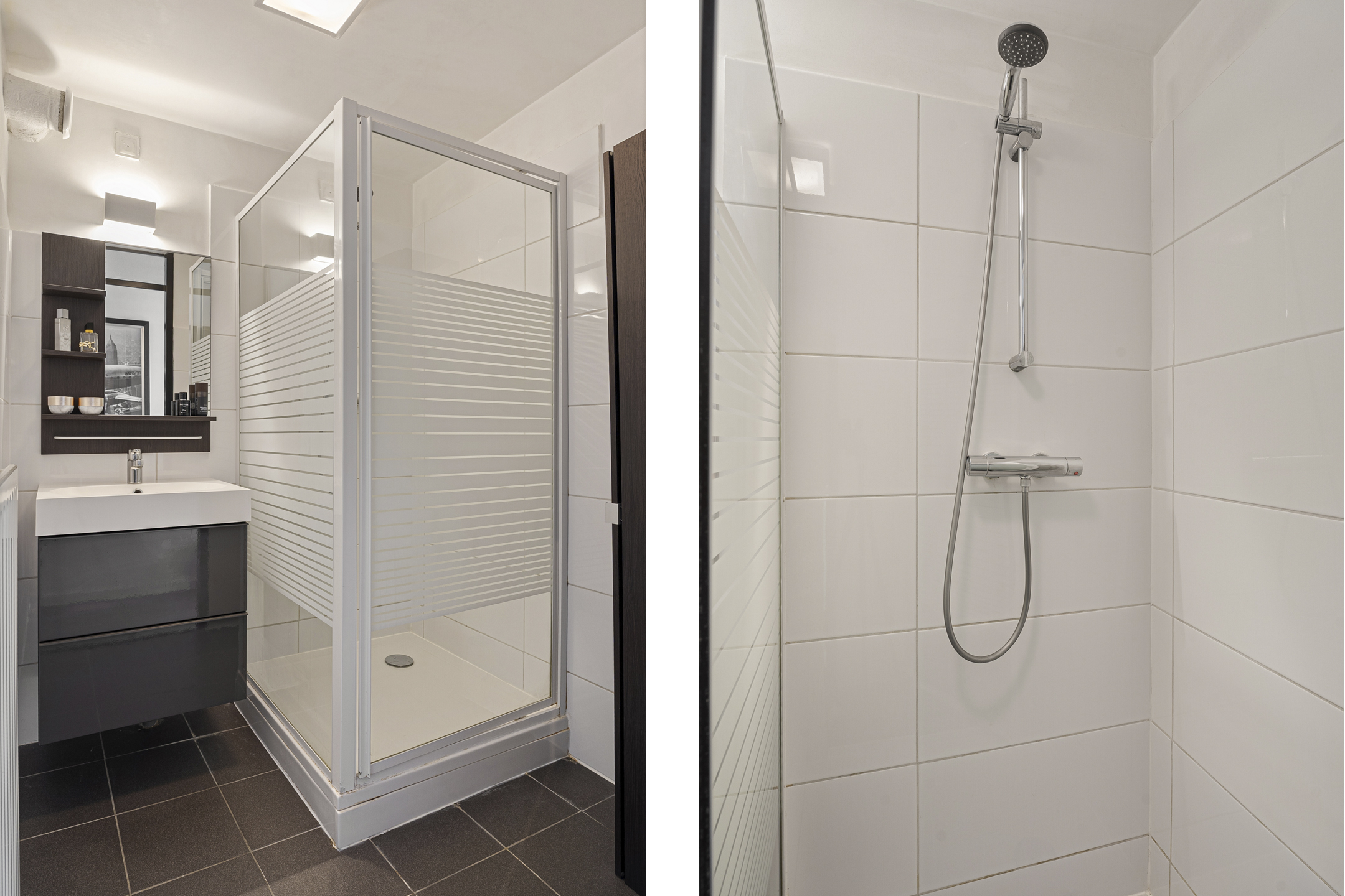 De badkamer is netjes afgewerkt en voorzien van de benodigde sanitaire voorzieningen. Daarnaast is er een separaat toilet aanwezig.