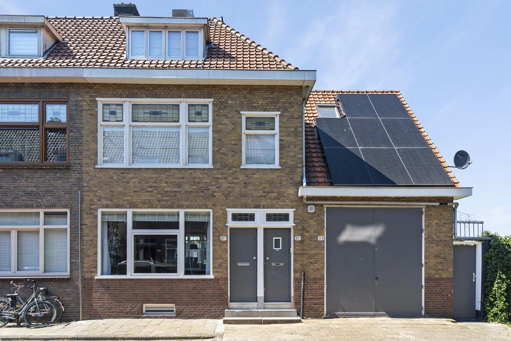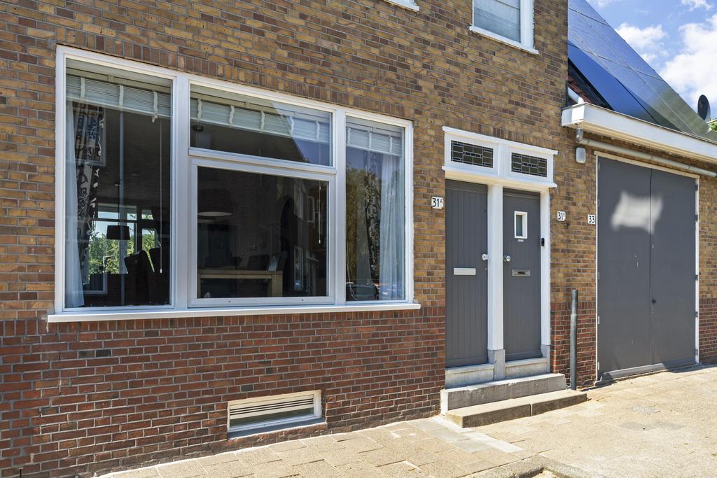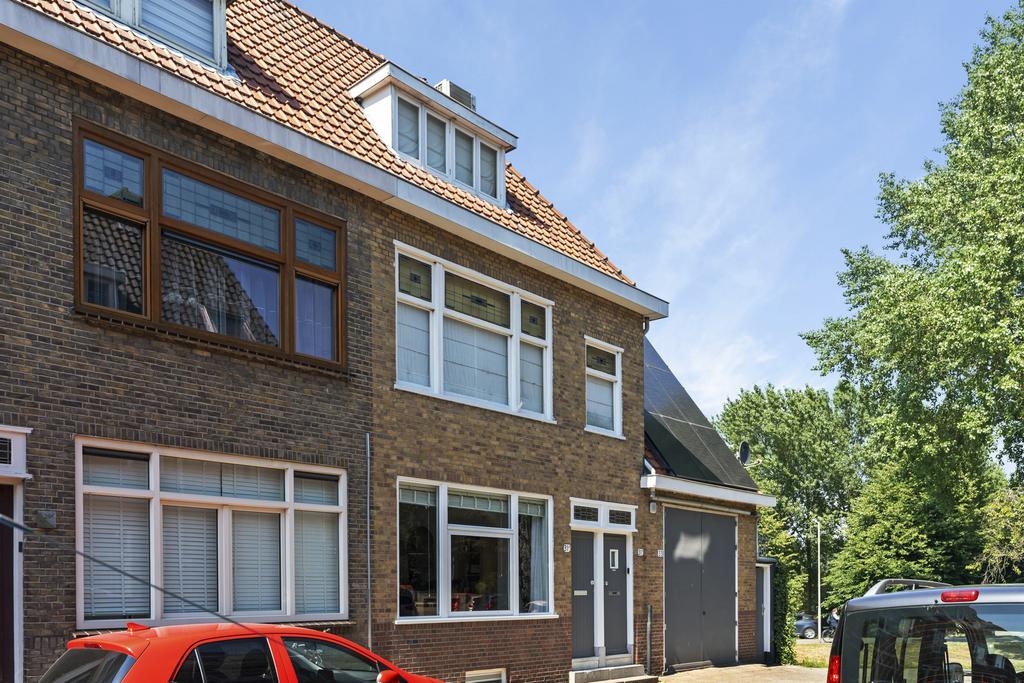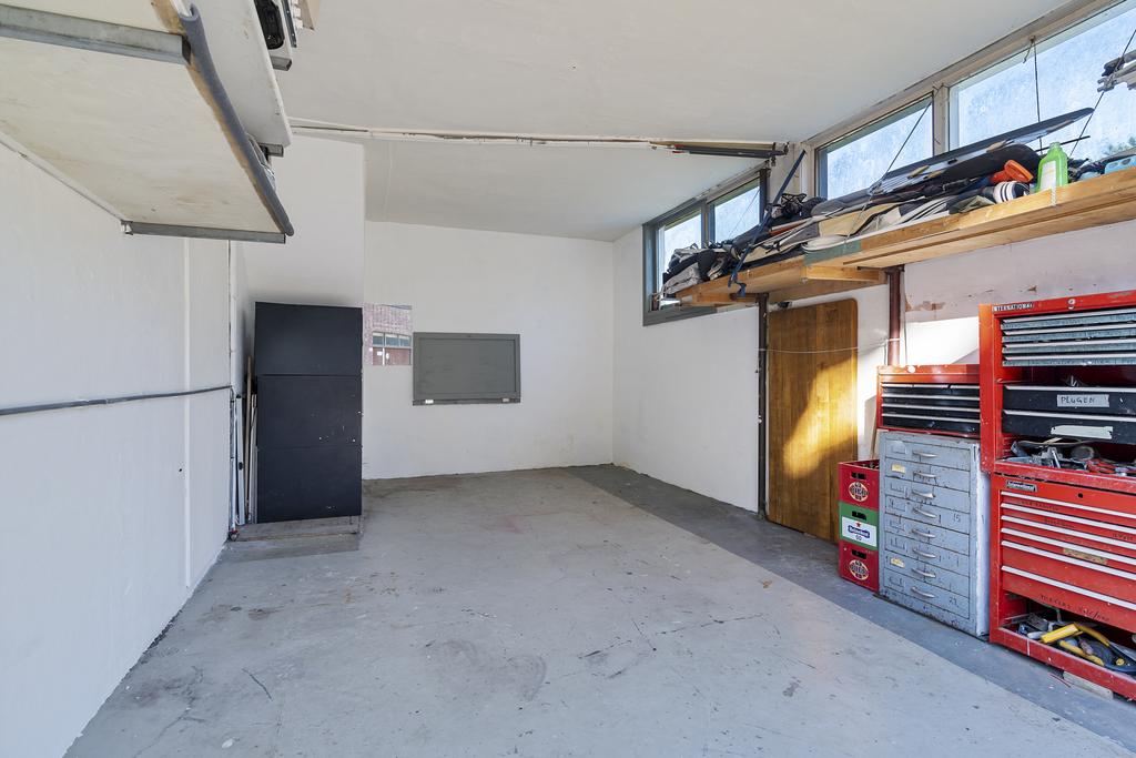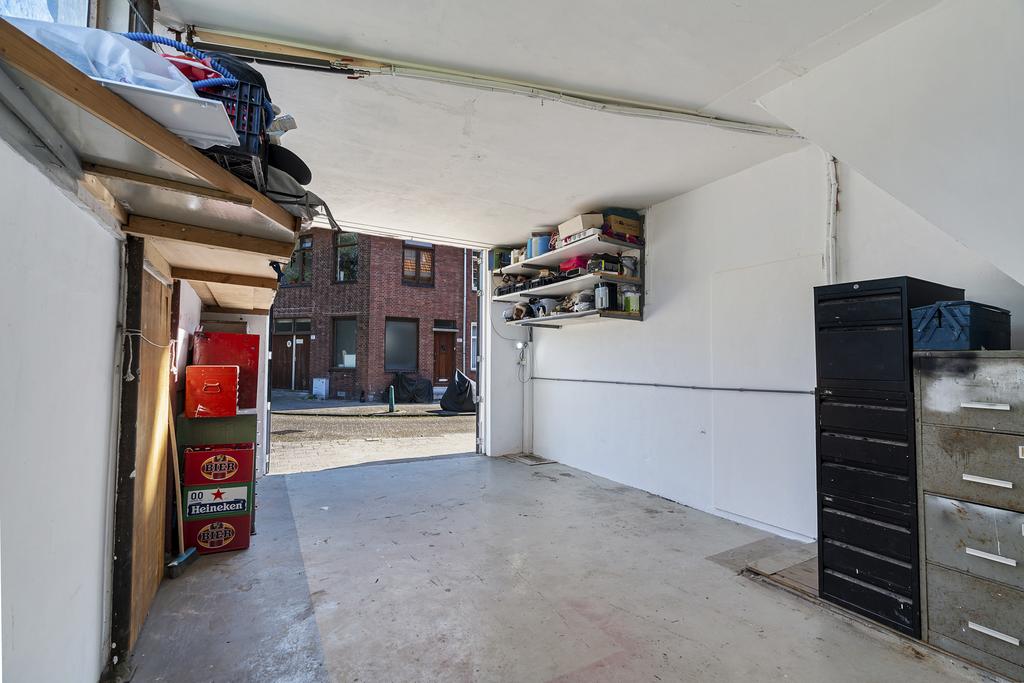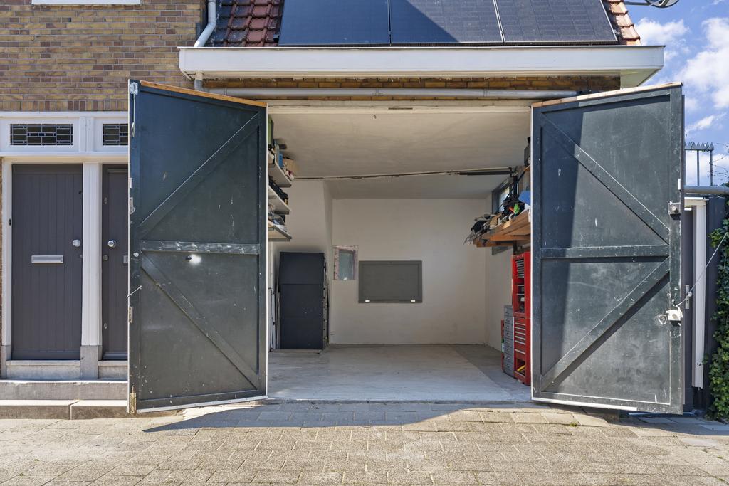 Aan het einde van de rustige straat is de eigen voordeur te vinden. Hiernaast is ook de garage gelegen. Via hoge en brede dubbele deuren is de garage te betreden. De ruim 6.5 meter diepe garage is voor een auto, fietsen, brommers, motoren, maar het kan ook gebruikt worden als werkplaatsruimte.