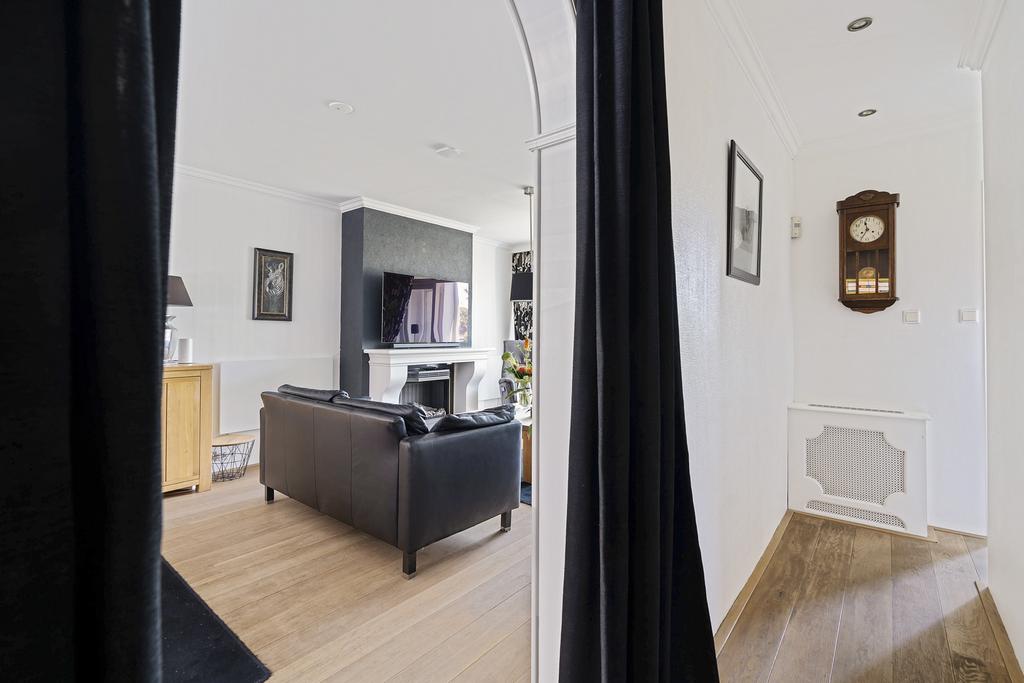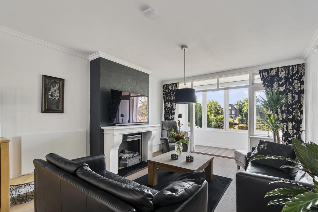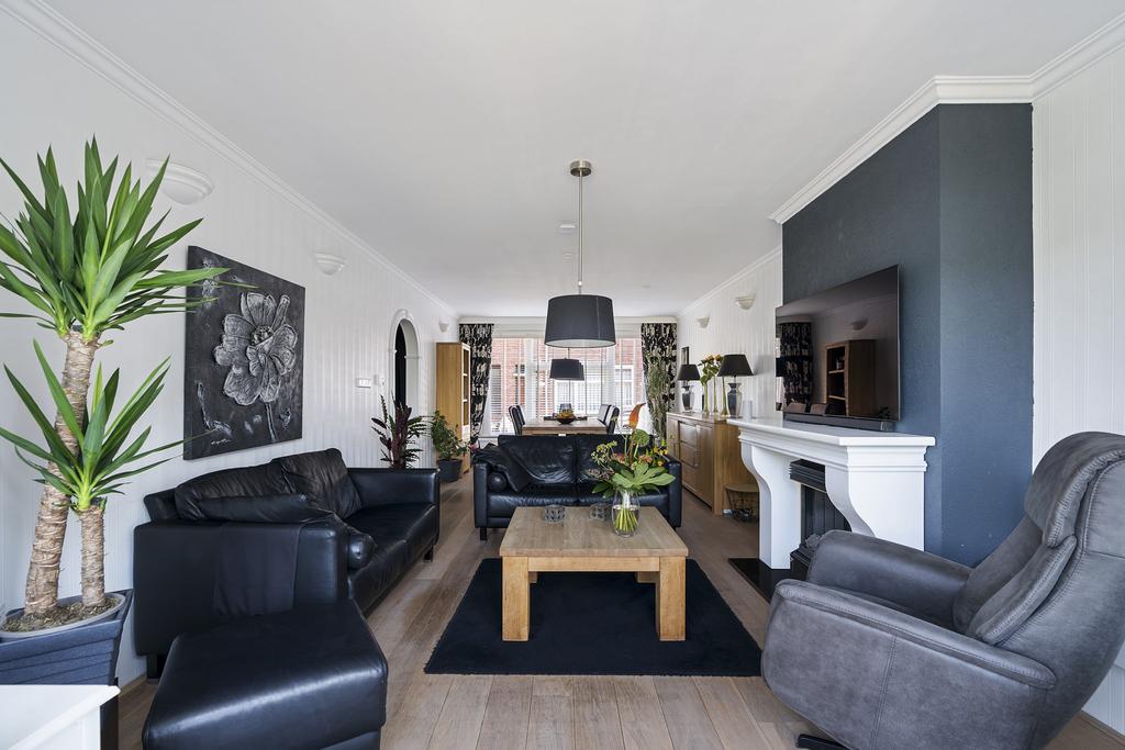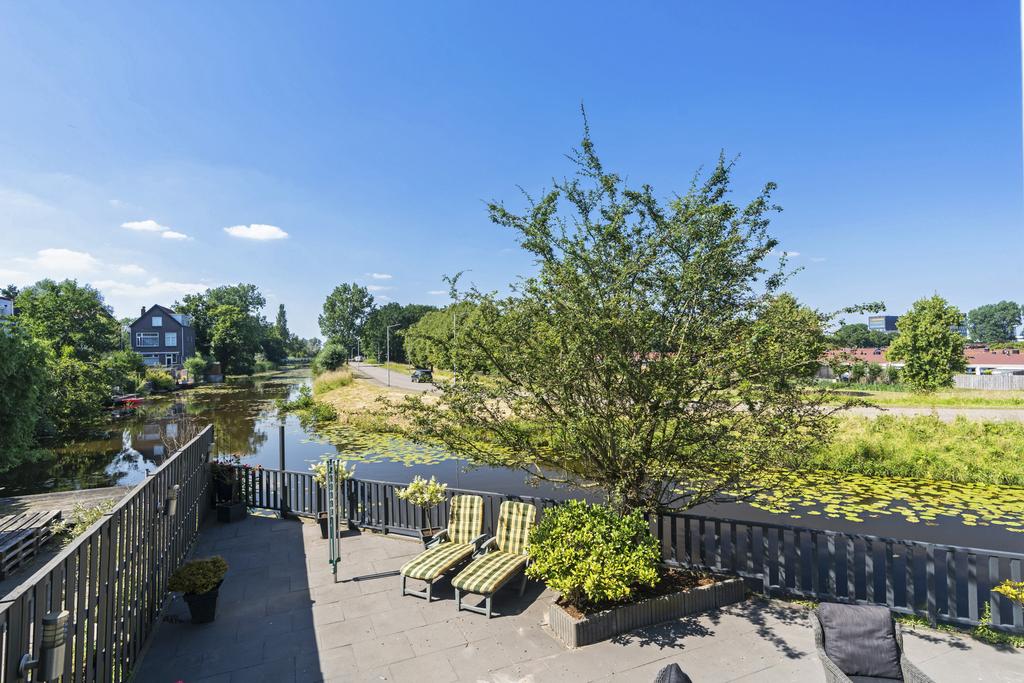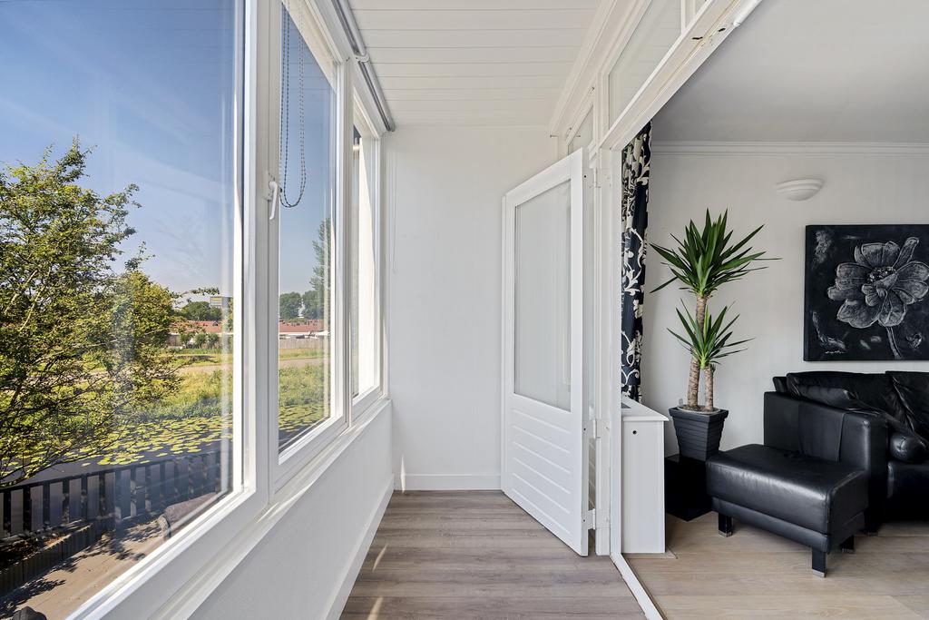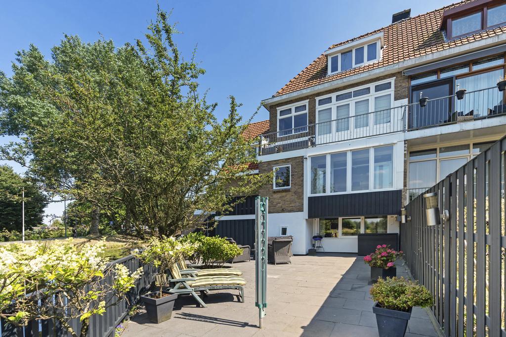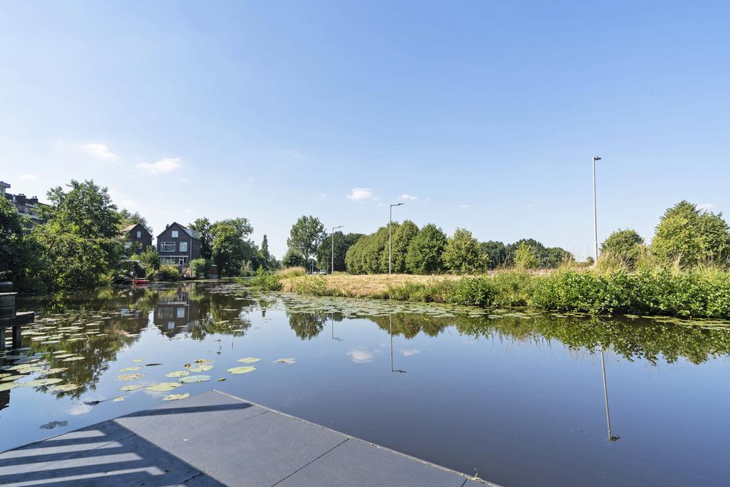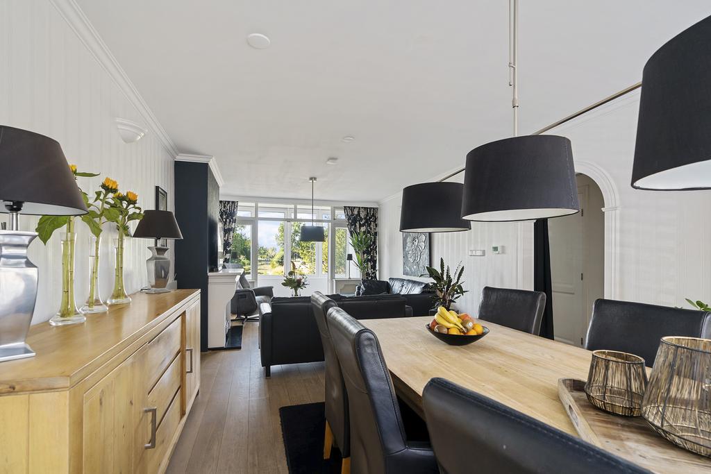Via het tochtportaal is de hal bereikbaar. De hal geeft toegang tot de trap naar de eerste verdieping en de trap naar het souterrain. De 8.30 meter diepe doorzonwoonkamer is voorzien van een Amerikaanse eikenvloer, een sfeerhaard en geeft een geweldig uitzicht op het water en de Achterdijk. Dit vrije uitzicht is werkelijk prachtig!