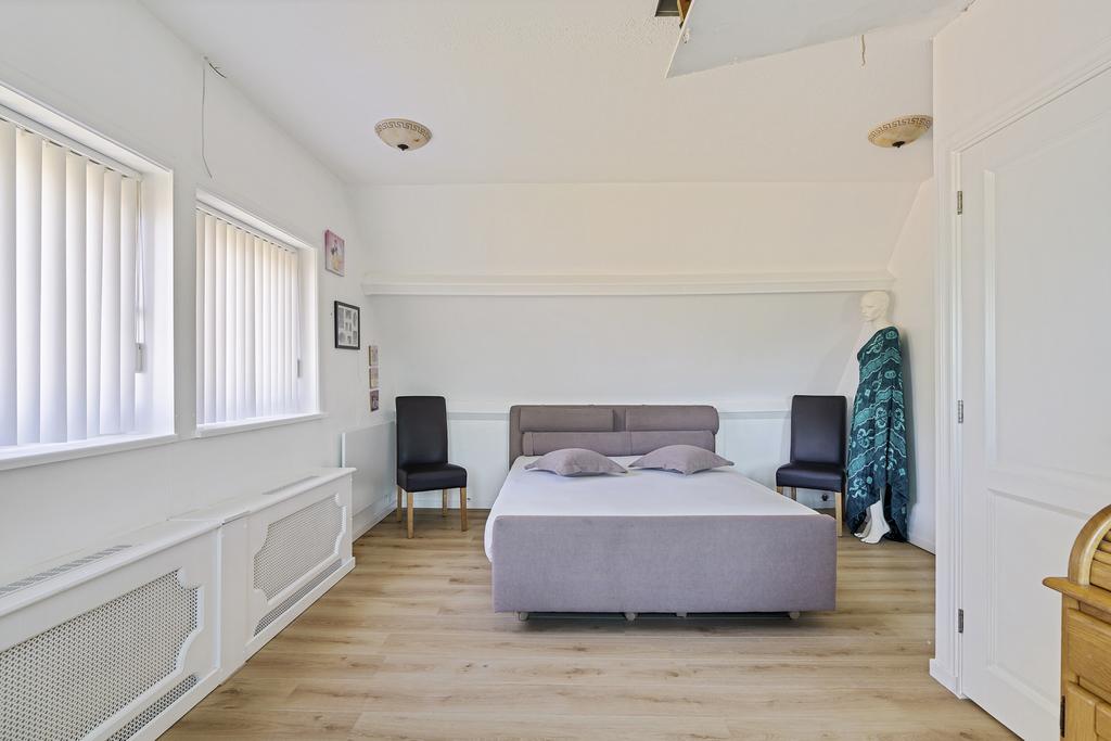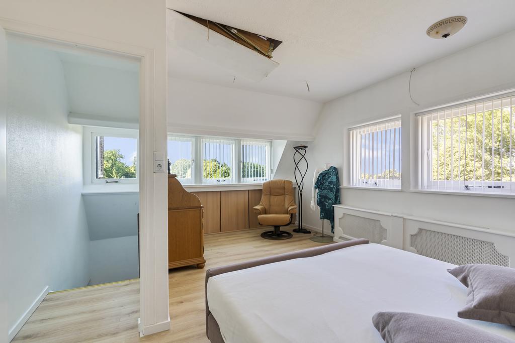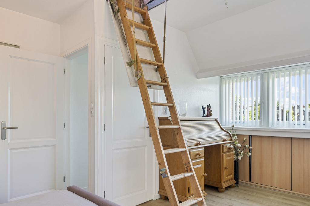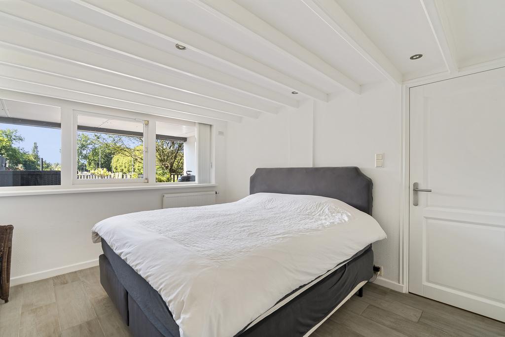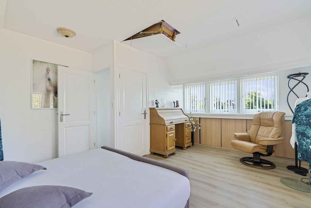 Via de trap is de ruime derde slaapkamer te bereiken. Deze slaapkamer is voorzien van een groot raam en is gelegen boven de garage. Via een vlizotrap is de ruime bergzolder bereikbaar.