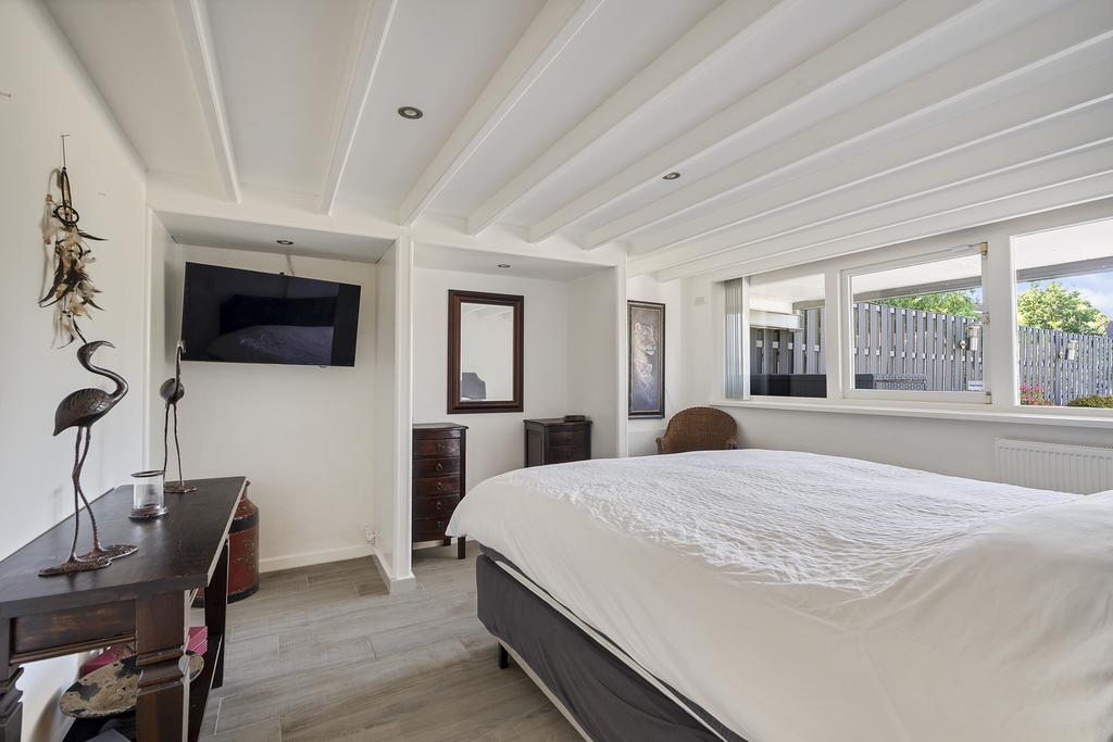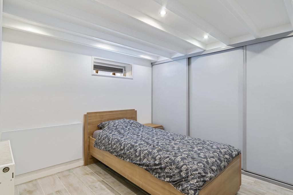 De eerste slaapkamer is te vinden aan de voorzijde van de woning. Deze slaapkamer is voorzien van ruime inbouwkasten, waardoor en meer dan voldoende kastruimte is. De tweede slaapkamer is aan de achterzijde gelegen en voorzien van een groot raam en spotjes in het plafond. De moderne badkamer is ook aan de achterzijde gelegen en is 1.5 jaar geleden volledig gerenoveerd en is nu voorzien van een losse wastafel, wandcloset en een stoomdouche. De badkamer is volledig betegeld en wordt verwarmd middels een infraroodpaneel. Aan de achterzijde is de waskamer gelegen. De wasmachine en droger staan op een verhoging, waardoor je niet meer hoeft te bukken om de was eruit te halen.
