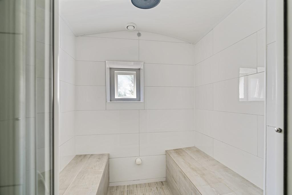 Vanuit de tuin is de ruimte met de cv-ketel bereikbaar. Via deze ruimte is ook de privé sauna te bereiken. Ideaal om een lange dag mee af te sluiten!