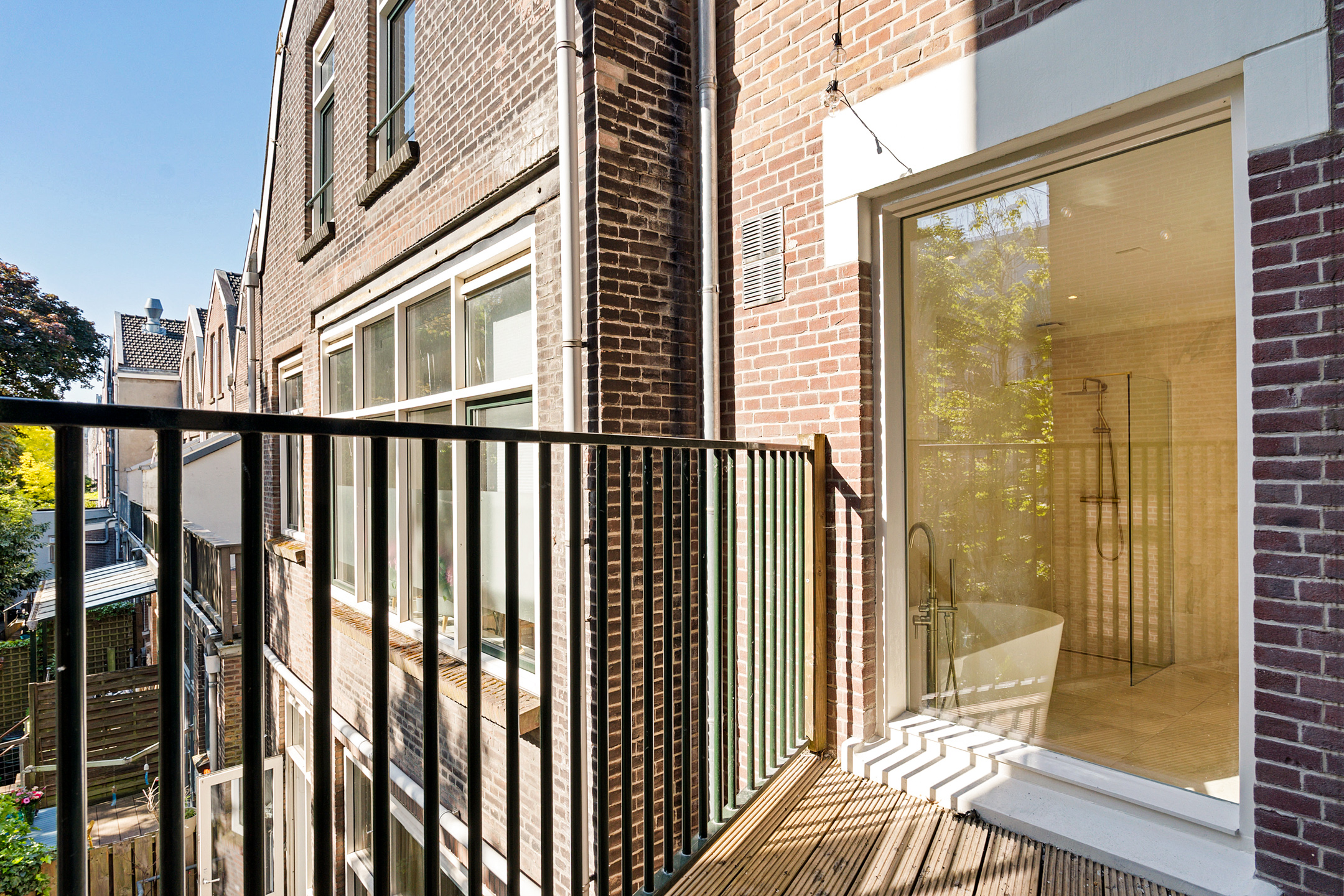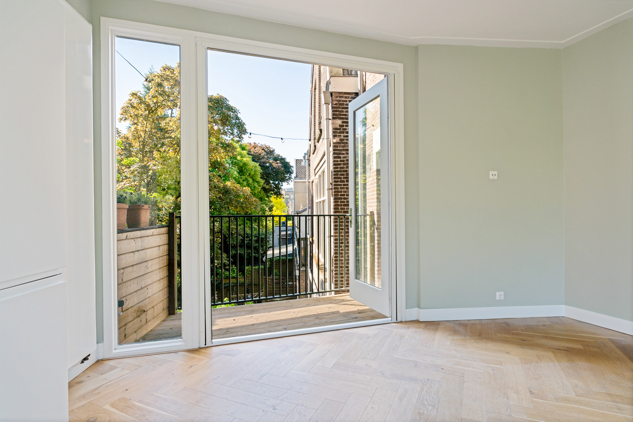 De hoge openslaande deuren geven toegang tot het zonnige balkon op het zuiden, een heerlijke plek om te ontspannen.
