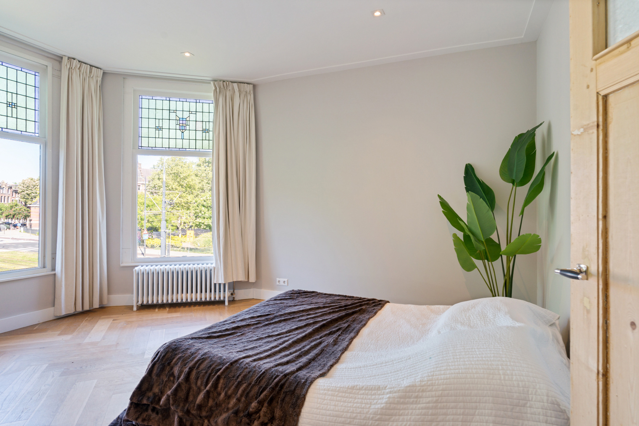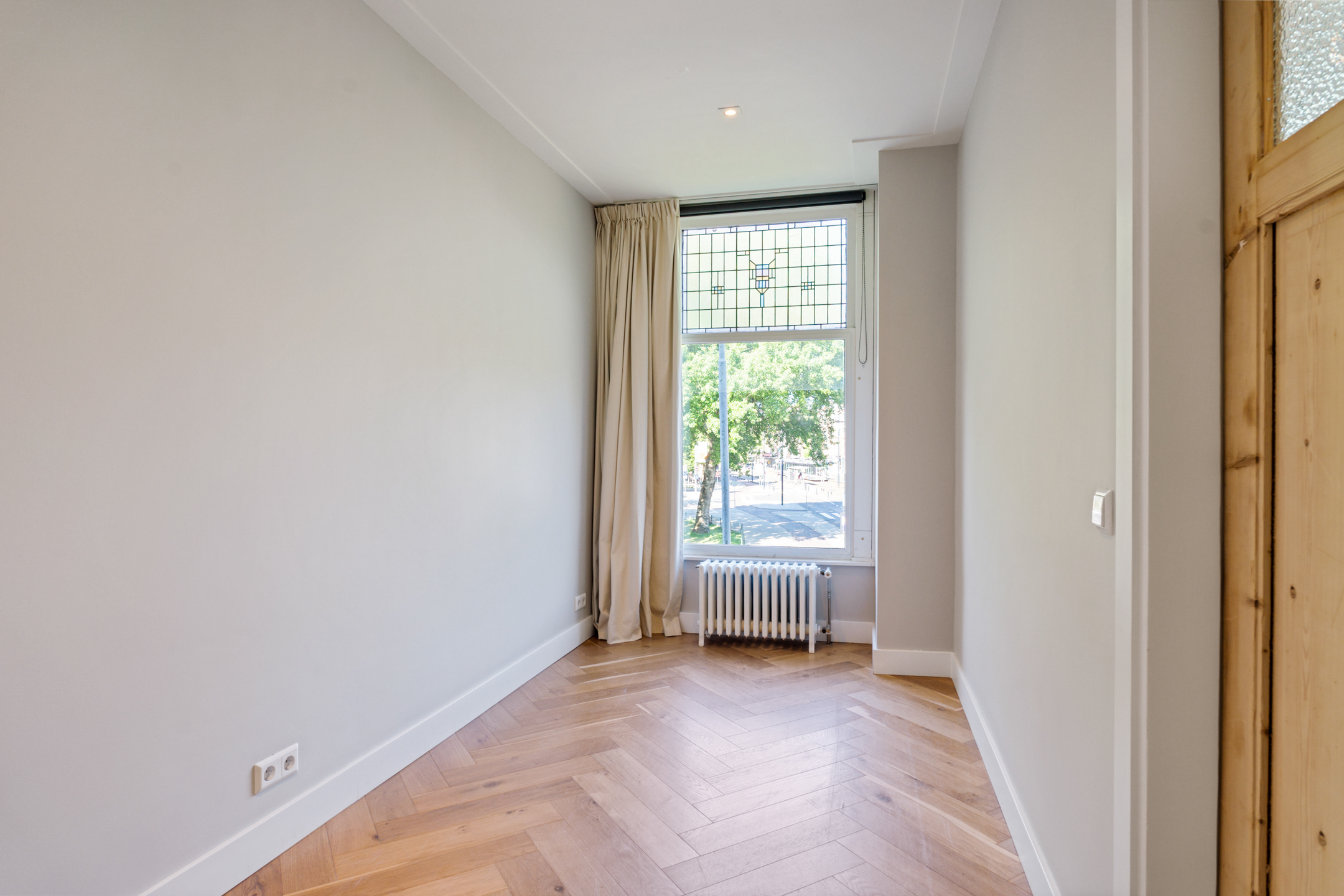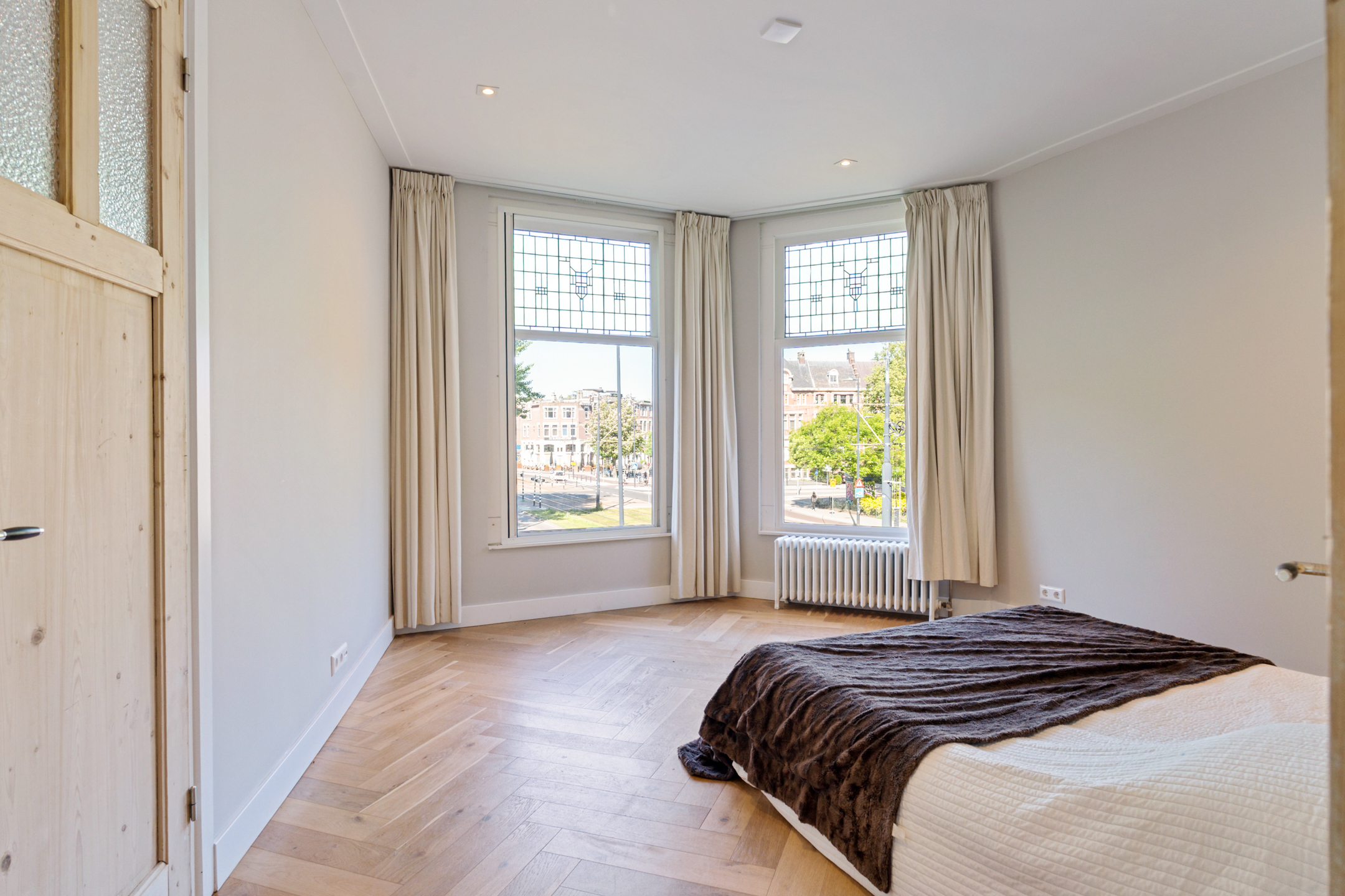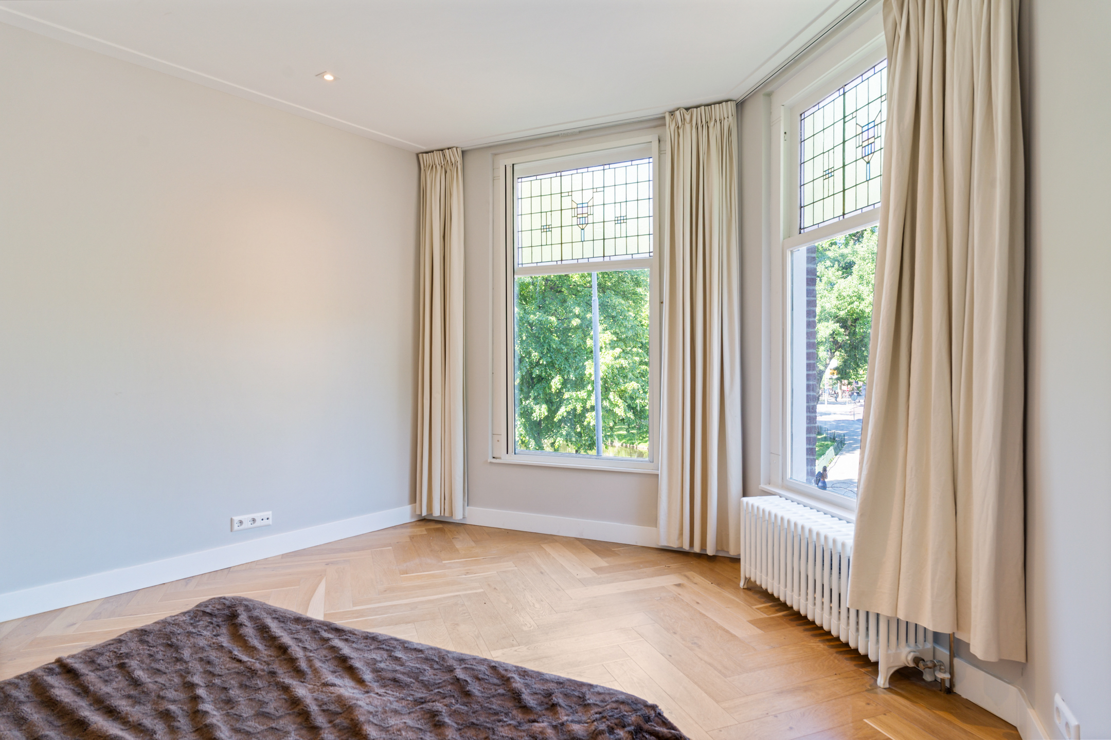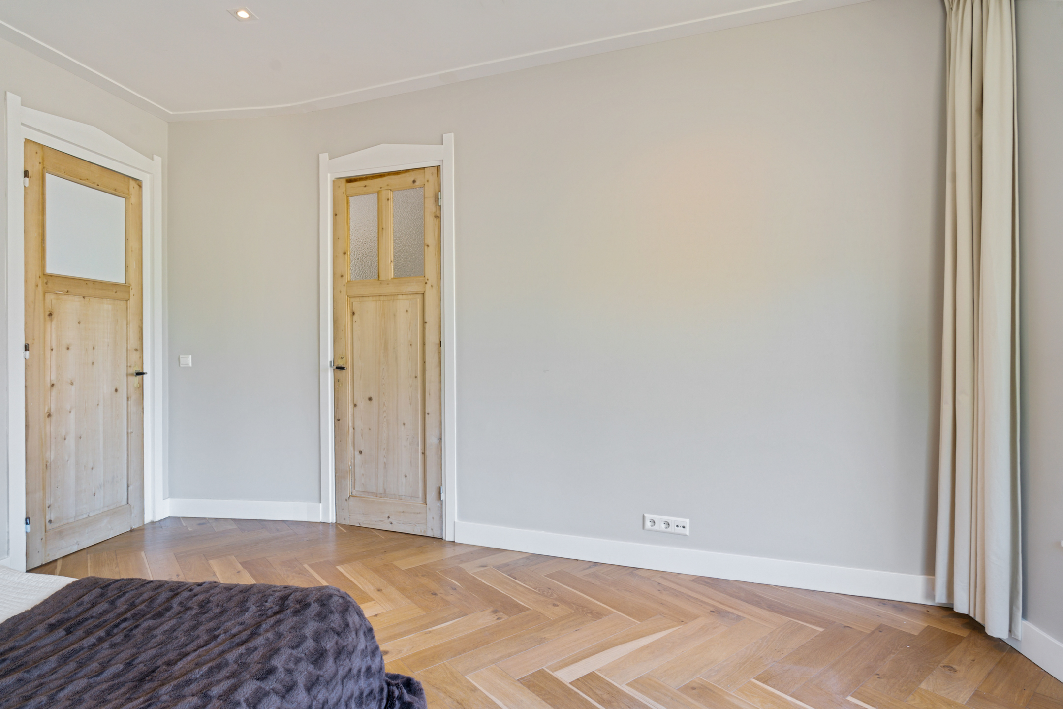Aan de voorzijde liggen twee sfeervolle slaapkamers met een prachtig uitzicht over de singel. Beide kamers zijn voorzien van dezelfde luxe houten vloer, en de tweede slaapkamer beschikt over een vaste kast.