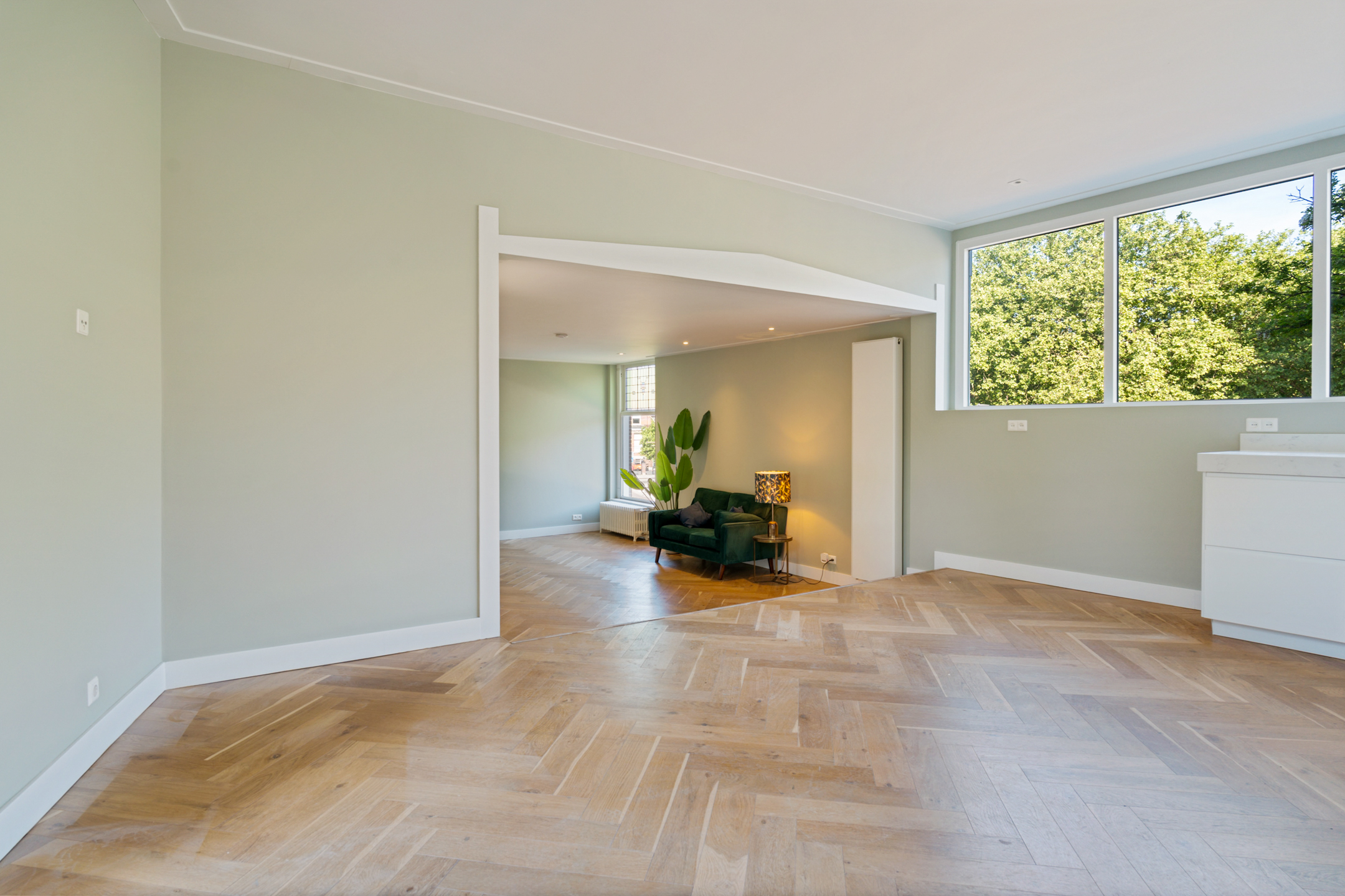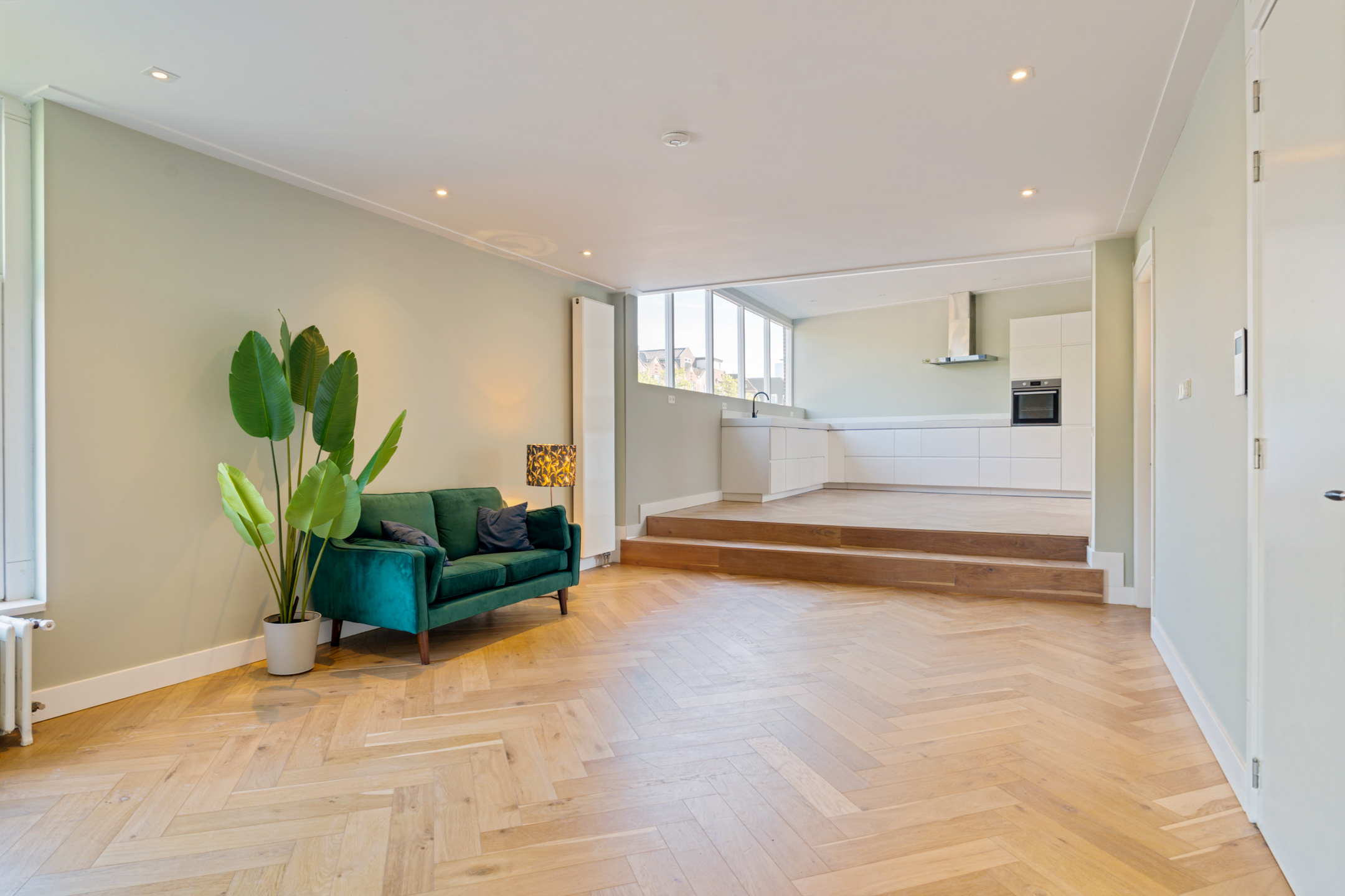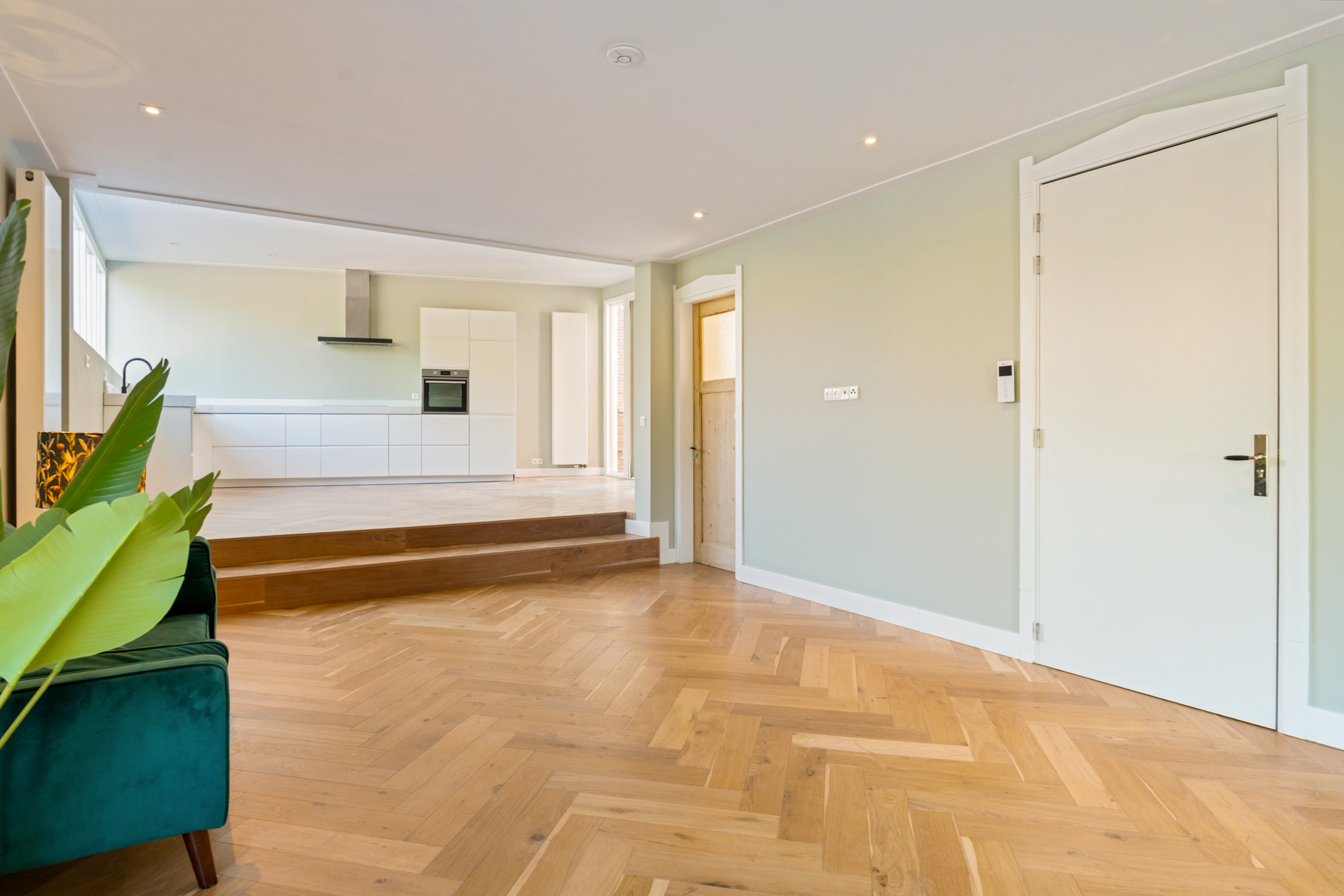 De prachtige houten visgraatvloeren, luxe badkamer en royale woonkeuken zorgen voor een combinatie van charme en modern comfort. Dankzij de hoge plafonds en grote raampartijen geniet je hier van een aangename lichtinval en een sfeervolle uitstraling.