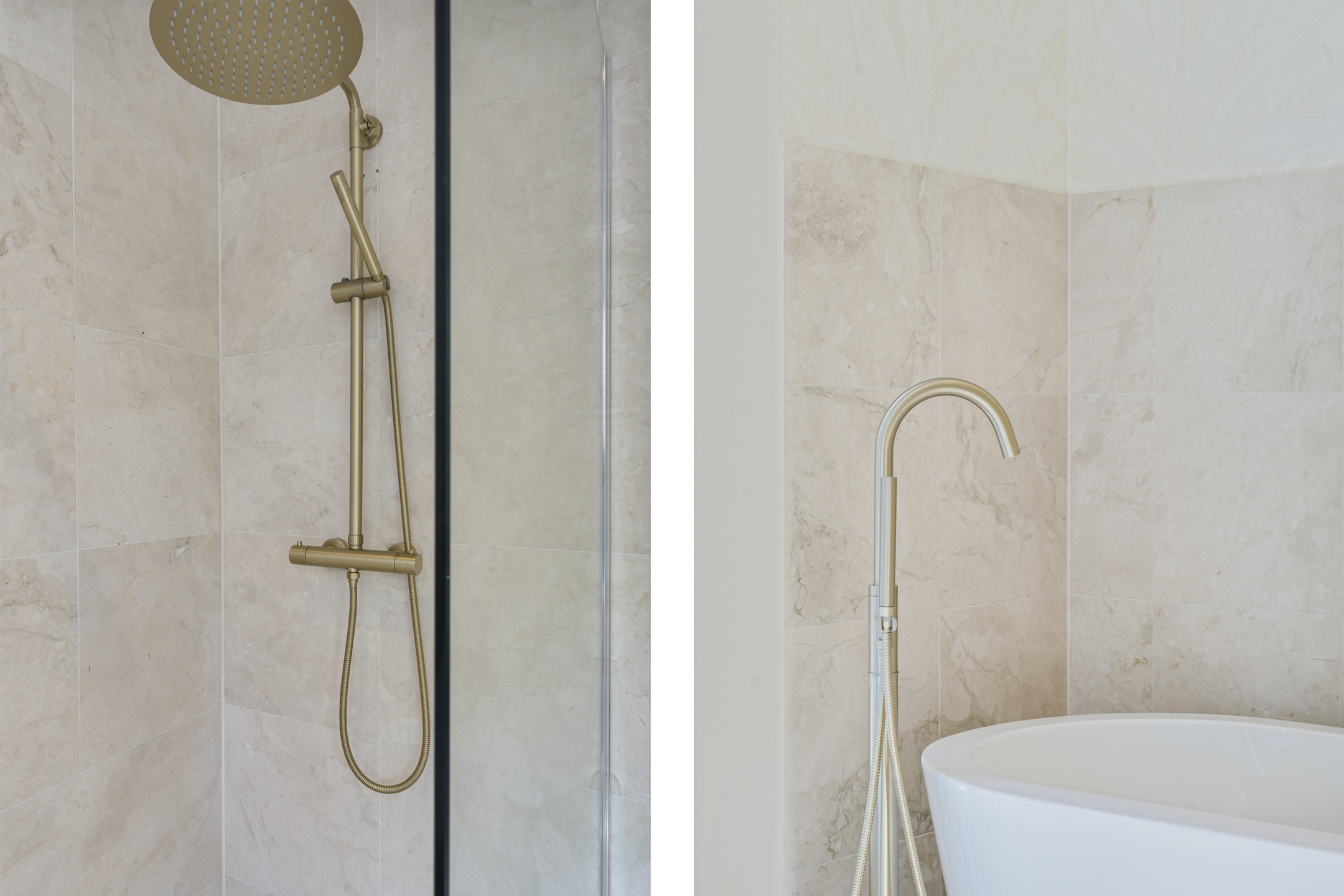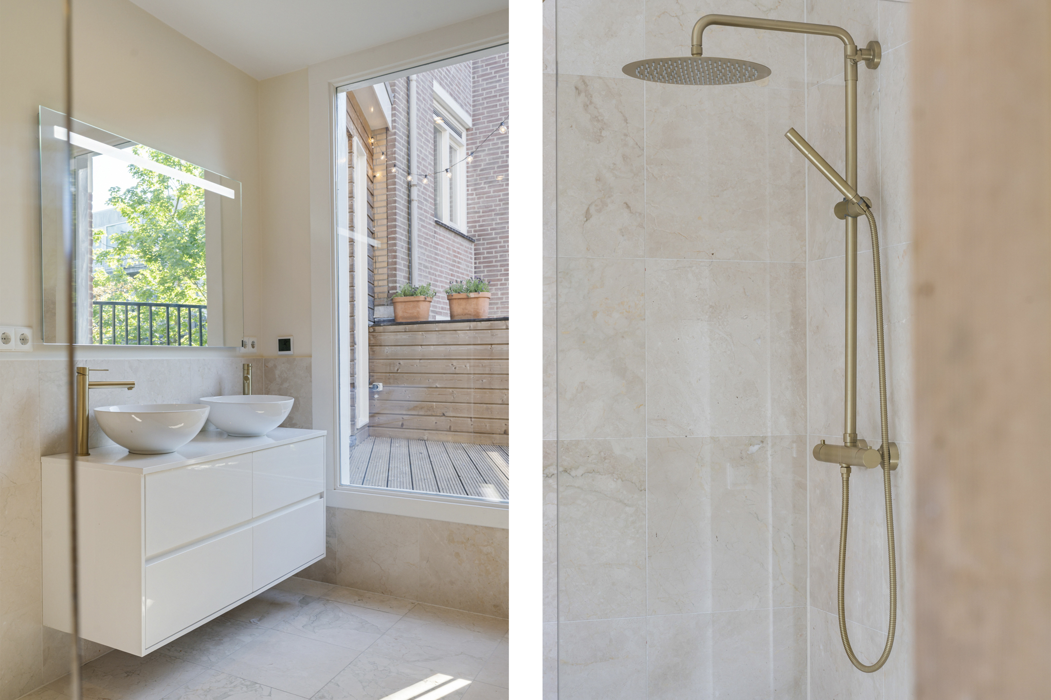 + Luxe badkamer met natuursteen en vloerverwarming
