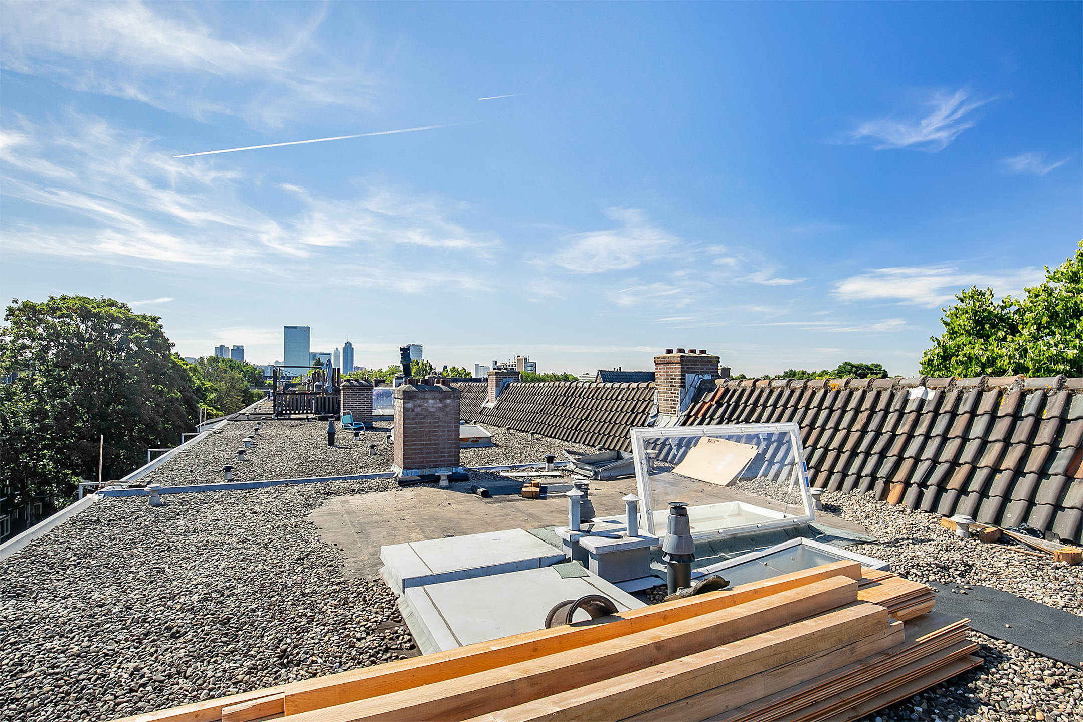 Extra mooi: er is al een omgevingsvergunning voor de bouw van een dakterras afgegeven. De huidige eigenaar heeft er zelfs al voor gezorgd dat middels een brede trap en dakraam het dak eenvoudig te betreden is.