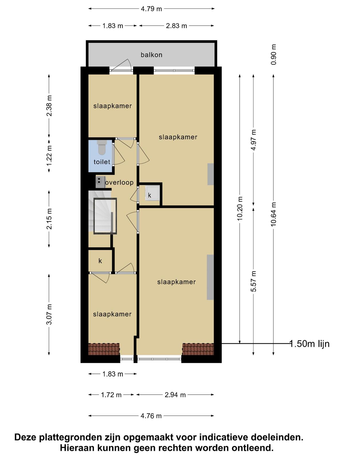 Op de slaapverdieping zijn de drie slaapkamers en de badkamer te vinden. Aan de voorzijde bevinden zich de master bedroom en badkamer. De badkamer is voorzien van toilet, inloopdouche, wastafelmeubel en handdoekradiator. Aan de achterzijde bevinden zich de twee andere slaapkamers, waarbij een van de twee ook erg goed in te richten is al werkkamer! Aan deze achterzijde bevindt zich ook het tweede balkon van bijna vijf meter breed.