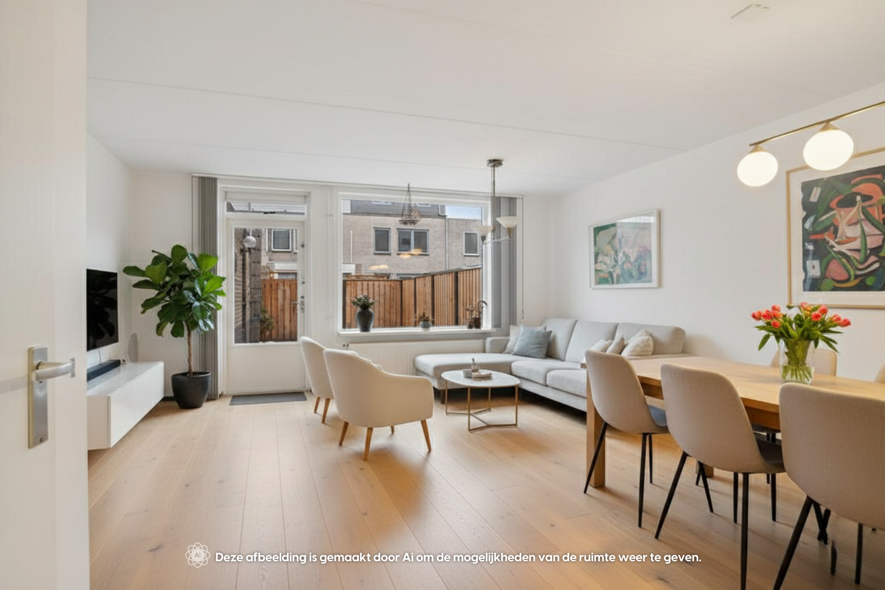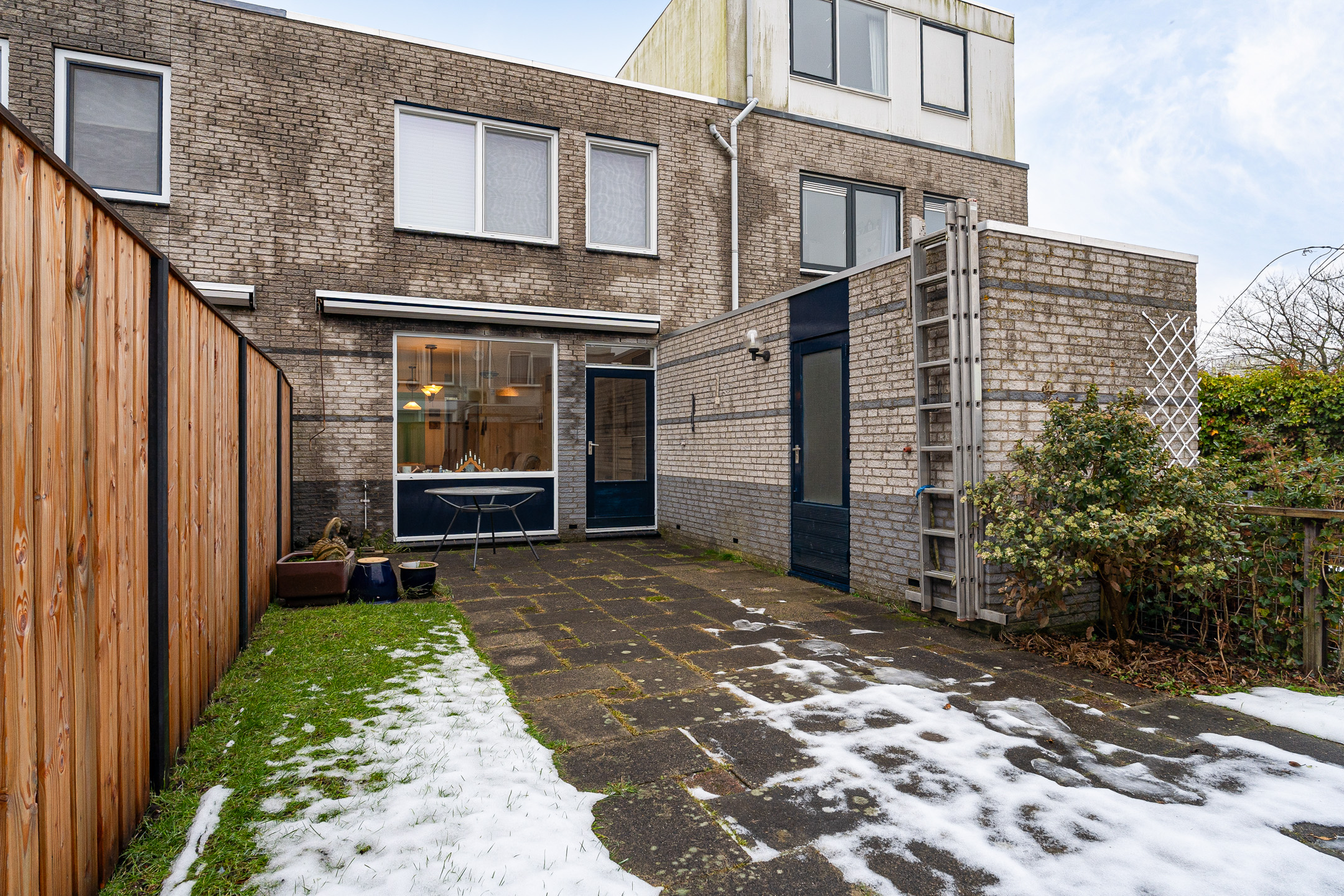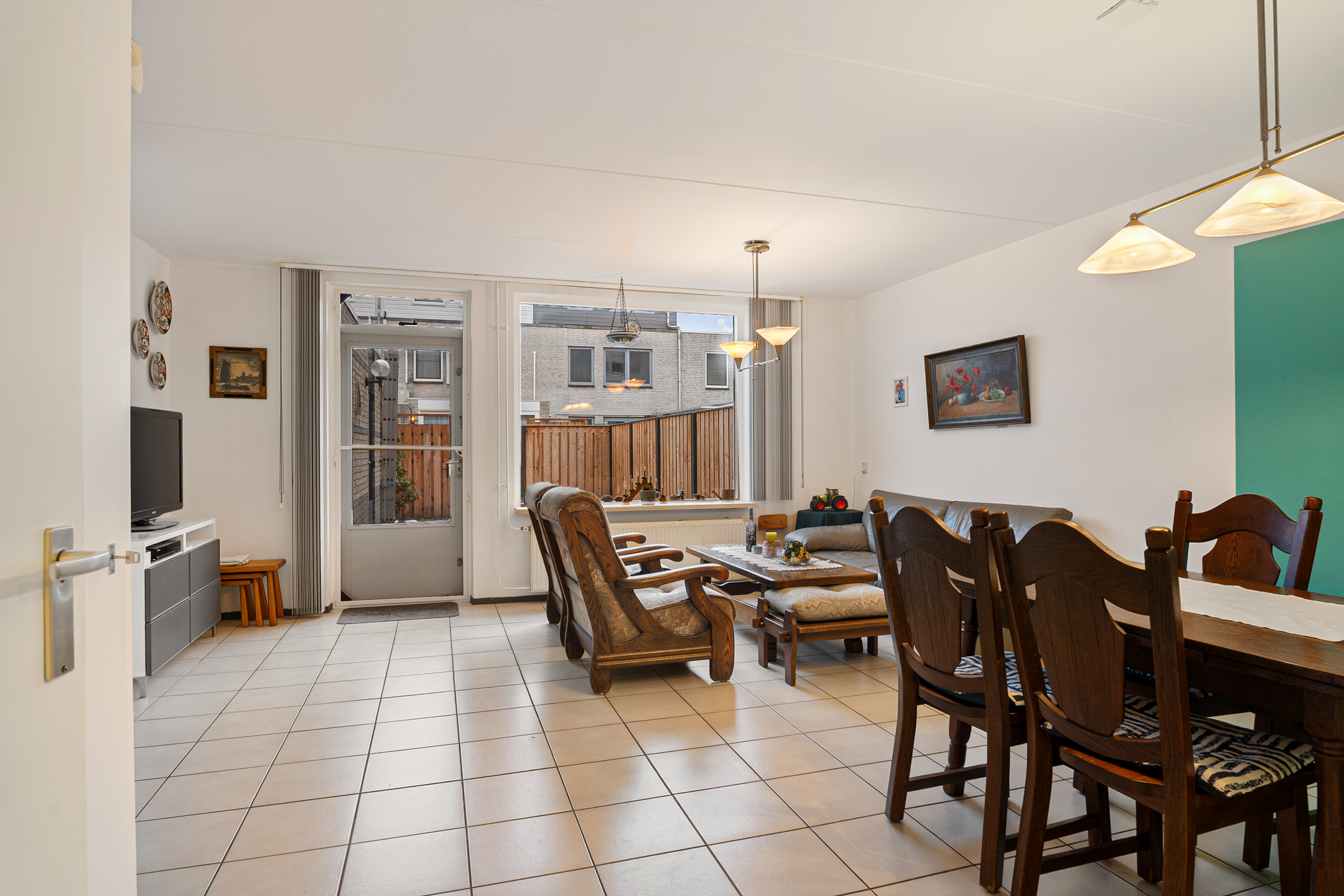 Via de deur stap je zo naar buiten, waardoor binnen en buiten mooi in elkaar overlopen.
