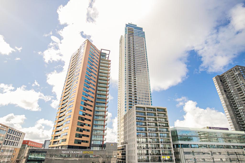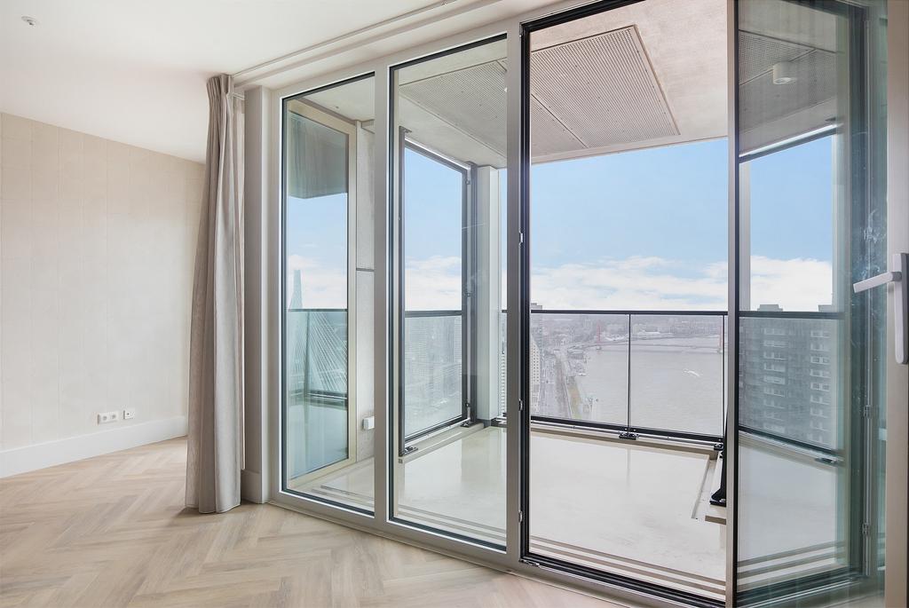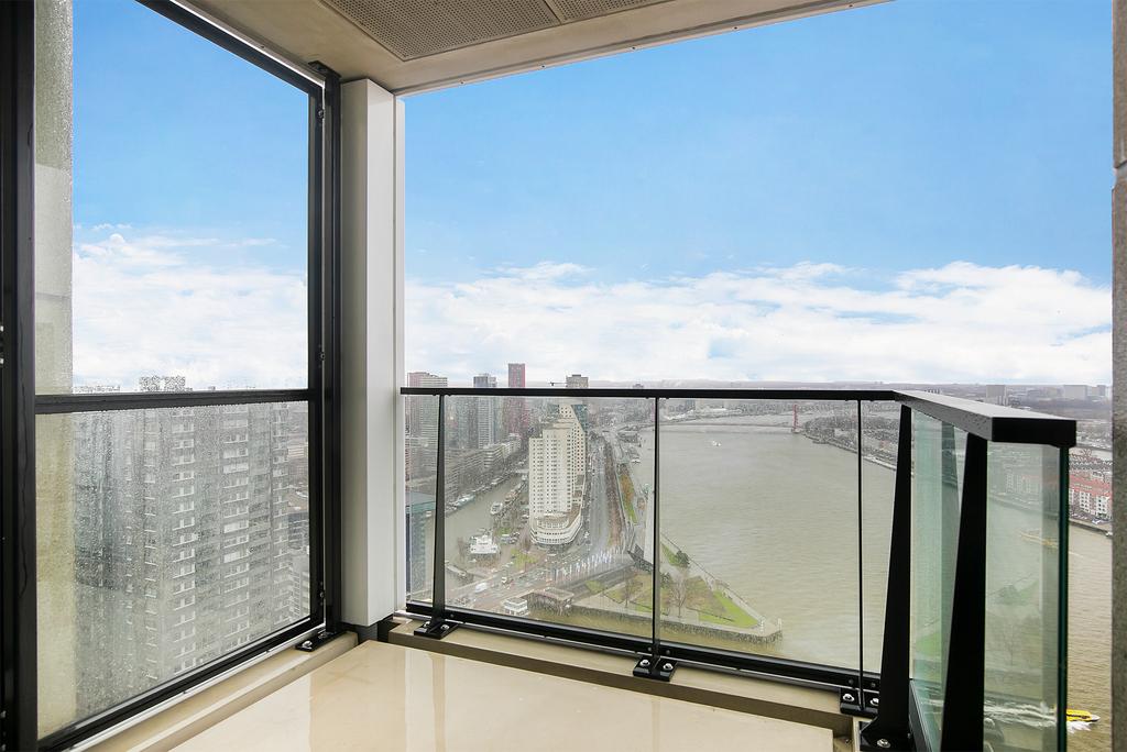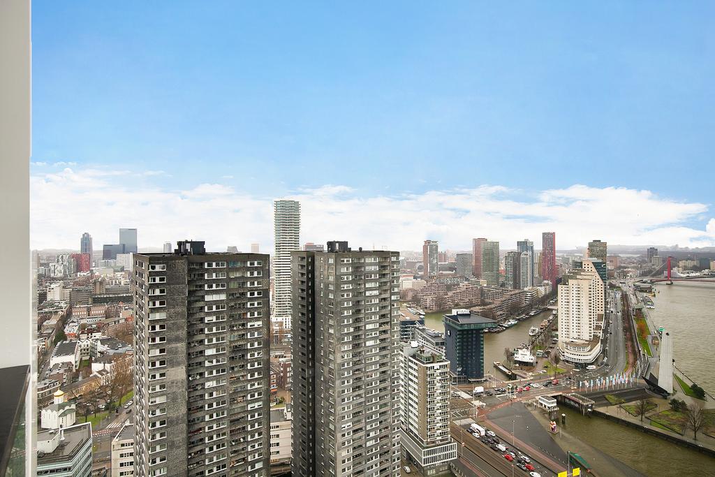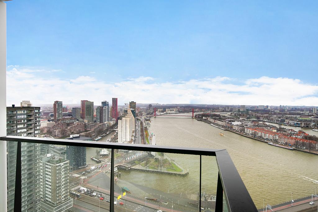 Het appartement ligt op de 32e verdieping en heeft uitzicht op Maas met de Erasmusbrug. Het heeft 2 slaapkamers, een luxe badkamer, een woonkamer met keuken en een terras en natuurlijk uitzicht op de Maas en Rotterdam richting Centrum, Noordereiland, Zuid, Kralingen en nog verder.