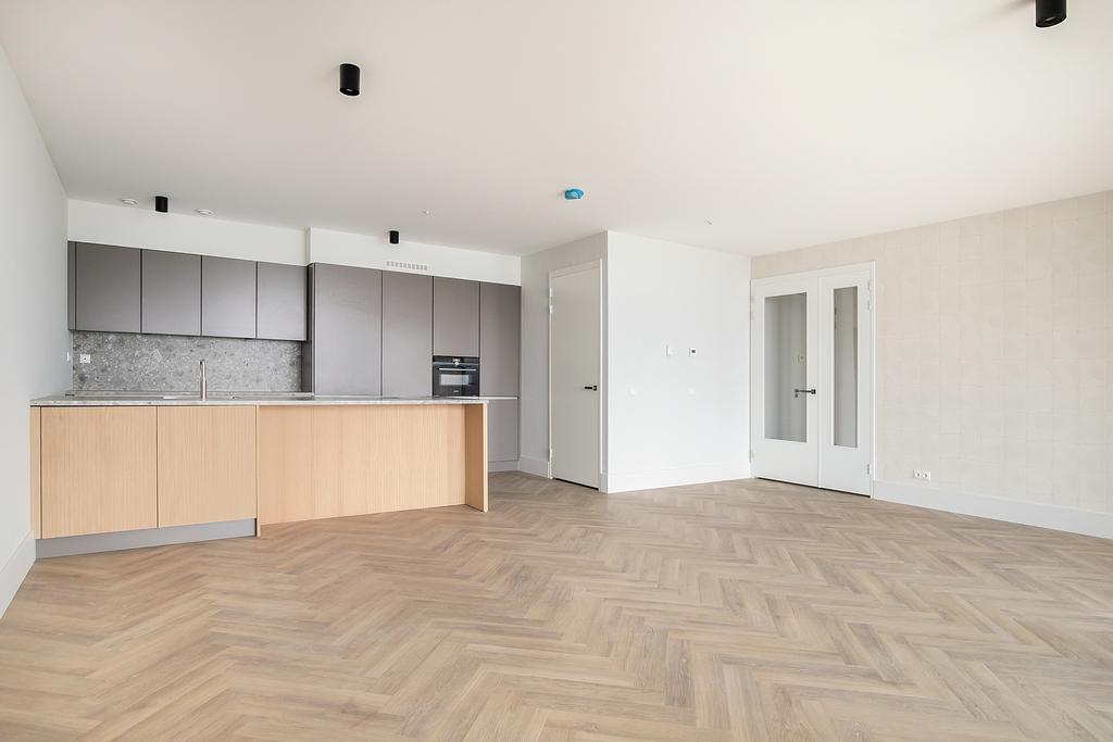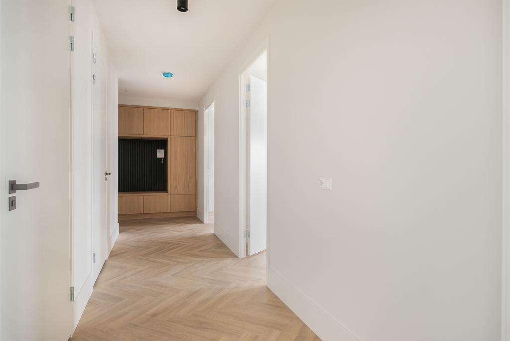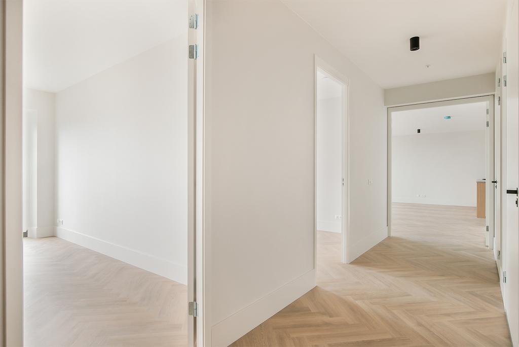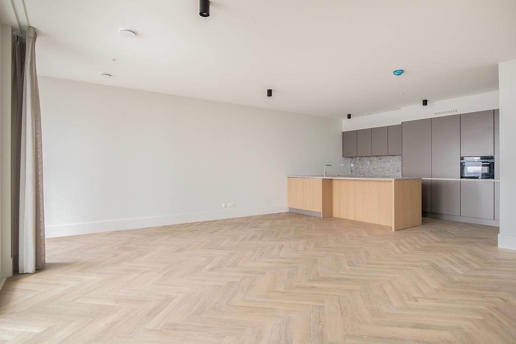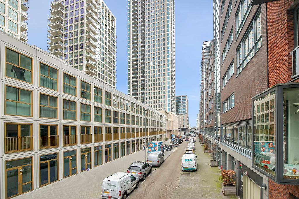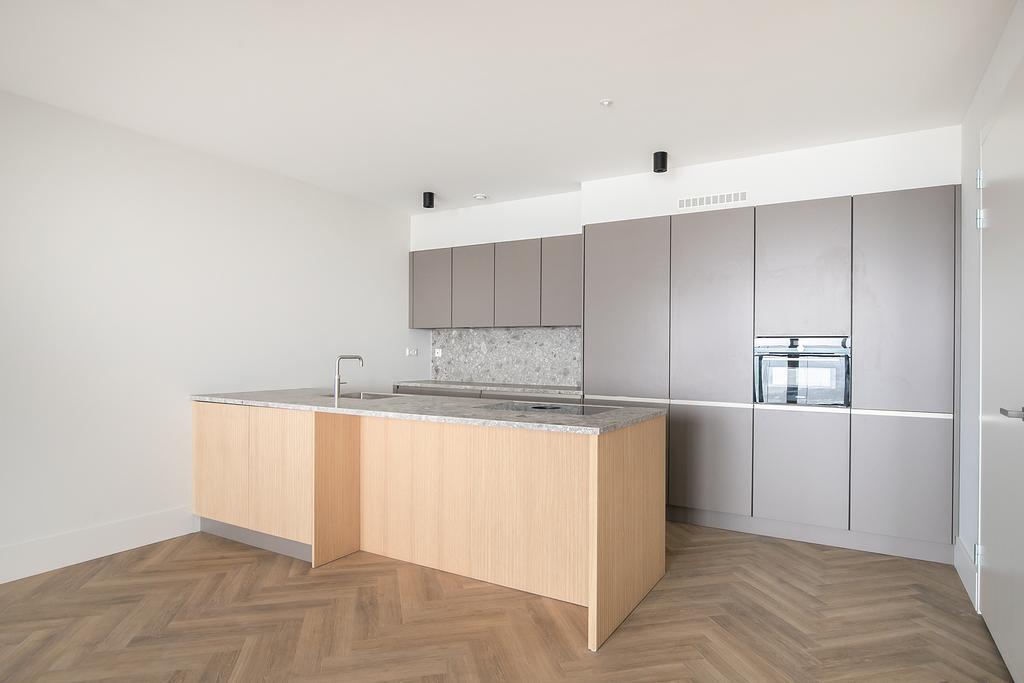 Dit appartement voelt direct bij binnenkomst comfortabel en privé. De hal heeft een maatwerk eiken garderobe-unit met bergruimte en een spiegel. De visgraat eiken vloer (PVC) loopt door in de 2 slaapkamers en de woonkamer en door het gehele appartement is vaste opbouwverlichting aangebracht. De 2 slaapkamers zijn licht en hebben beide uitzicht door de lange ramen richting het noordoosten. Twee openslaande deuren met glas leiden naar de woonkamer, waar het luxe behang direct sfeer geeft. De living is licht en net zoals het aangrenzende terras geheel gericht op het fenomenale uitzicht op alle bruggen; de Erasmusbrug, Willemsbrug en de Hef. De open keuken heeft een keukeneiland met een gezellige eetbar. De keuken is uitgerust met een 4-pits inductieplaat met geïntegreerde afzuiging (Bora), een Quooker, koelkast met vrieslades, een combimagnetronoven van Siemens Studioline en een vaatwasmachine. De handige inpandige berging/bijkeuken herbergt de wtw-installatie, biedt ruimte voor de was- en droogapparatuur en alle spullen en voorraad die je hier nog meer kwijt wilt. Er is een modern, separaat toilet op de hal. De badkamer is warm, ruim en sfeervol. De afwerking is luxe en door de handige indeling oogt deze ruimtelijk. Rechts een ligbad, in het midden een dubbele badkamermeubel met ronde spiegel met verlichting en links een verwarmd handdoekenrek en een rookglazen deur naar de inloop-douchecabine.