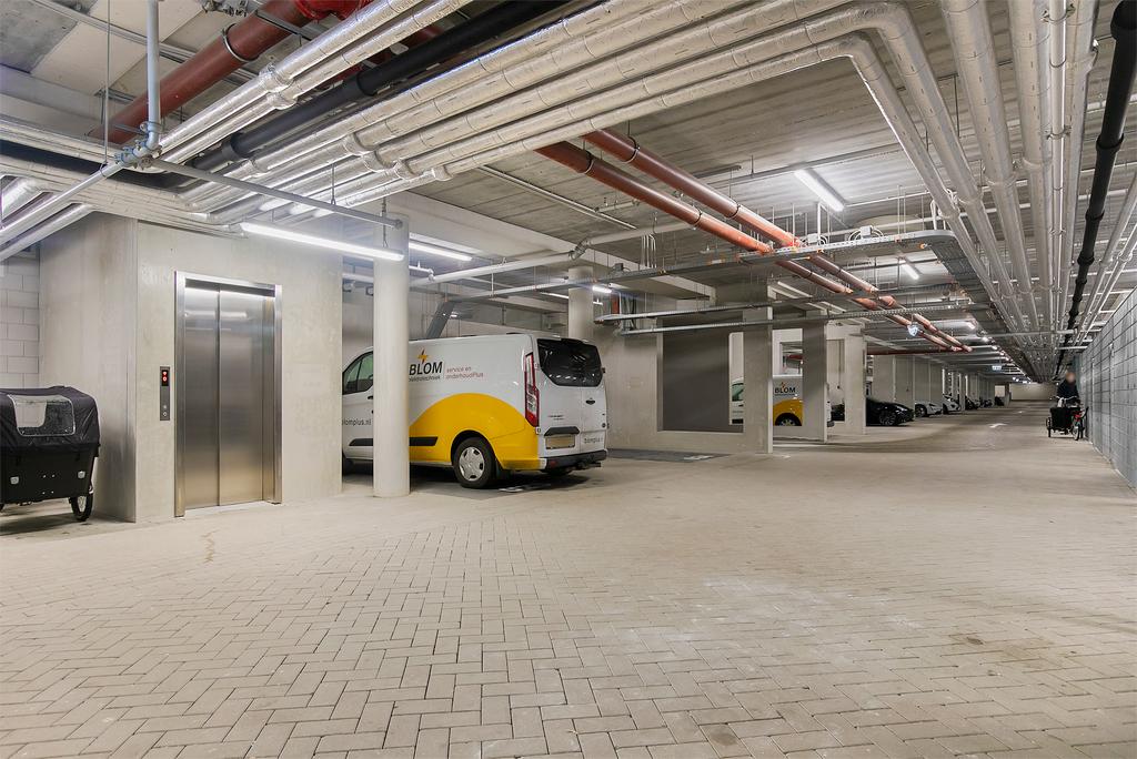 In de parkeergarage kun je, behalve auto’s, ook fietsen en scooters kwijt. Vanuit de garage kun je direct naar de verdiepingen. De verdiepingen boven de parkeergarage zijn gereserveerd voor ruime bergingen die bij de appartementen horen. Er is toezicht door de receptie, huismeester en avondbeveiliging en post en pakketjes kunnen gemakkelijk worden afgegeven of opgehaald in de centrale hal. De parkeerplaats is separaat te koop.