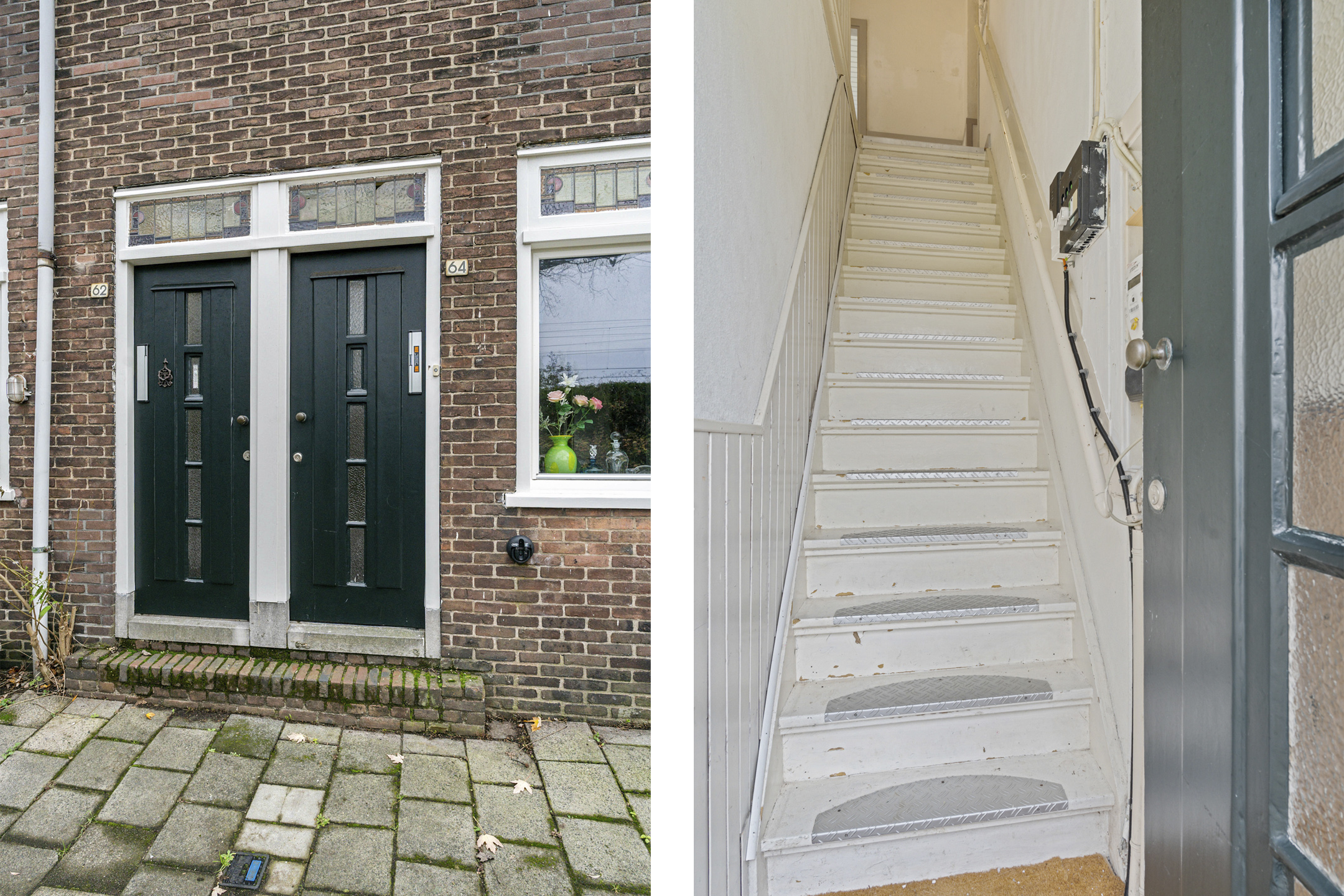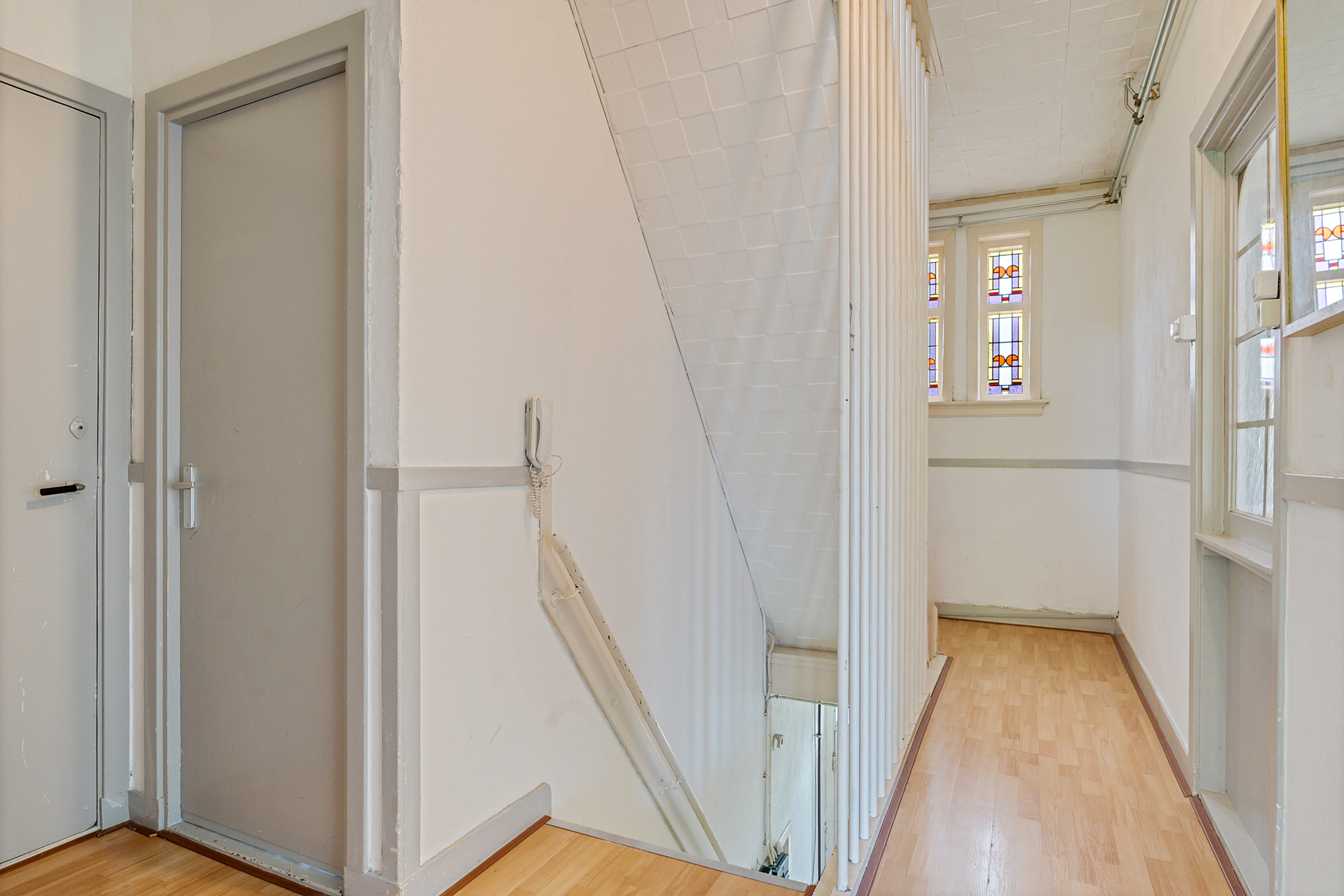 Eigen entree op de begane grond met trapopgang naar de woonverdieping en meterkast.