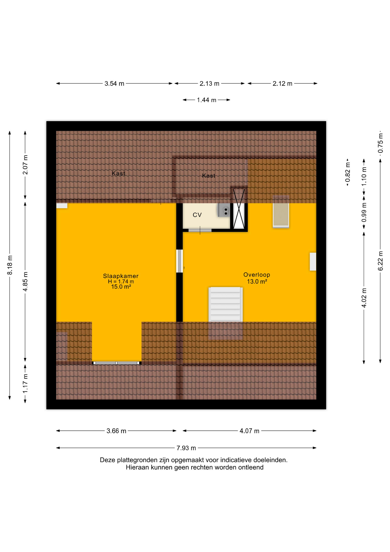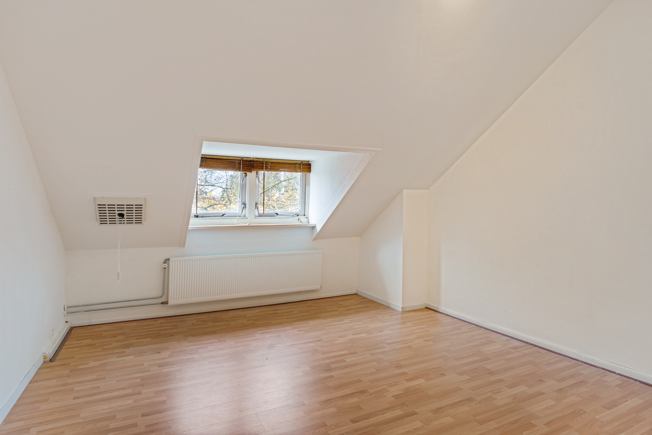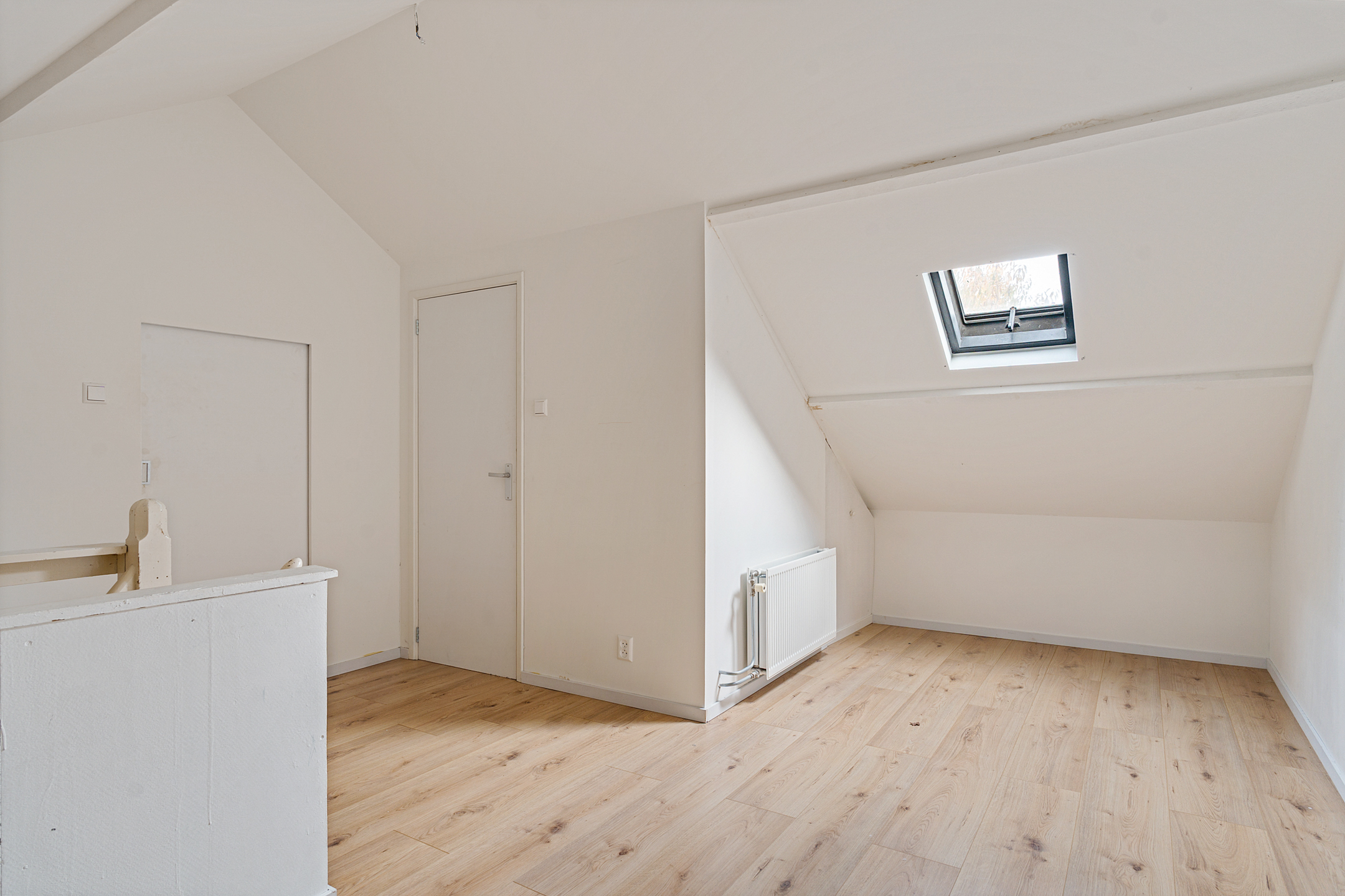 Grote open ruimte onder het geïsoleerde dak met dakraam en bergruimte. Hier is eenvoudig een extra slaapkamer of werkkamer te creëren. In de kastruimte bevindt zich de cv-combiketel (vermoedelijk uit 2022). Aan de achterzijde ligt een slaapkamer met dakkapel en extra opbergruimte.