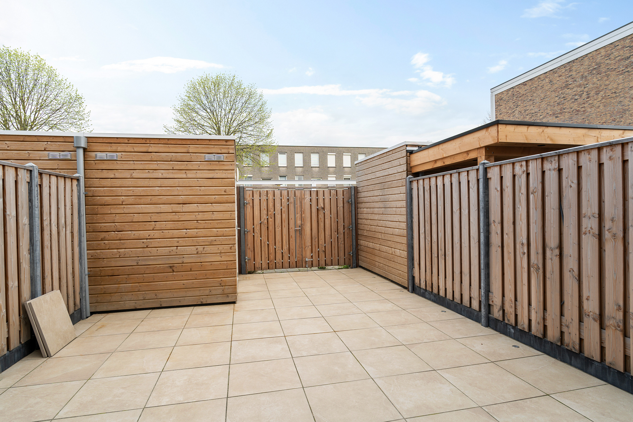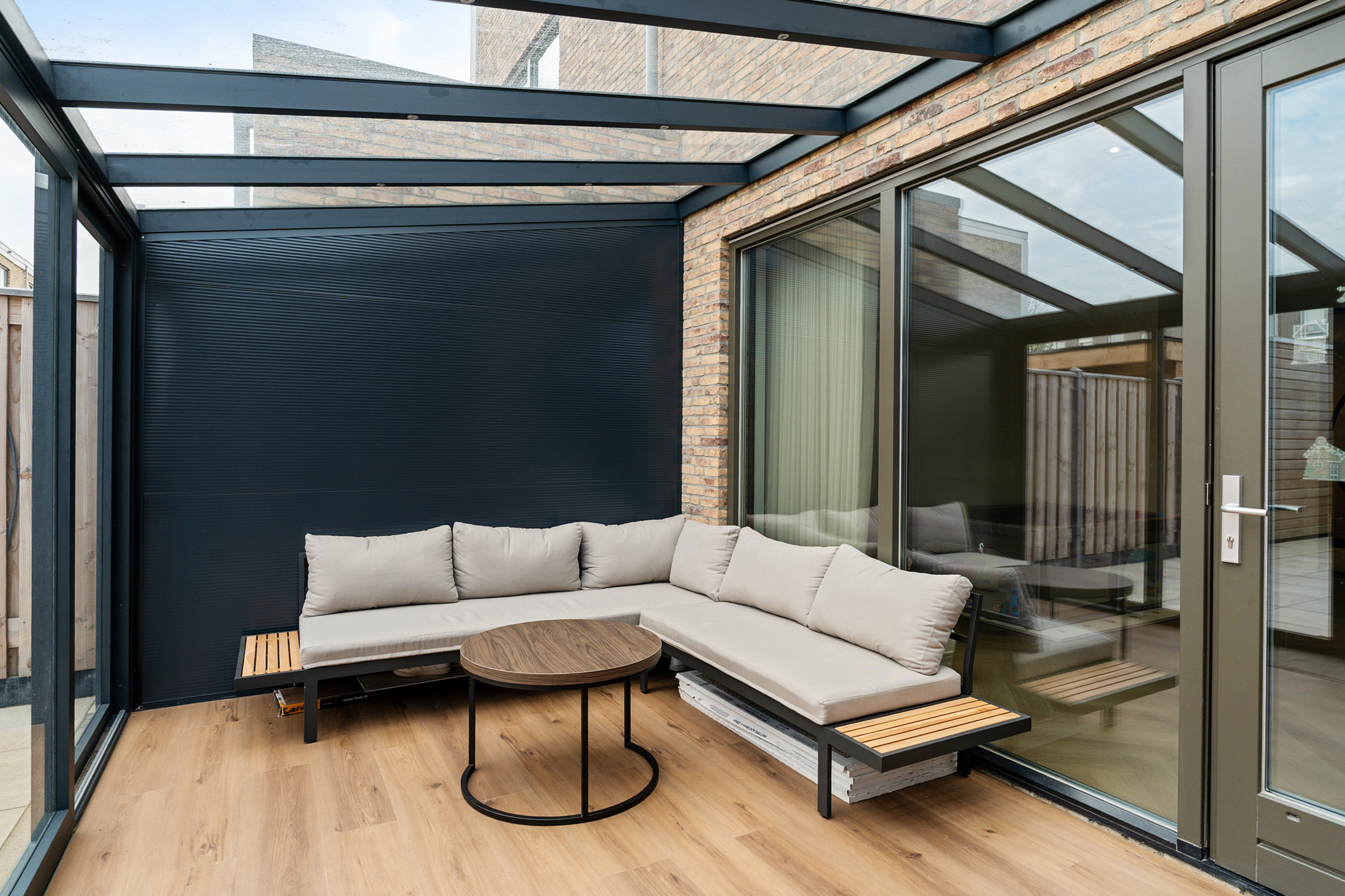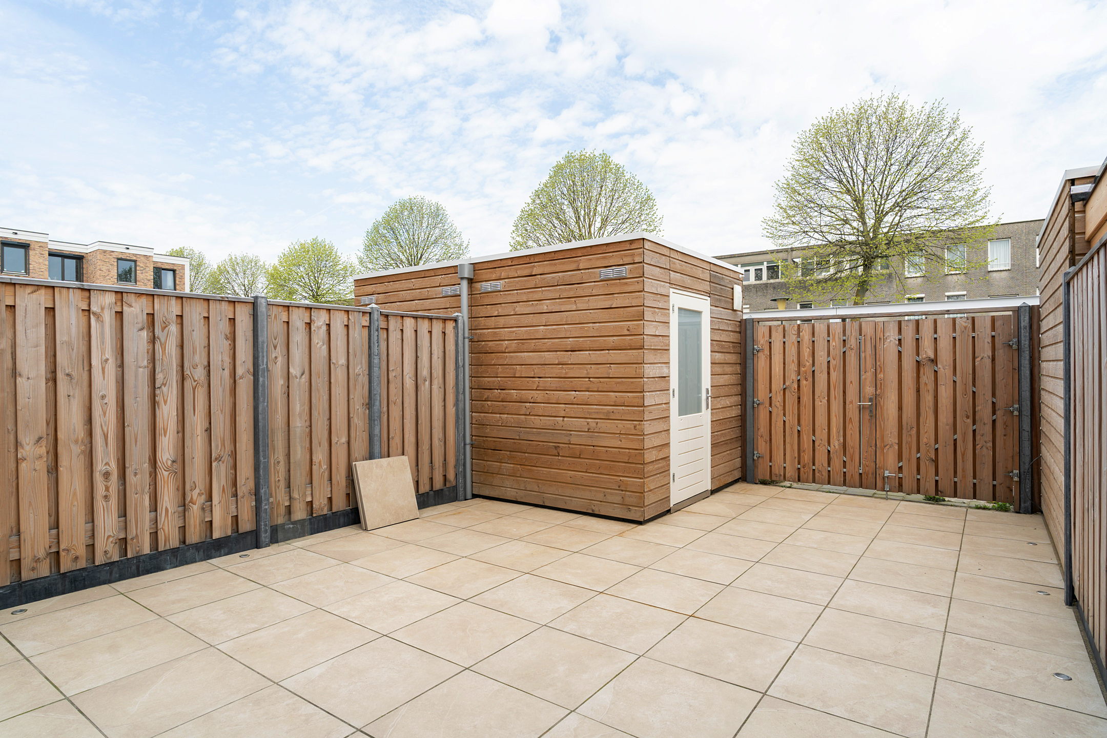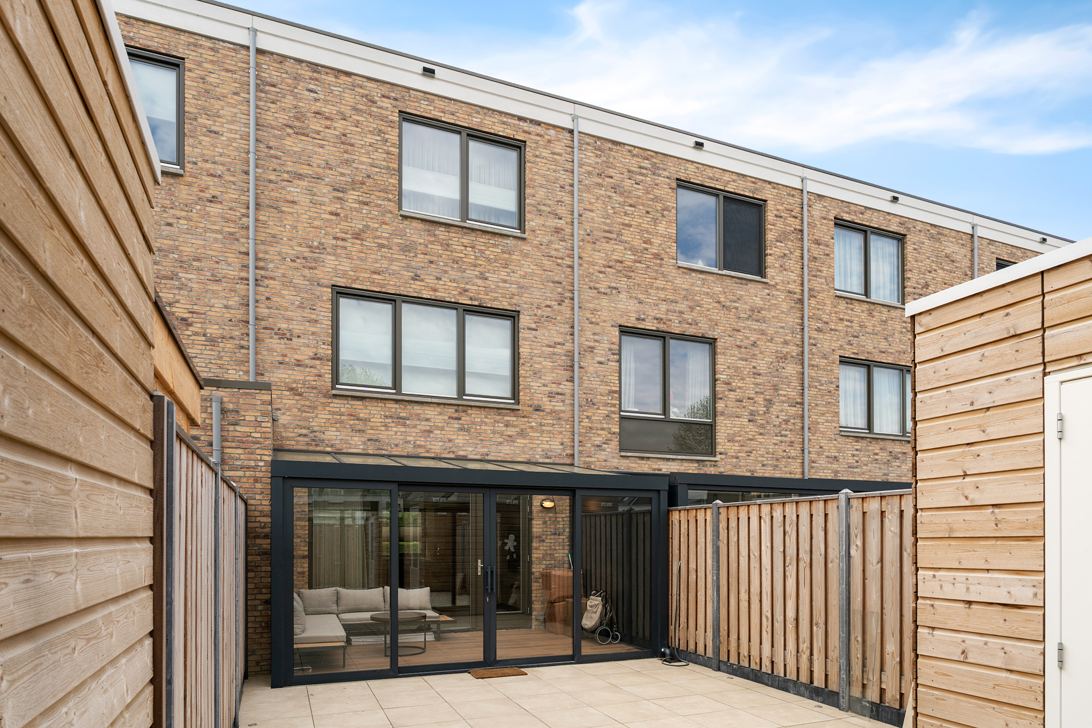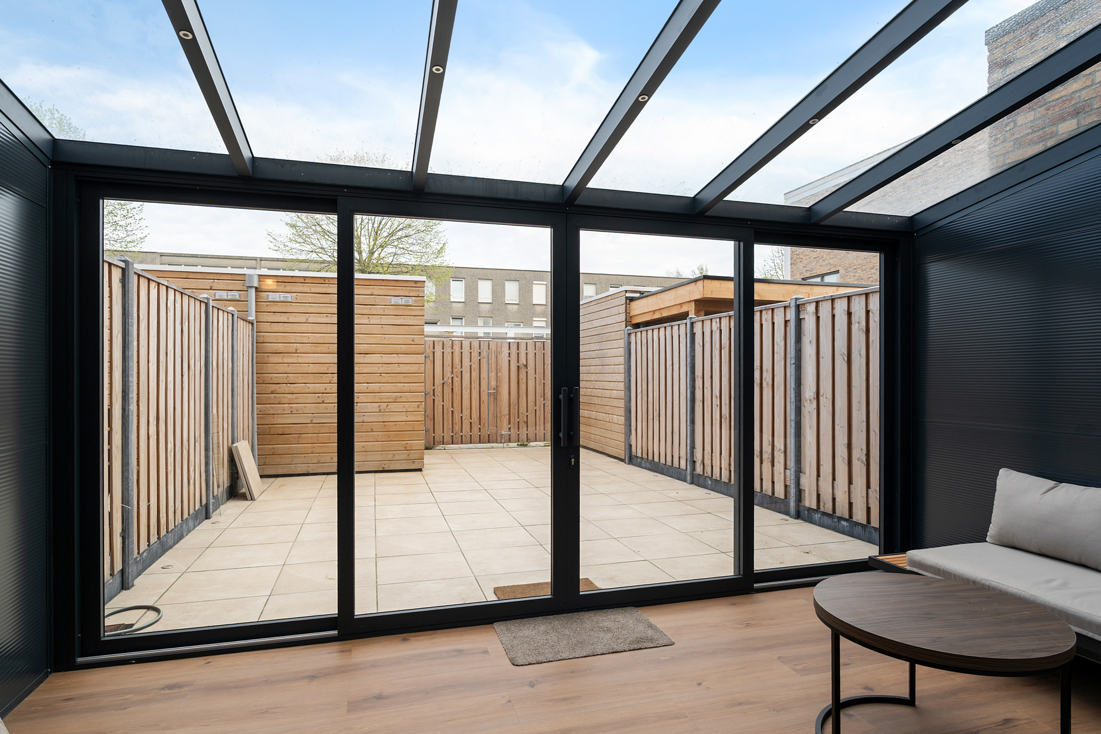 De achtertuin is onderhoudsvriendelijk aangelegd en biedt veel privacy. De serre vormt een echte meerwaarde en fungeert als verlengstuk van de woonkamer, waardoor je al vroeg in het jaar en tot laat in het seizoen comfortabel buiten zit. Achterin de tuin vind je een praktische berging en een achterom. Hier geniet je van rust, ruimte en een fijne plek om te ontspannen.