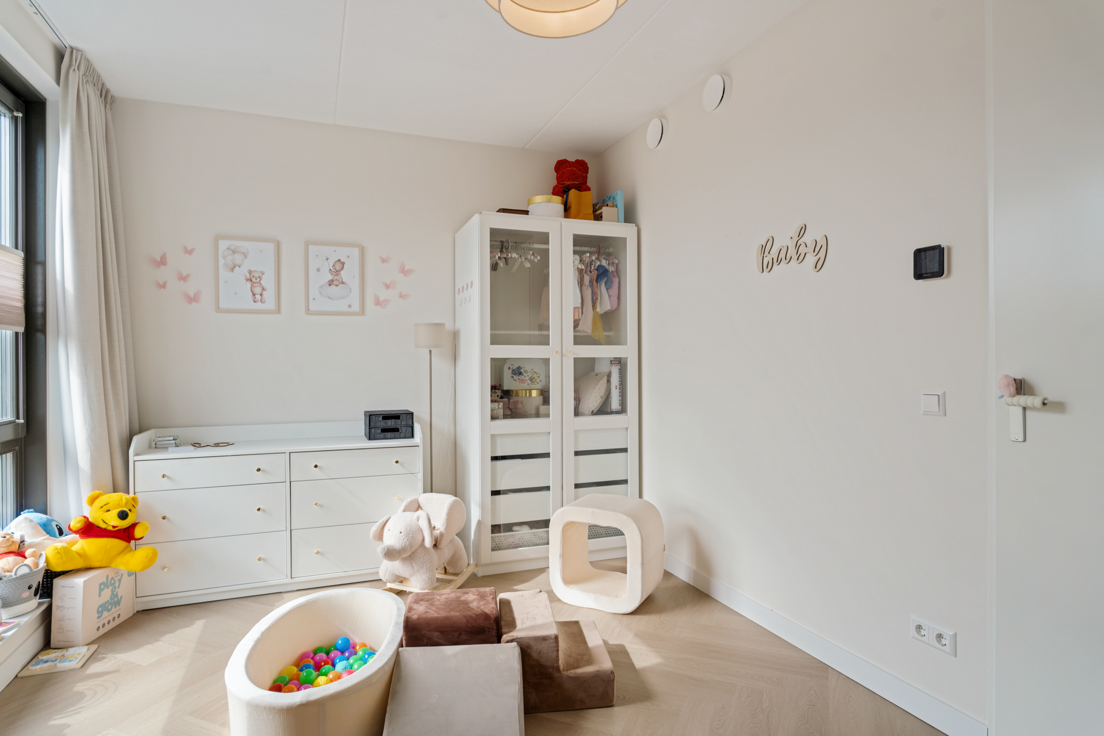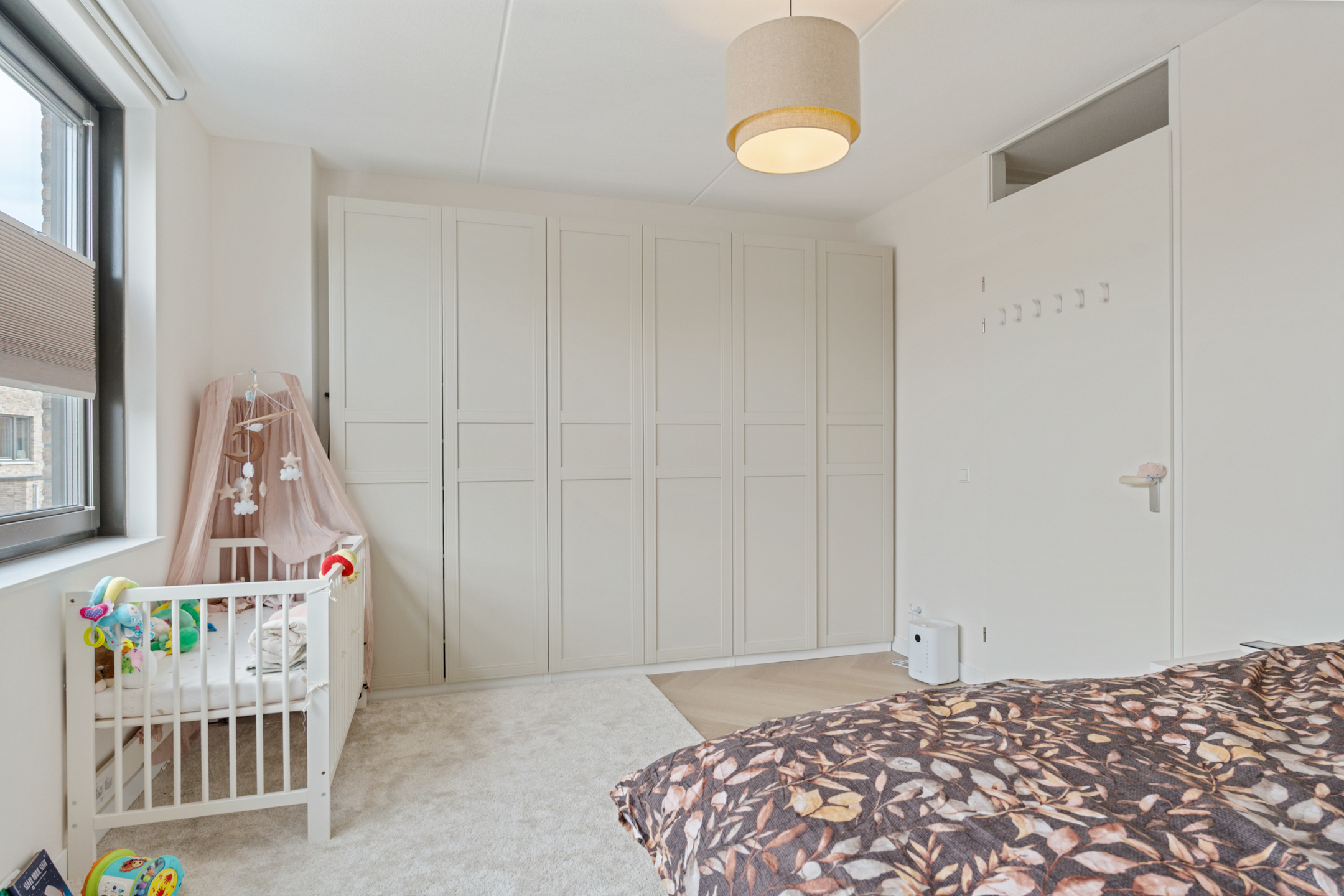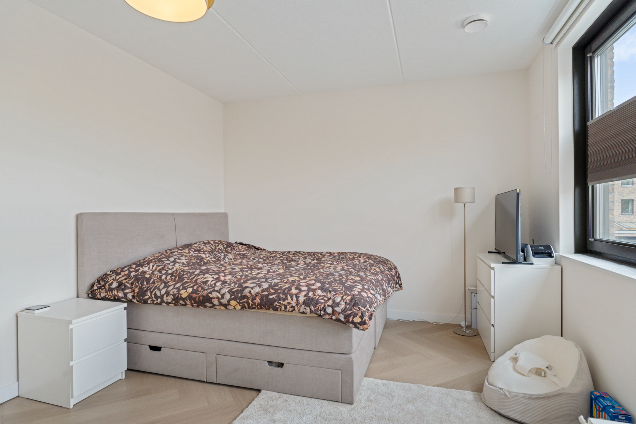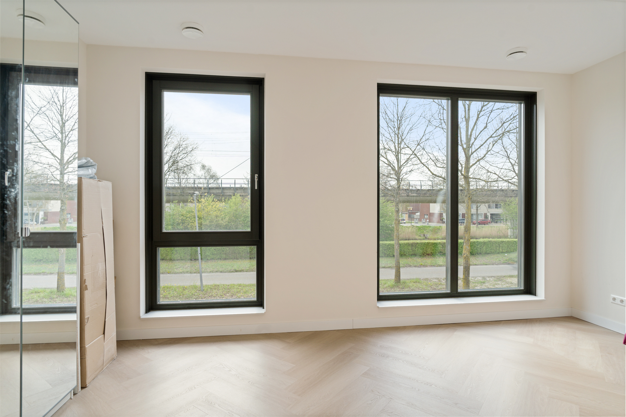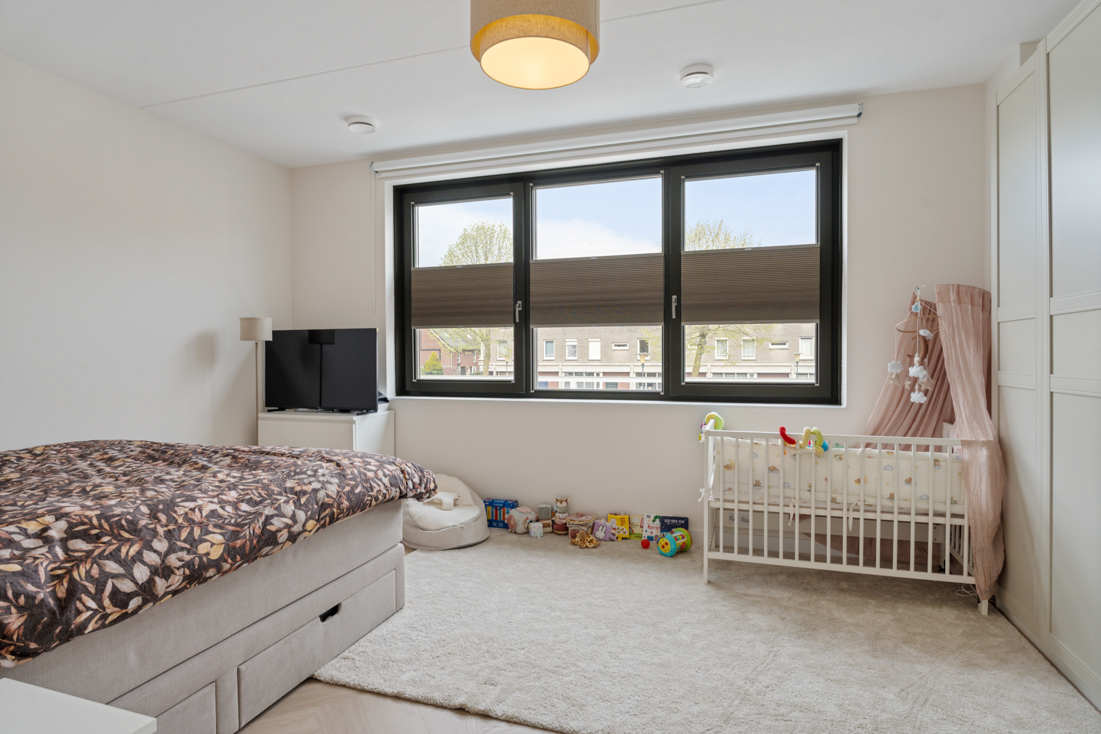 Aan de voorzijde ligt de tweede slaapkamer van circa 14 m². Ook deze kamer is goed van formaat en daardoor geschikt als kinder-, werk- of logeerkamer. De grote ramen zorgen voor veel daglicht en een prettig uitzicht.