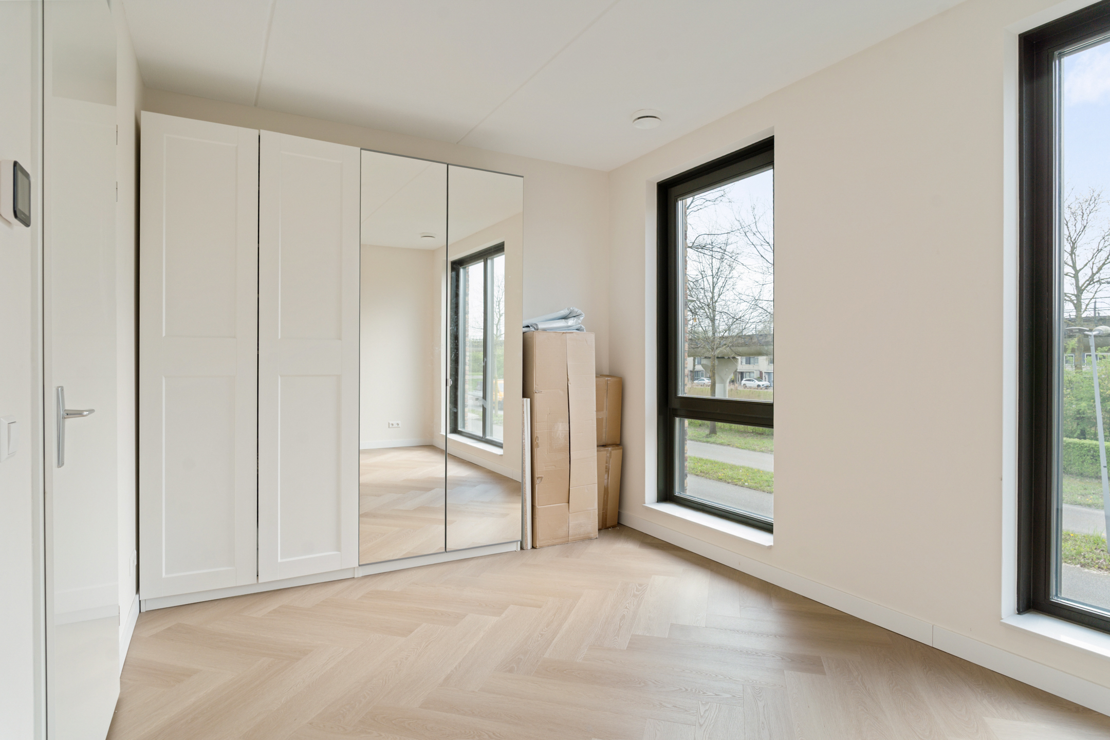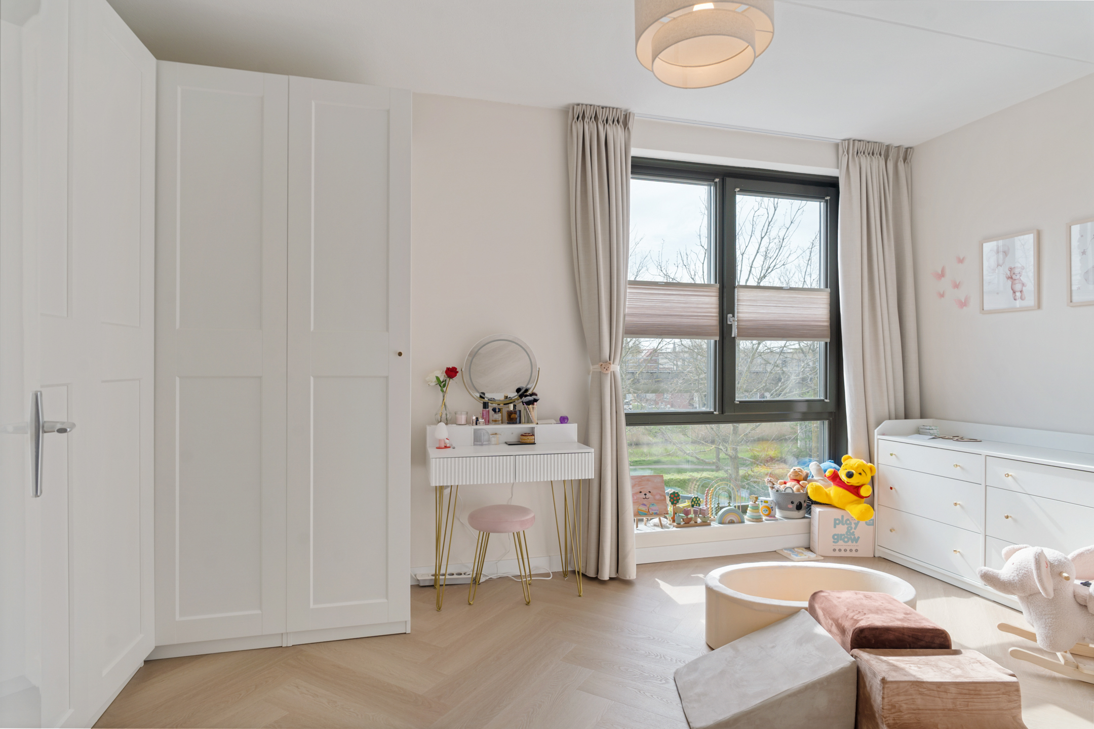 De grootste slaapkamer aan de achterzijde is met circa 20 m² bijzonder ruim en biedt meer dan genoeg plek voor een groot bed en kastruimte. Dankzij de grote raampartijen geniet je hier van veel daglicht en een fijne, rustige sfeer.