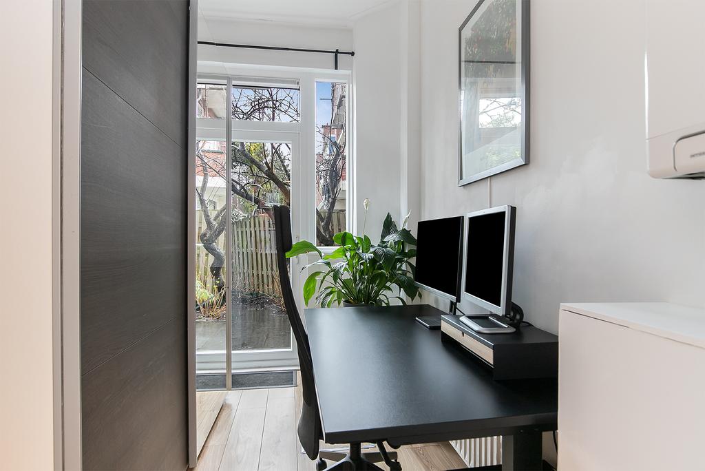 De hele woning is voorzien van een mooie laminaatvloer. De woonkamer is een gezellige ruimte die volledig naar eigen smaak in te richten is. Vanuit de woonkamer bieden de openslaande deuren toegang tot de ruime achtertuin, die is omheind door een goed onderhouden schutting. De keuken is voorzien van gaspitten, een oven, afzuiginstallatie en een vaatwasser. Via de keuken is er toegang tot de badkamer. De badkamer heeft een regendouche met drain, wastafelmeubel, een spiegel, een handdoekradiator en een was- en droogaansluiting.