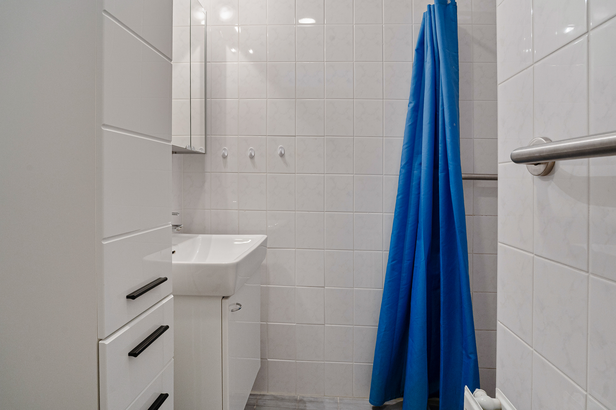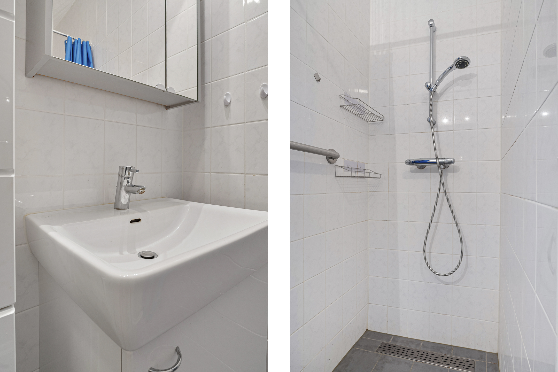 De badkamer en het separate toilet zijn netjes en bieden mogelijkheden voor modernisatie naar eigen smaak, waarbij de badkamer is voorzien van een inloopdouche, wastafel en wastafelmeubel.