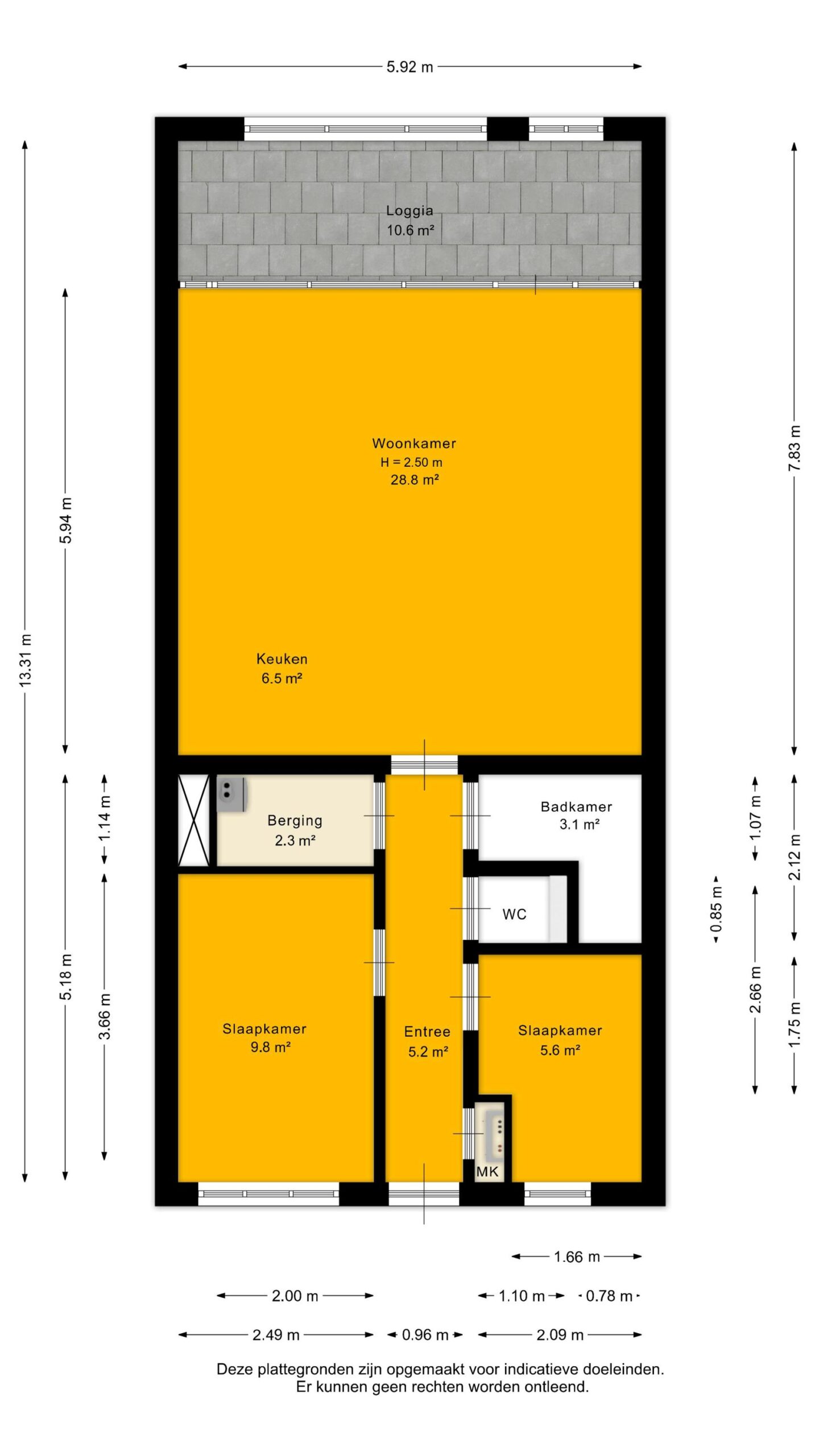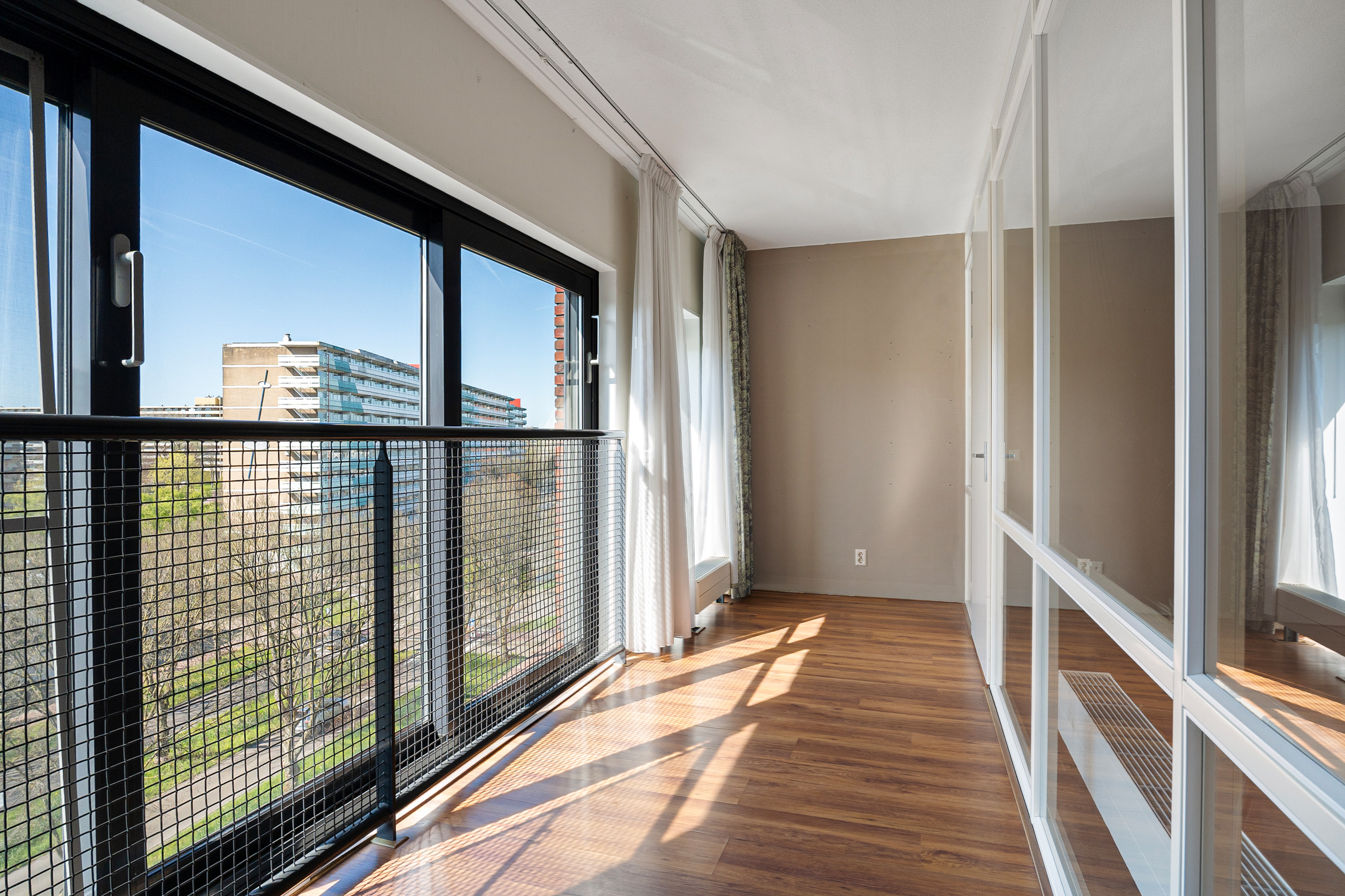 Via de galerij op de vijfde verdieping kom je bij de entree van de woning. Vanuit de hal heb je toegang tot alle vertrekken, waaronder de woonkamer, slaapkamers, badkamer, toilet en een praktische berg-/installatieruimte.