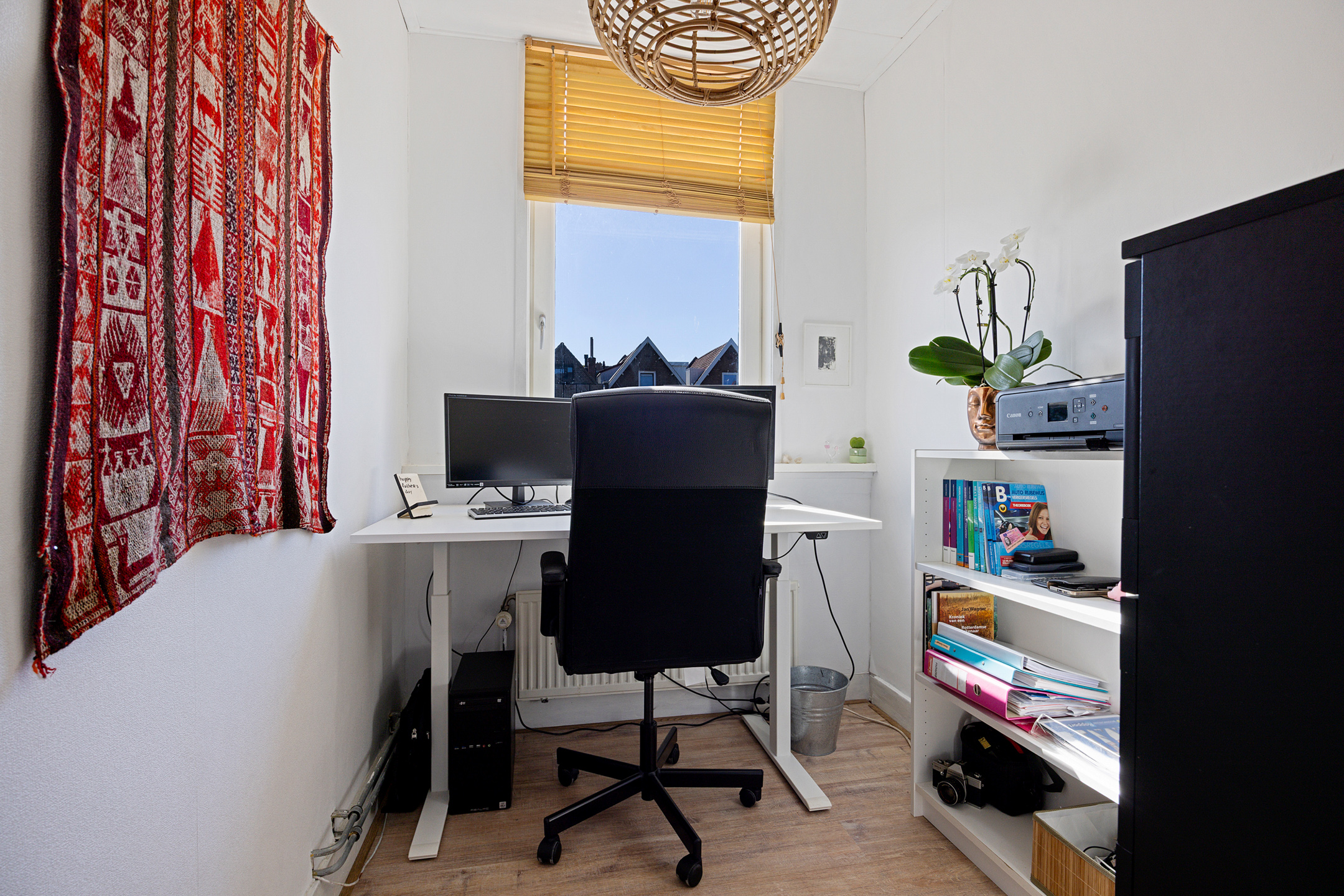Aan de achterzijde ligt de woonkamer met toegang tot het balkon perfect voor de afsluiting van een dag in het heerlijke avondzonnetje. Op deze verdieping bevinden zich nog een aparte kamer, ideaal als extra werkplek, en een separaat toilet.