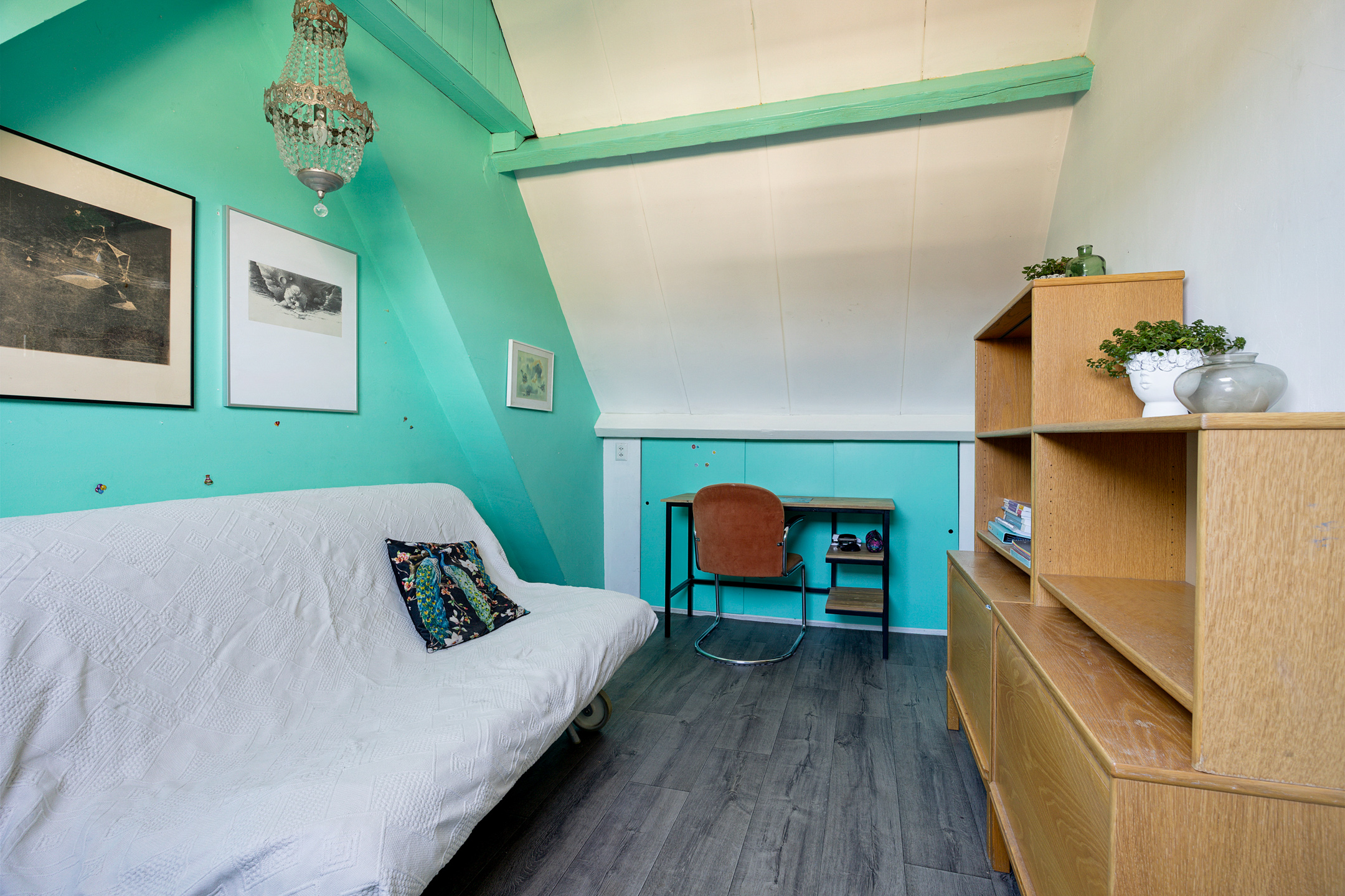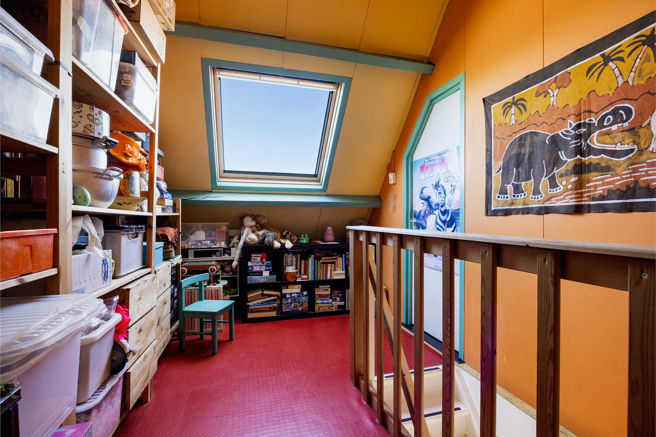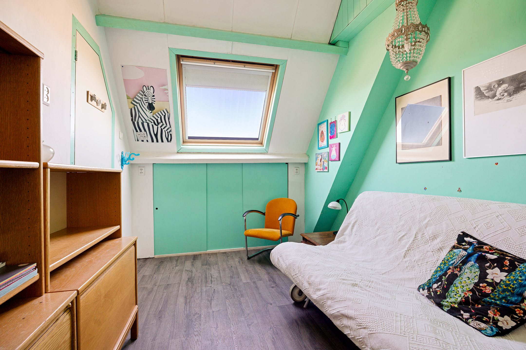 De zolder is verrassend ruim met twee dakramen en een royale slaapkamer. Op de overloop is volop extra bergruimte.