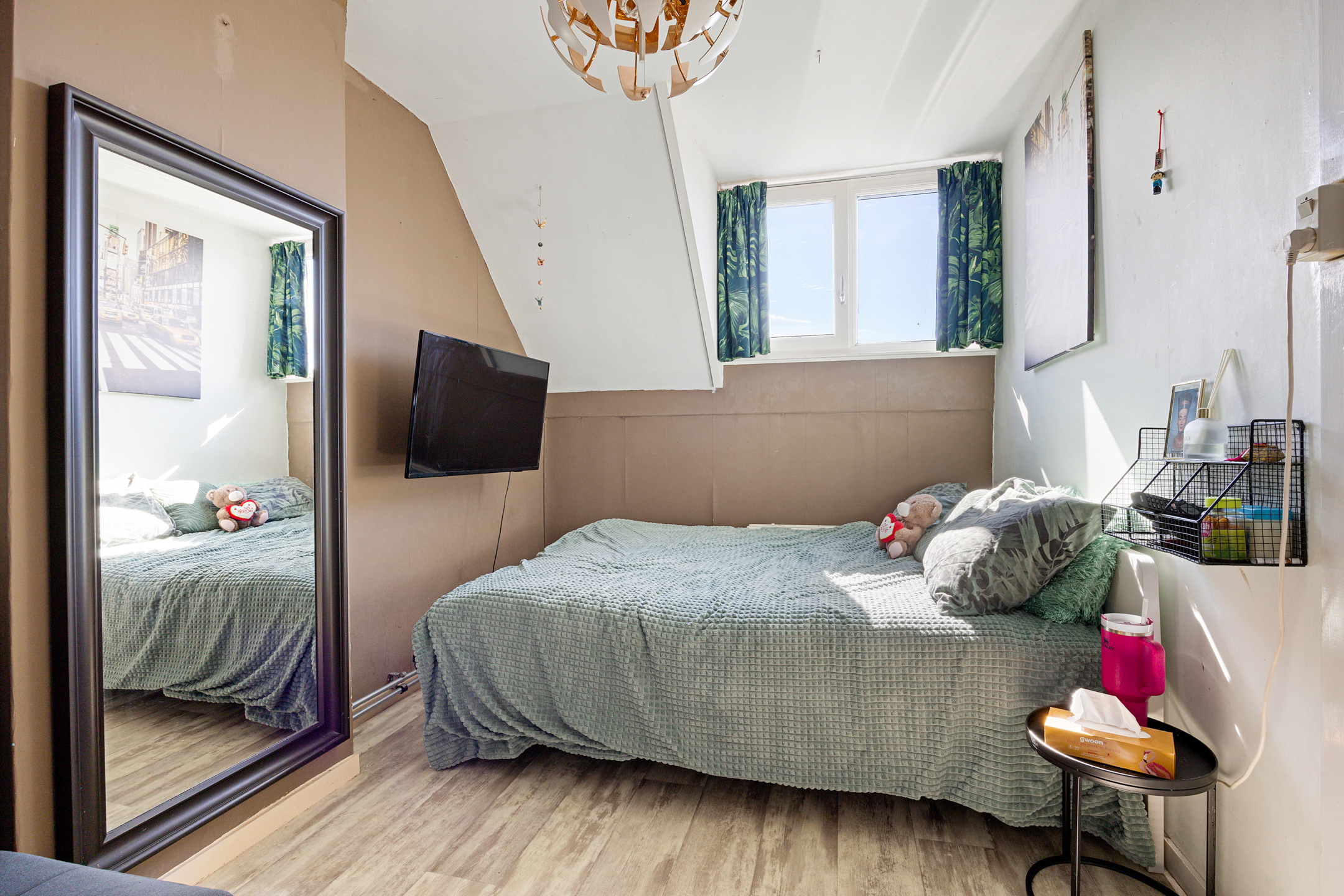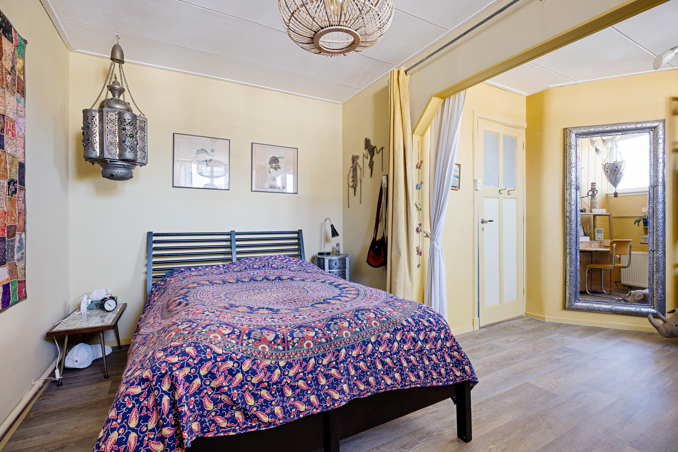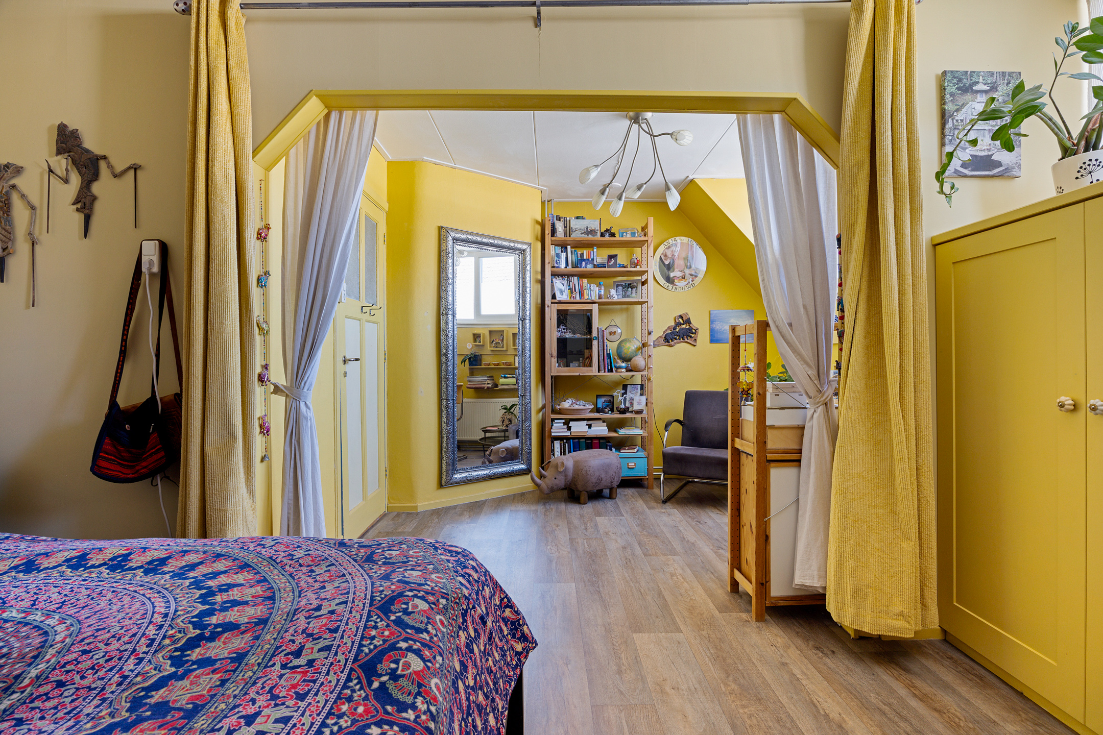 De zolder is verrassend ruim met twee dakramen en een royale slaapkamer. Op de overloop is volop extra bergruimte.