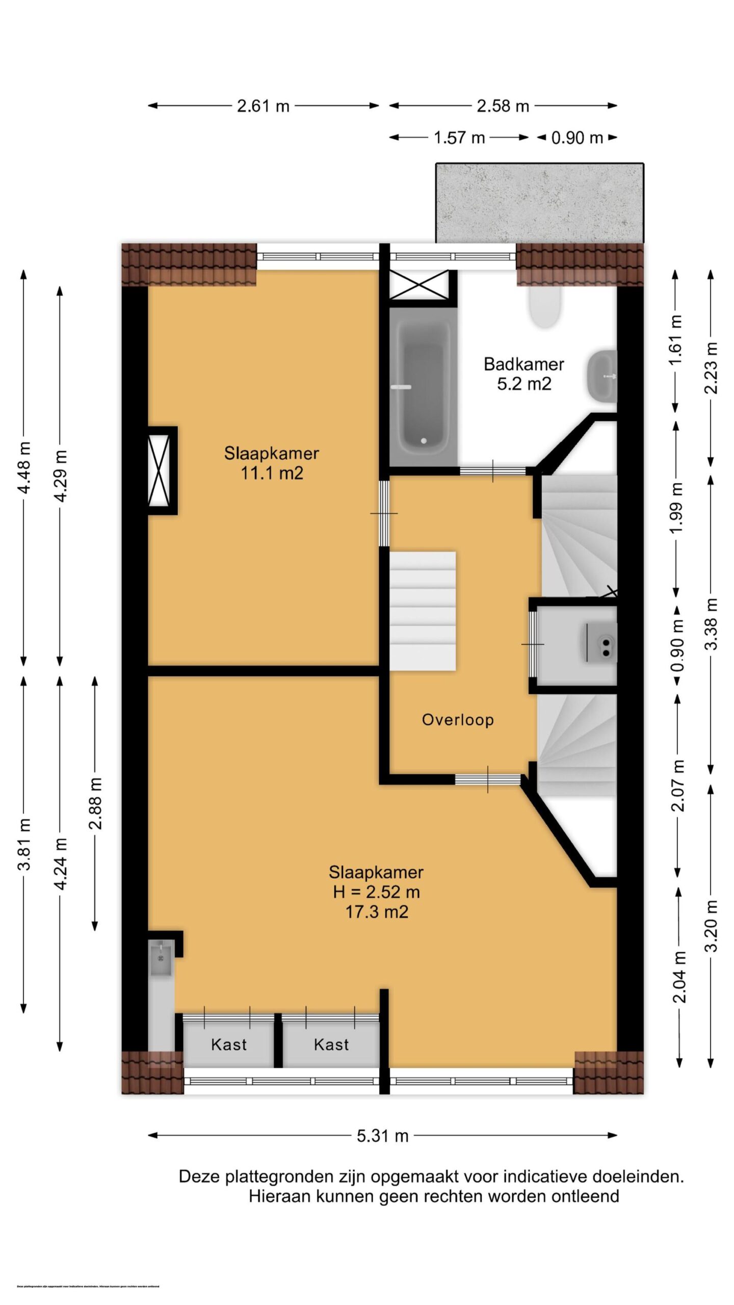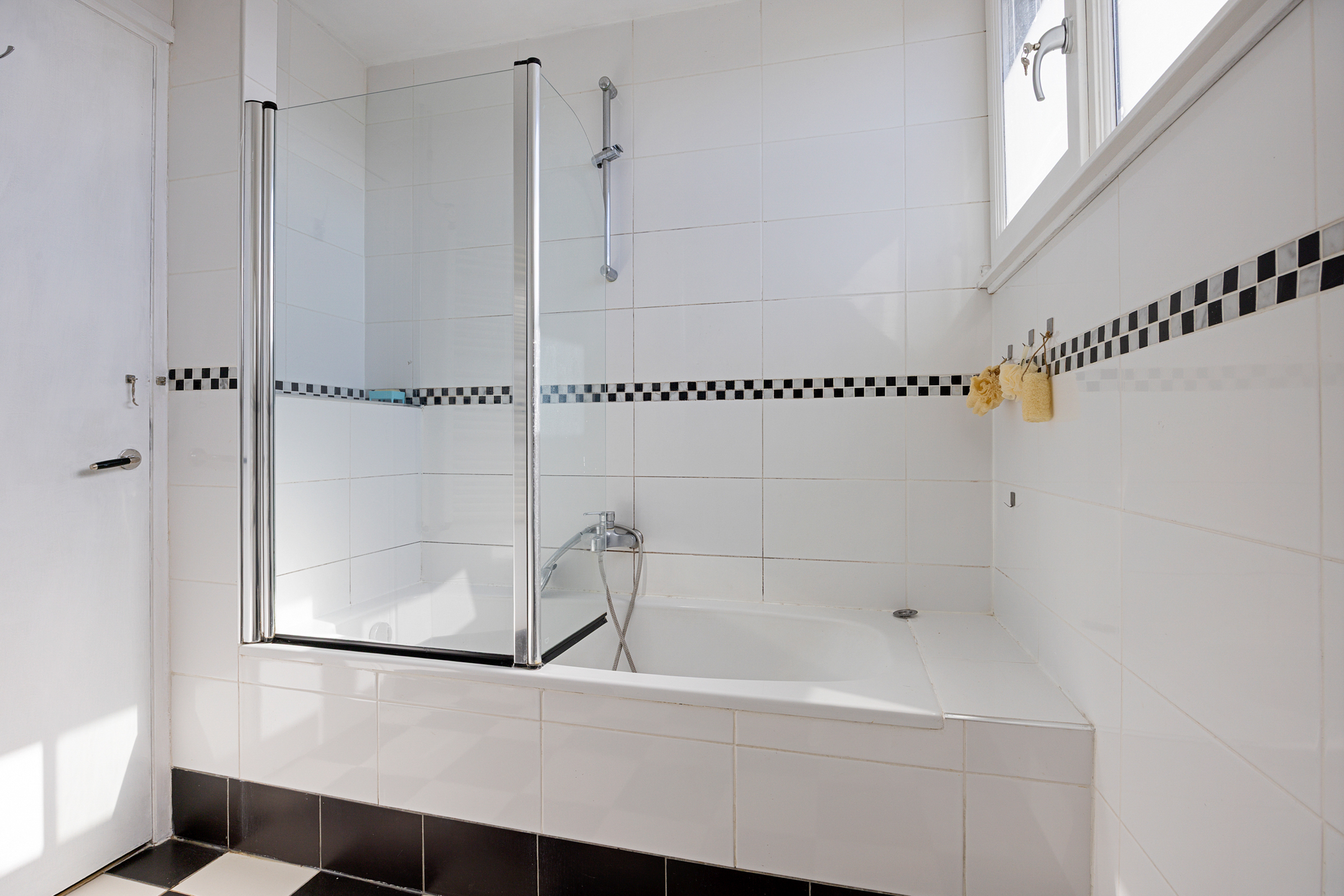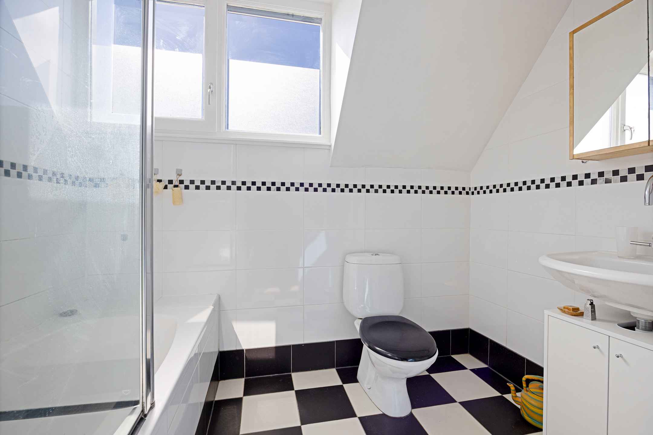 Ruime overloop met vaste kast waarin de cv-ketel (huur, 2017) is geplaatst. Aan de voorzijde en achterzijde bevinden zich twee ruime slaapkamers. De royale master bedroom aan de voorzijde was voorheen opgedeeld in twee kamers en is eenvoudig weer te splitsen. De badkamer is uitgerust met ligbad en douchecombinatie, wastafelmeubel met spiegel, toilet en handdoekradiator.
