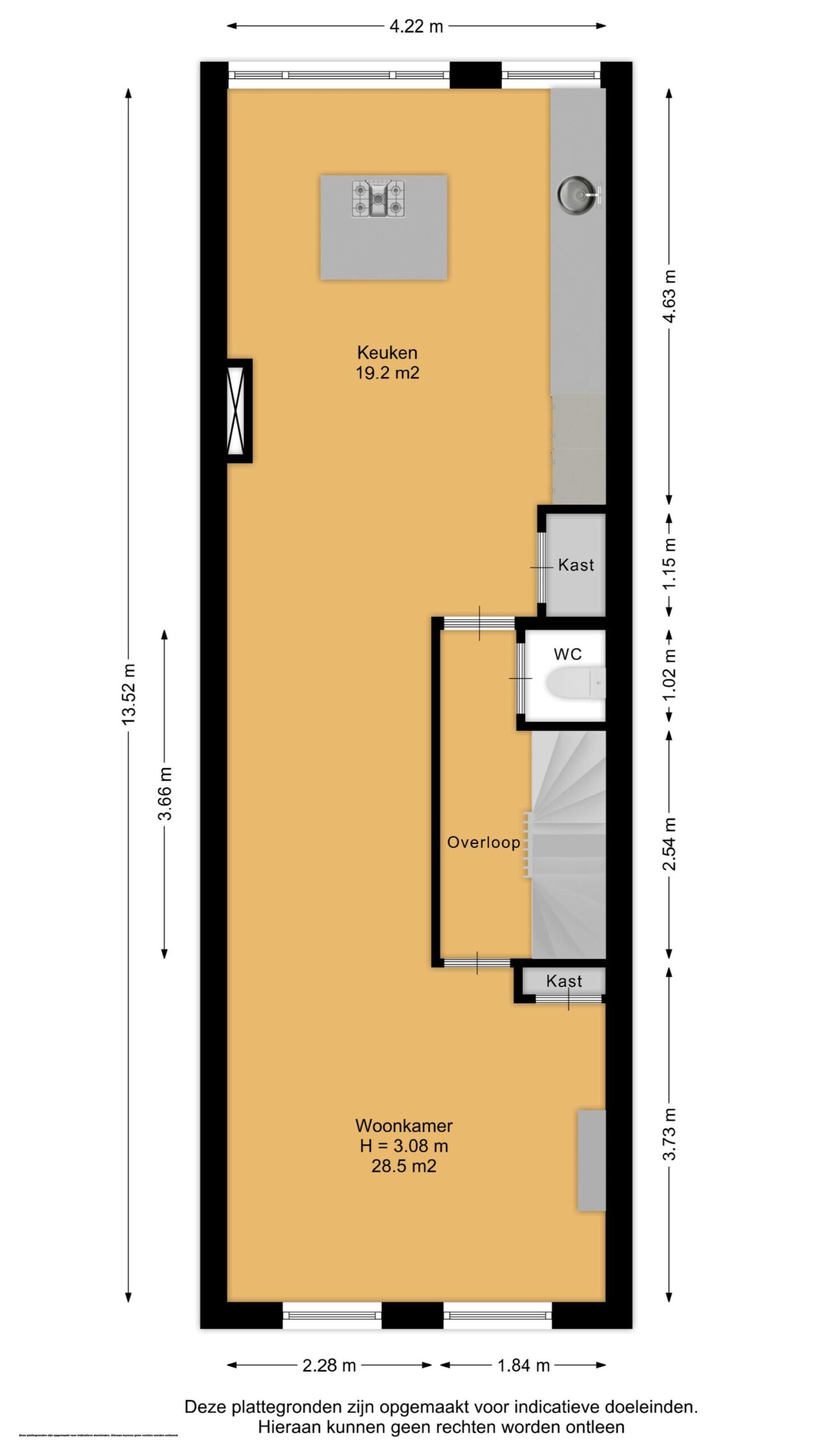 Via je eigen voordeur op de begane grond kom je binnen in de woning. De trap brengt je naar de eerste verdieping waar het stijlvolle woongedeelte zich bevindt.