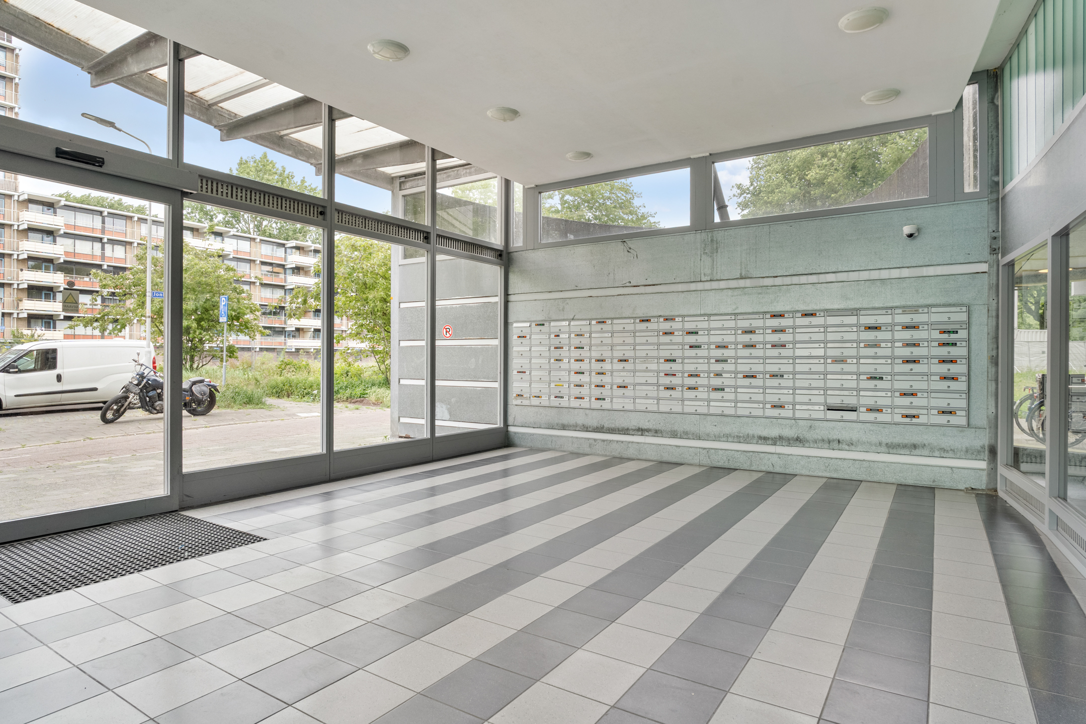 De centrale entree is netjes verzorgd en voorzien van een intercomsysteem en brievenbussen. Via de afgesloten binnenhal heb je toegang tot de liften en tot de bergingen op de begane grond. Hier bevindt zich jouw eigen (fietsen)berging, ideaal voor extra opslag of het stallen van fietsen.