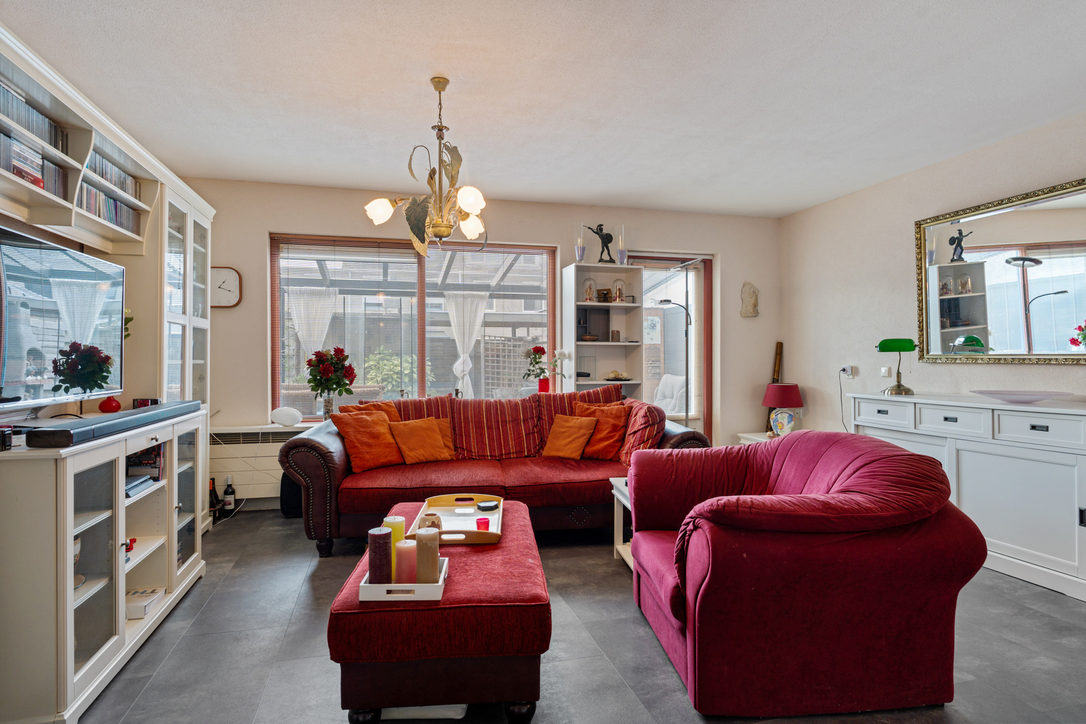 + Aangebouwde serre met vloer en elektrisch zonnescherm