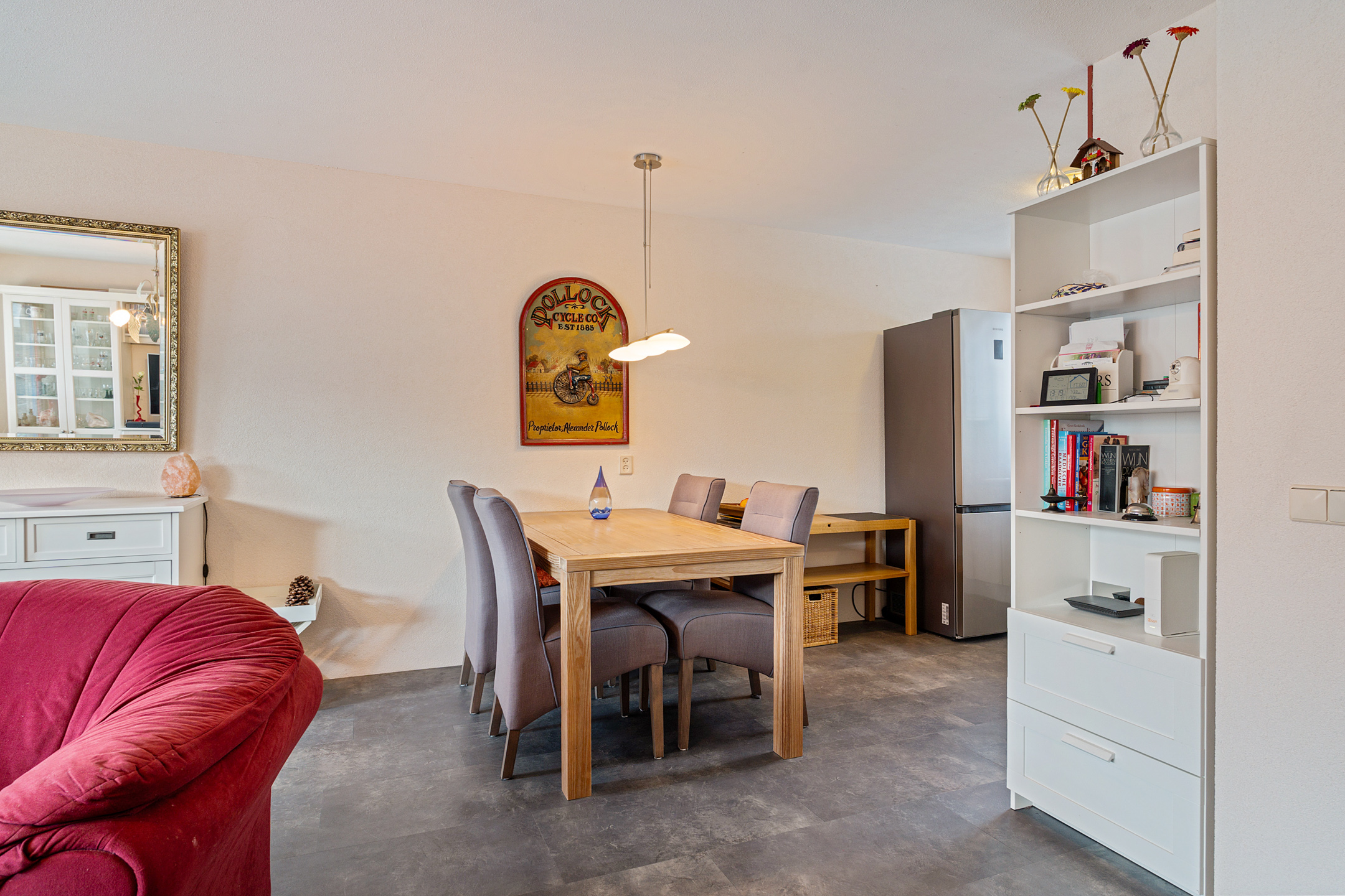 + Woonkamer voorzien van PVC-tegels en vloerverwarming