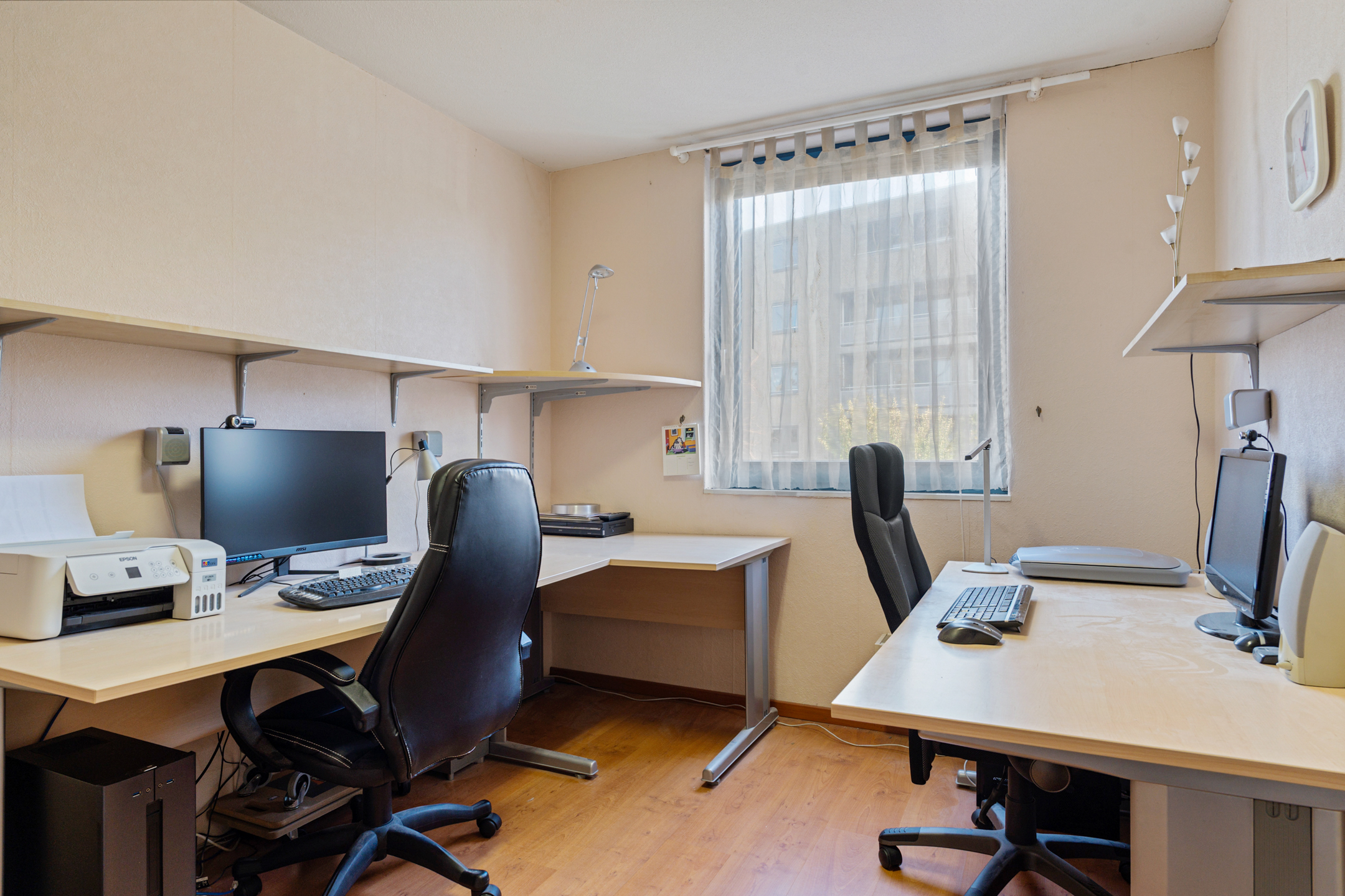 Op deze verdieping bevinden zich drie slaapkamers: één aan de voorzijde en twee aan de achterzijde. De twee achterkamers zijn voorzien van rolluiken, ideaal voor licht- en warmteregulatie.