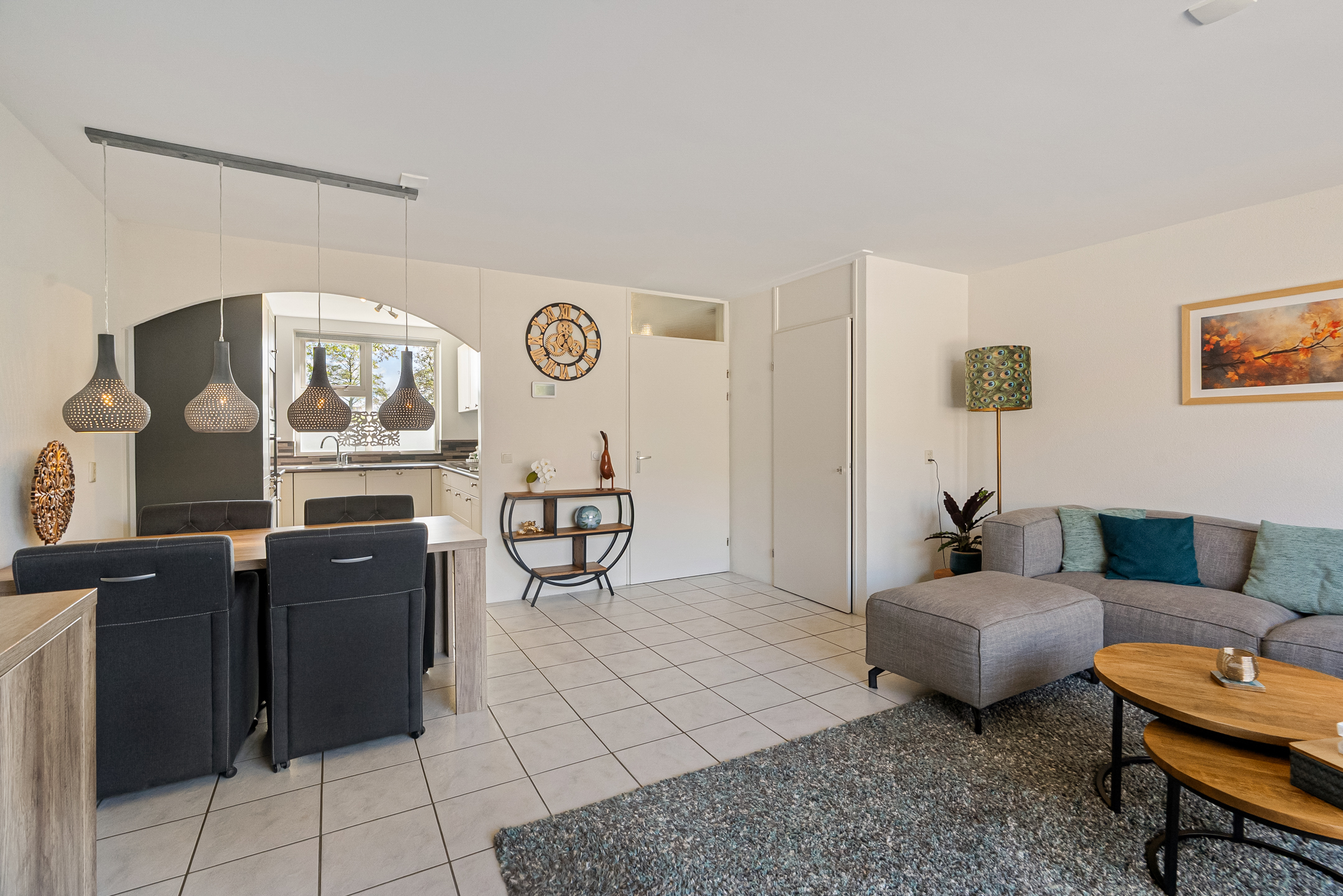Aan de voorzijde ligt de lichte en verzorgde open keuken, uitgerust met diverse inbouwapparatuur zoals een inductiekookplaat, koel-vriescombinatie, oven, combimagnetron, vaatwasser en afzuigkap. Daarnaast is er een praktische trapkast aanwezig voor extra bergruimte.