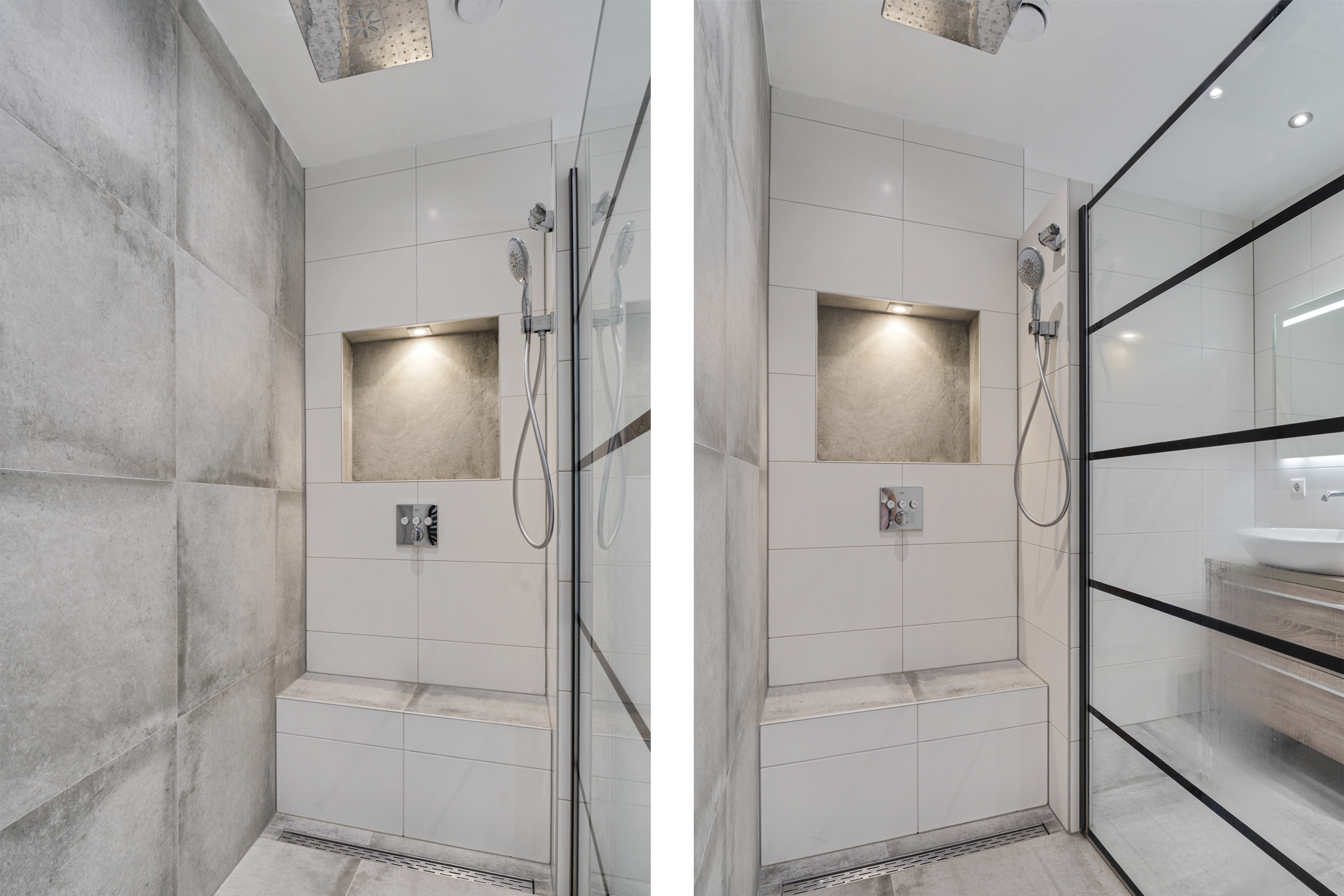 + Modern sanitair (2019) met Grohe inbouwkranen, regendouche en verwarmde spiegel