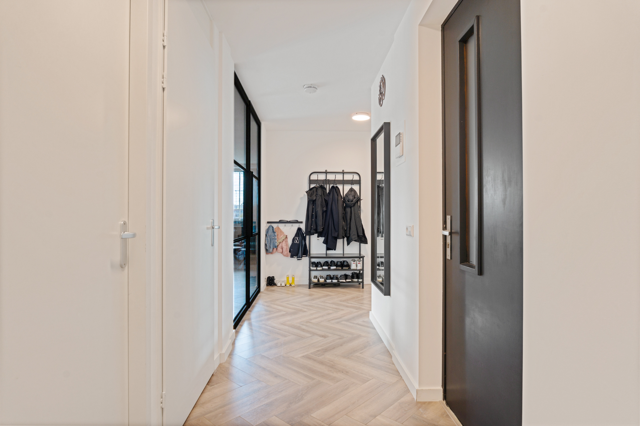 Ruime hal met garderobe, meterkast en toegang tot alle vertrekken.