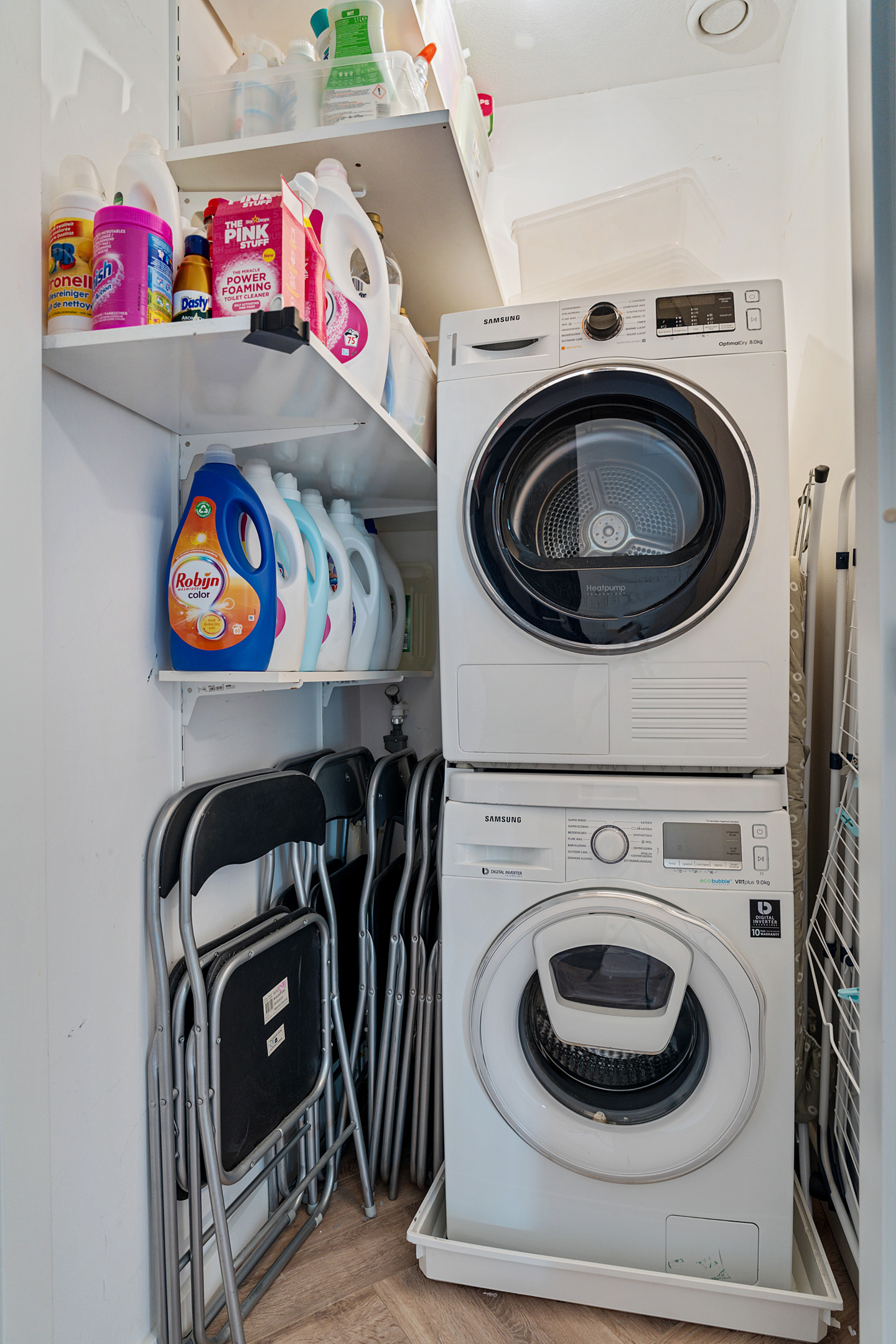 Aan de voorzijde liggen drie goed bemeten slaapkamers van circa 10 tot 16 m². Daarnaast is er een aparte wasruimte met plaats voor wasmachine en droger én een separate technische ruimte met de WTW-installatie en cv-ketel.