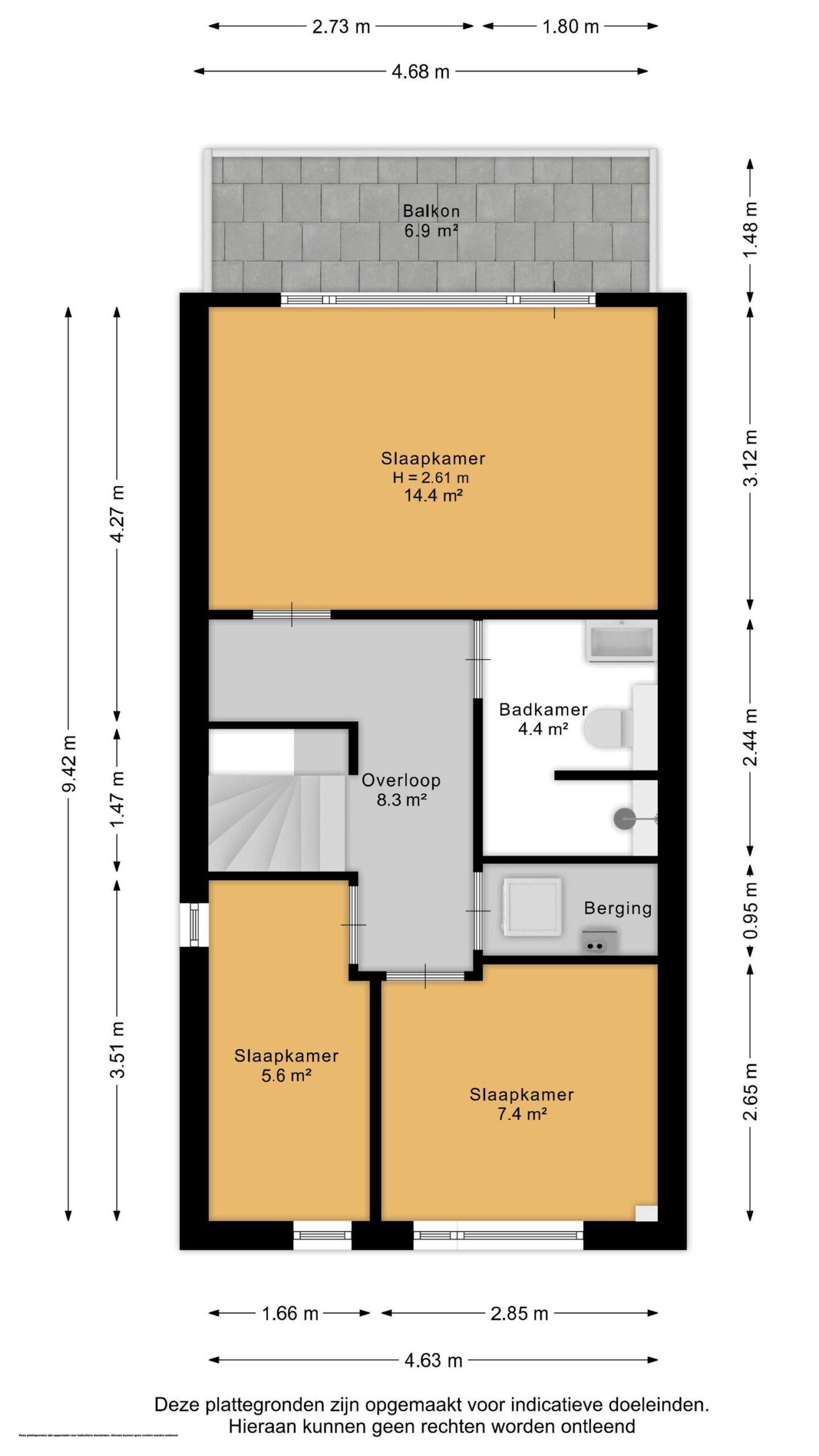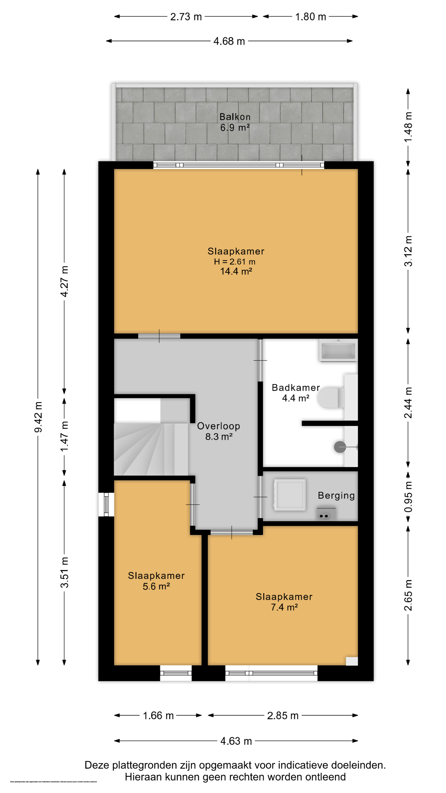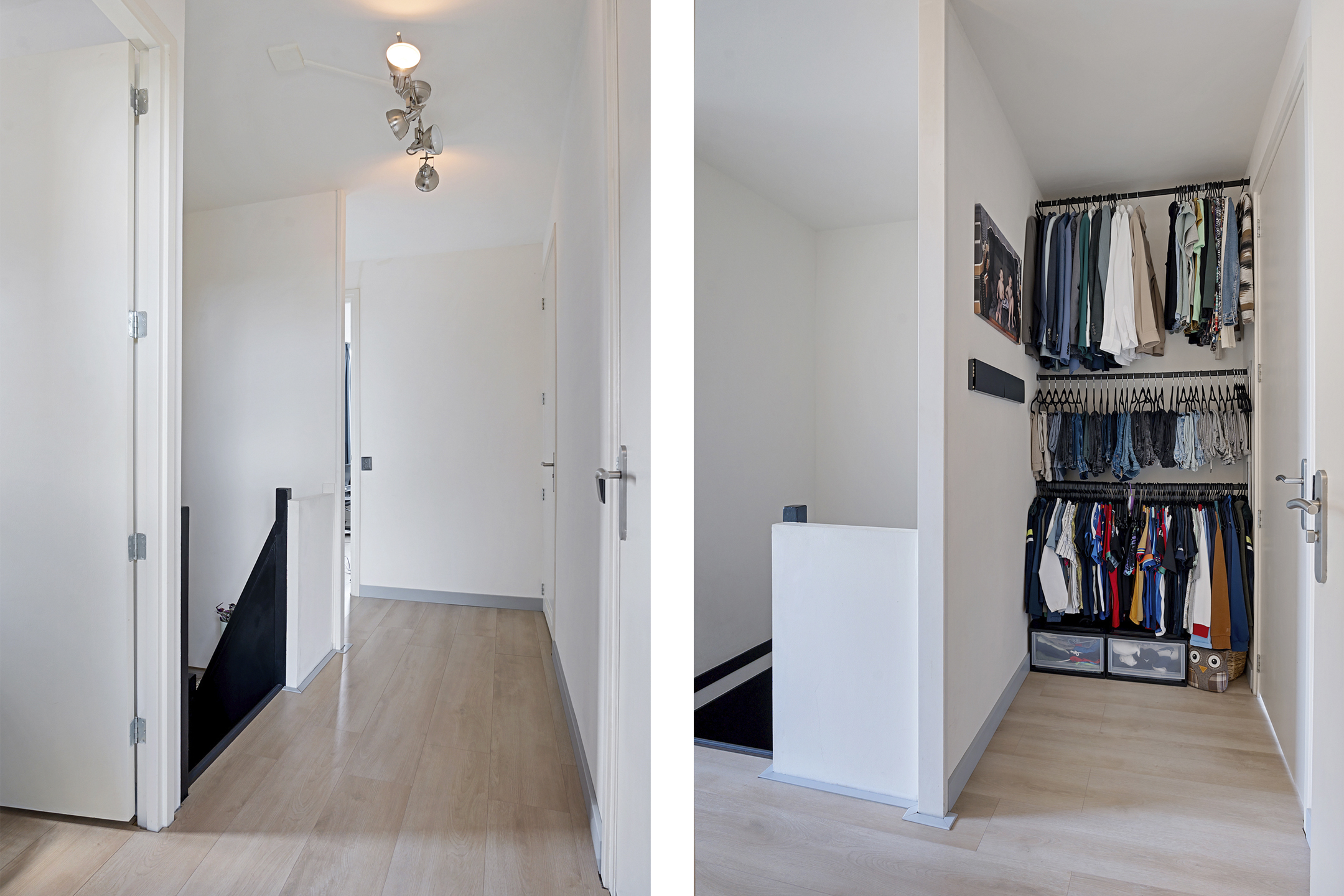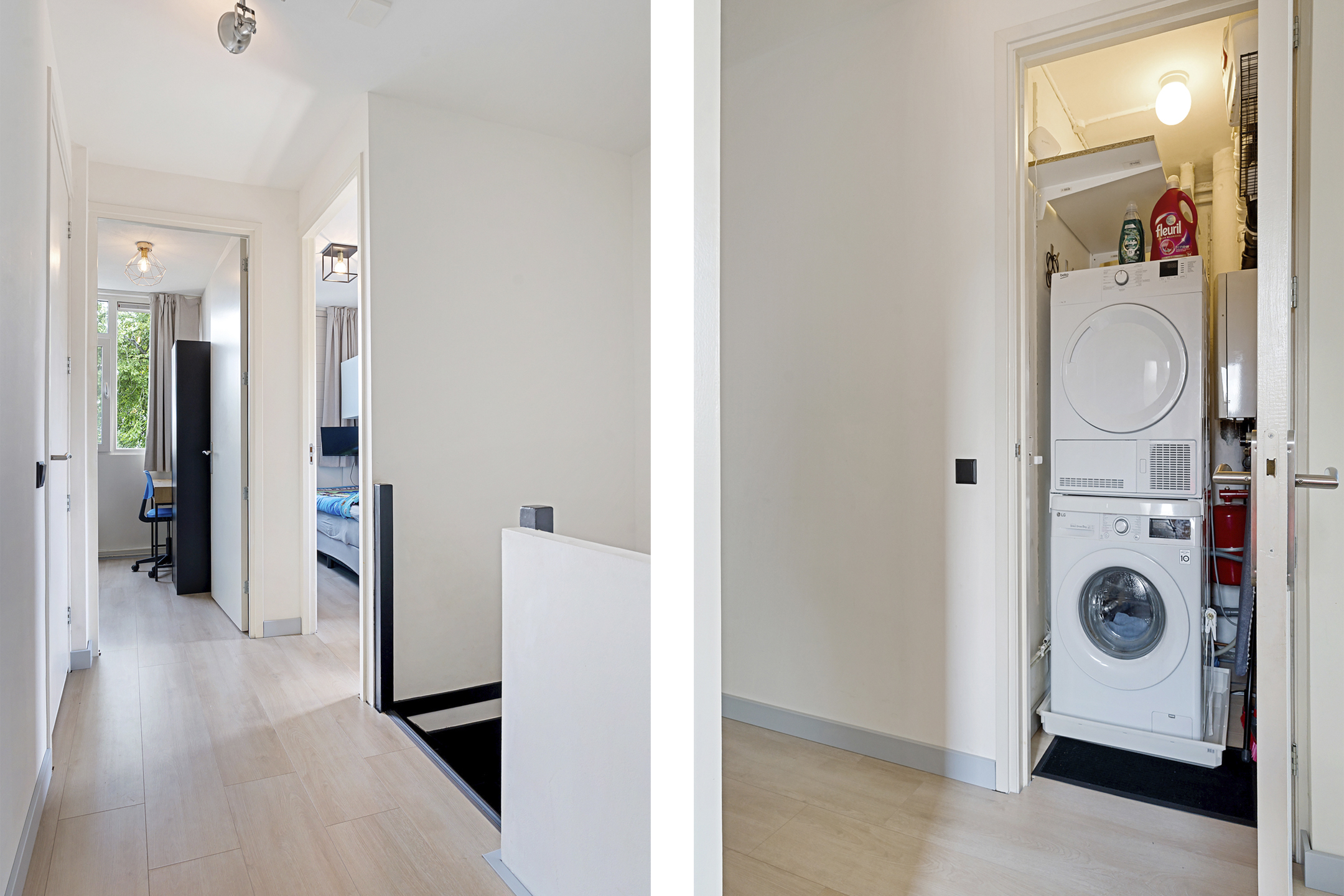 De bovenverdieping telt drie slaapkamers, waarbij de originele slaapkamer aan de voorzijde is opgesplitst in twee aparte kamers. Ook hier zorgt een extra zijraam voor extra daglicht. De badkamer (2016) is uitgerust met een wastafelmeubel, tweede toilet en een inloopdouche. Daarnaast is er een praktische was- en stookruimte met aansluitingen voor de wasmachine en de cv-installatie. Extra pluspunt: er bestaat de mogelijkheid tot het realiseren van een dakopbouw aan de achterzijde.