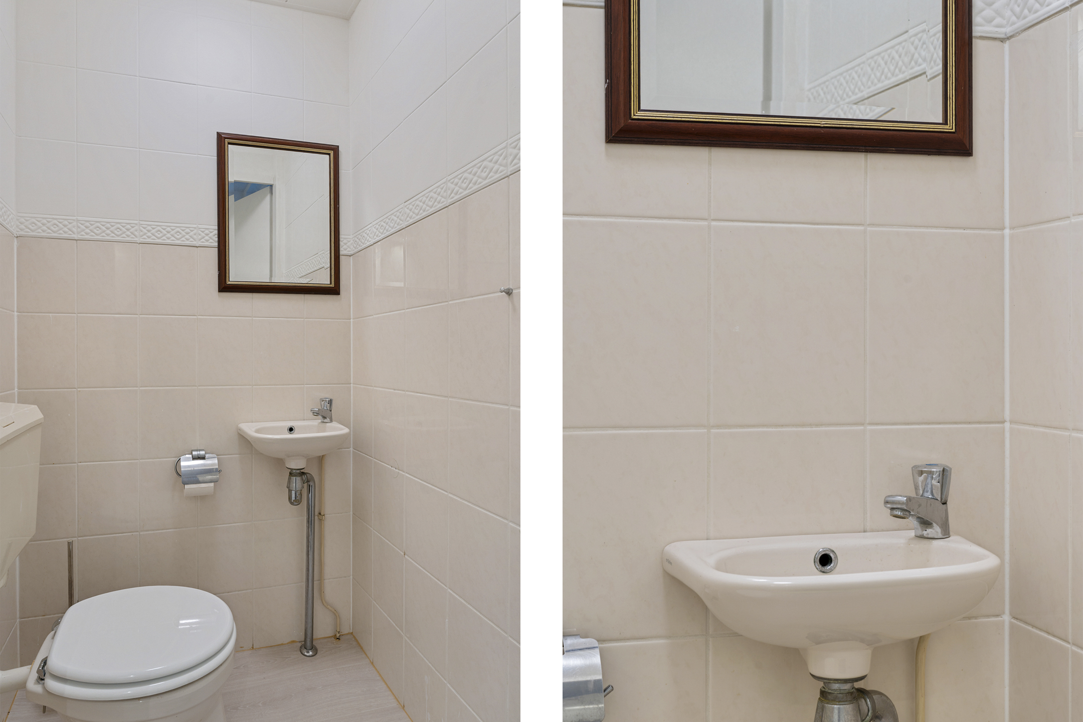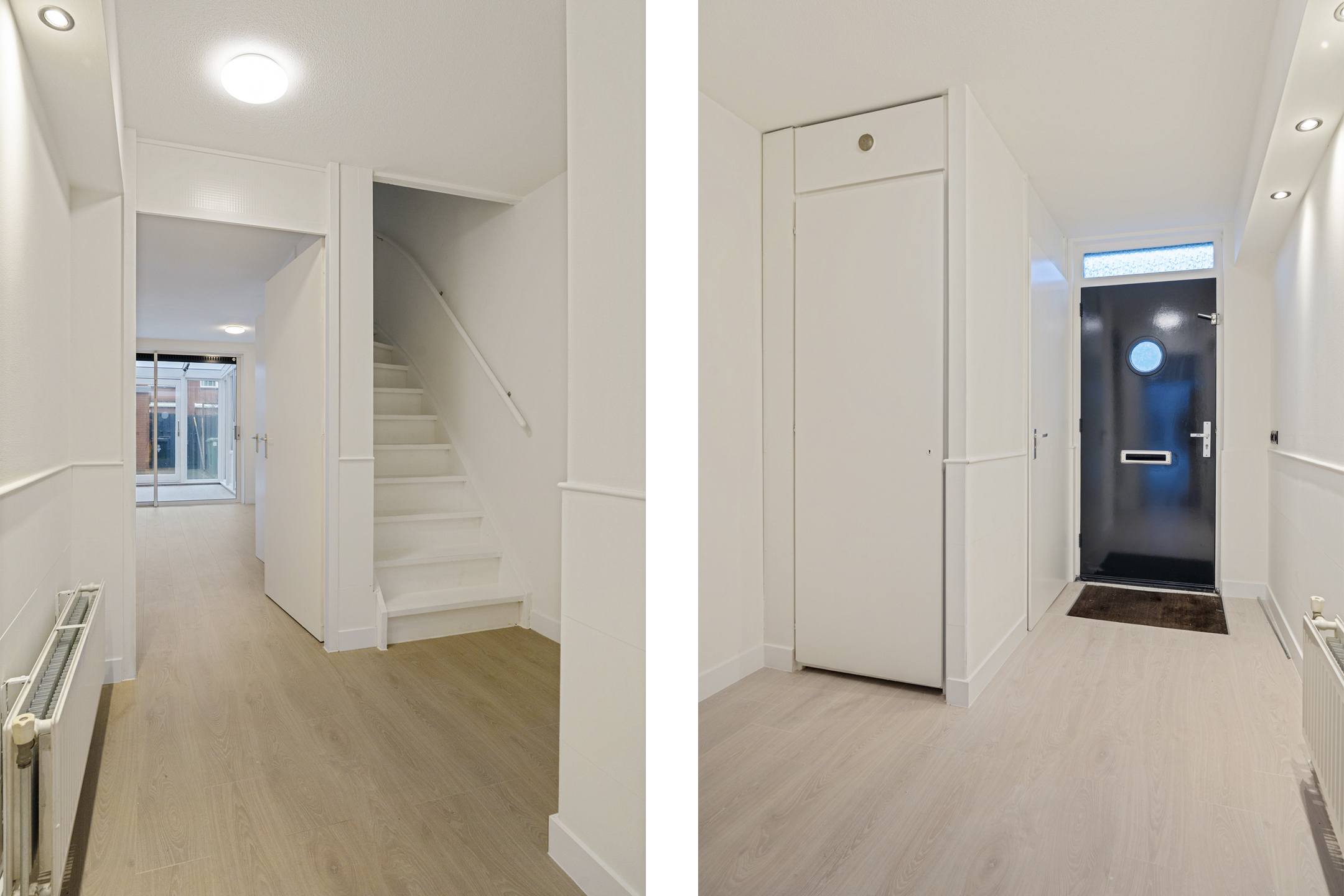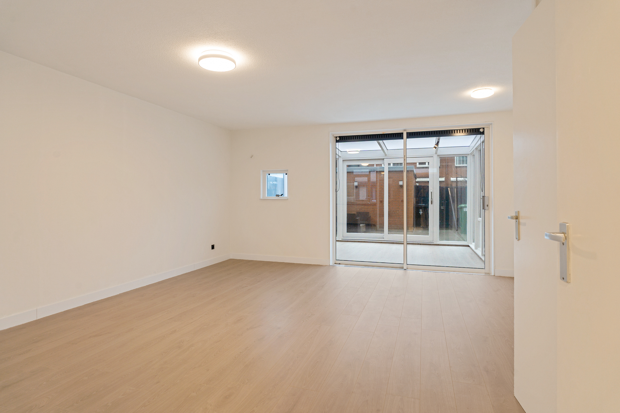 Via de entree kom je in de hal met meterkast en toiletruimte met fonteintje. De lichte woonkamer voelt ruim aan en staat in directe verbinding met de tuinkamer en de achtertuin. De tuinkamer vormt een volwaardige extra leefruimte en is ideaal als tweede zithoek, werkplek of speelruimte.