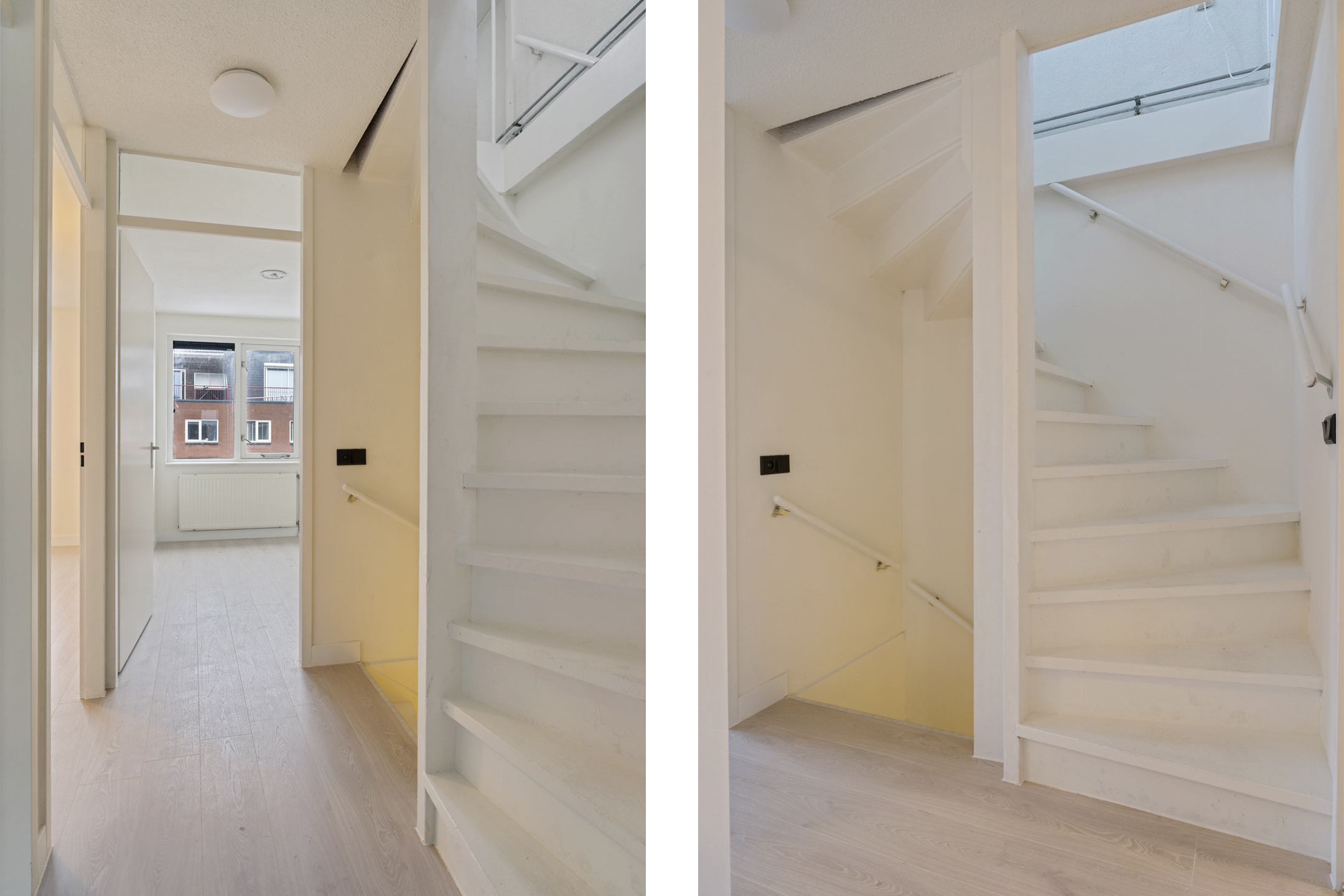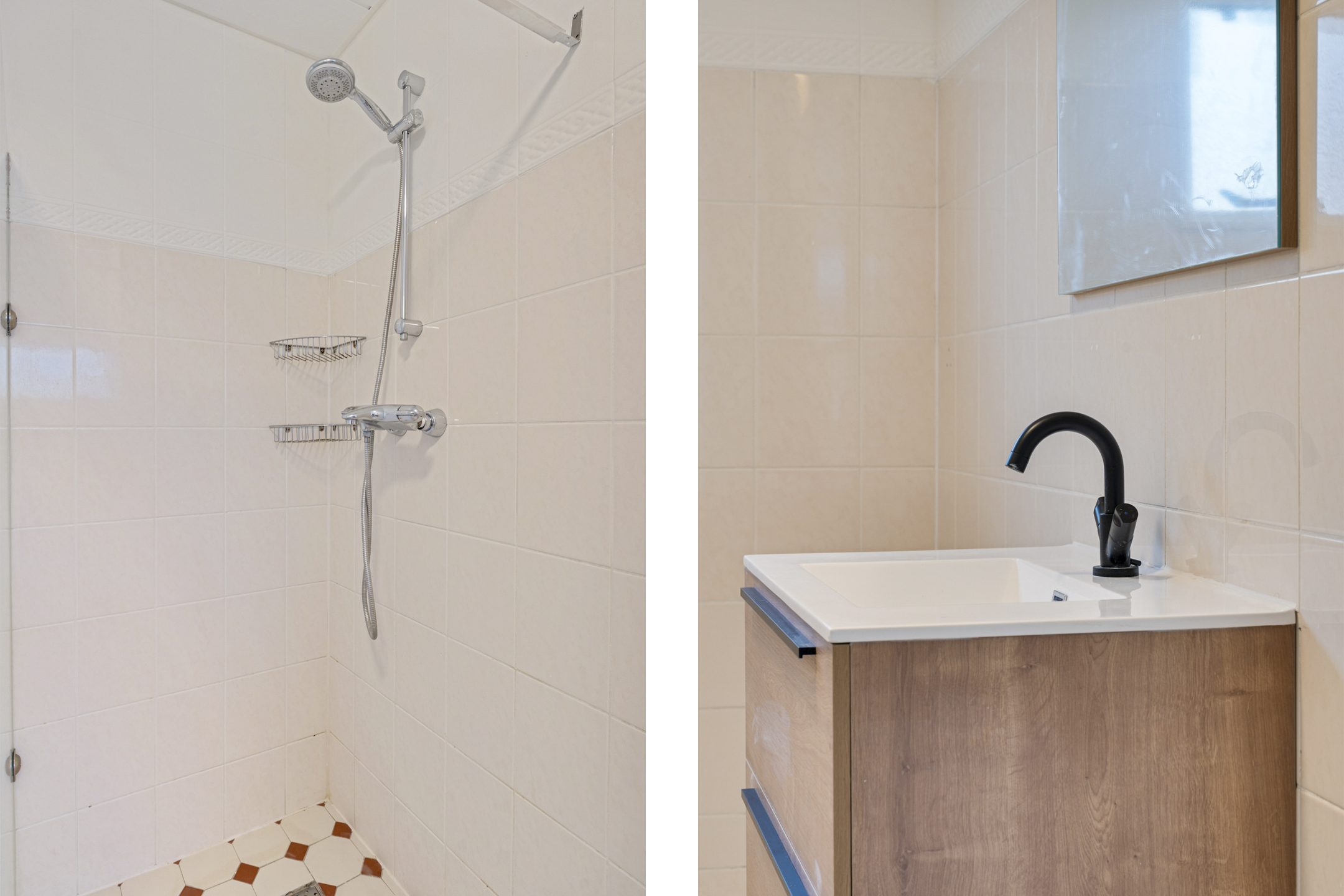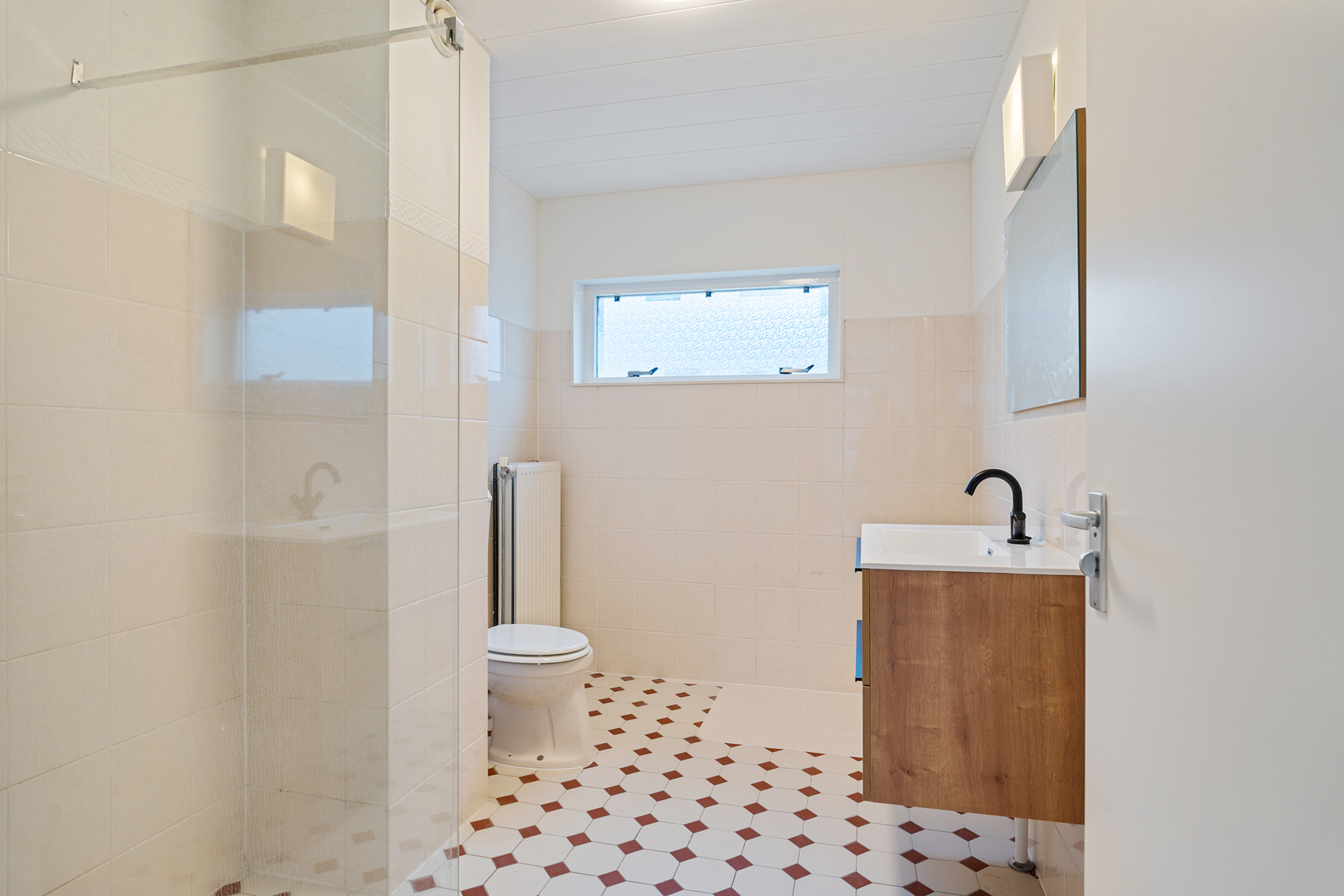 De overloop geeft toegang tot meerdere slaapkamers. De kamers zijn netjes afgewerkt en praktisch in te delen. De badkamer is voorzien van een douche, toilet en wastafelmeubel.