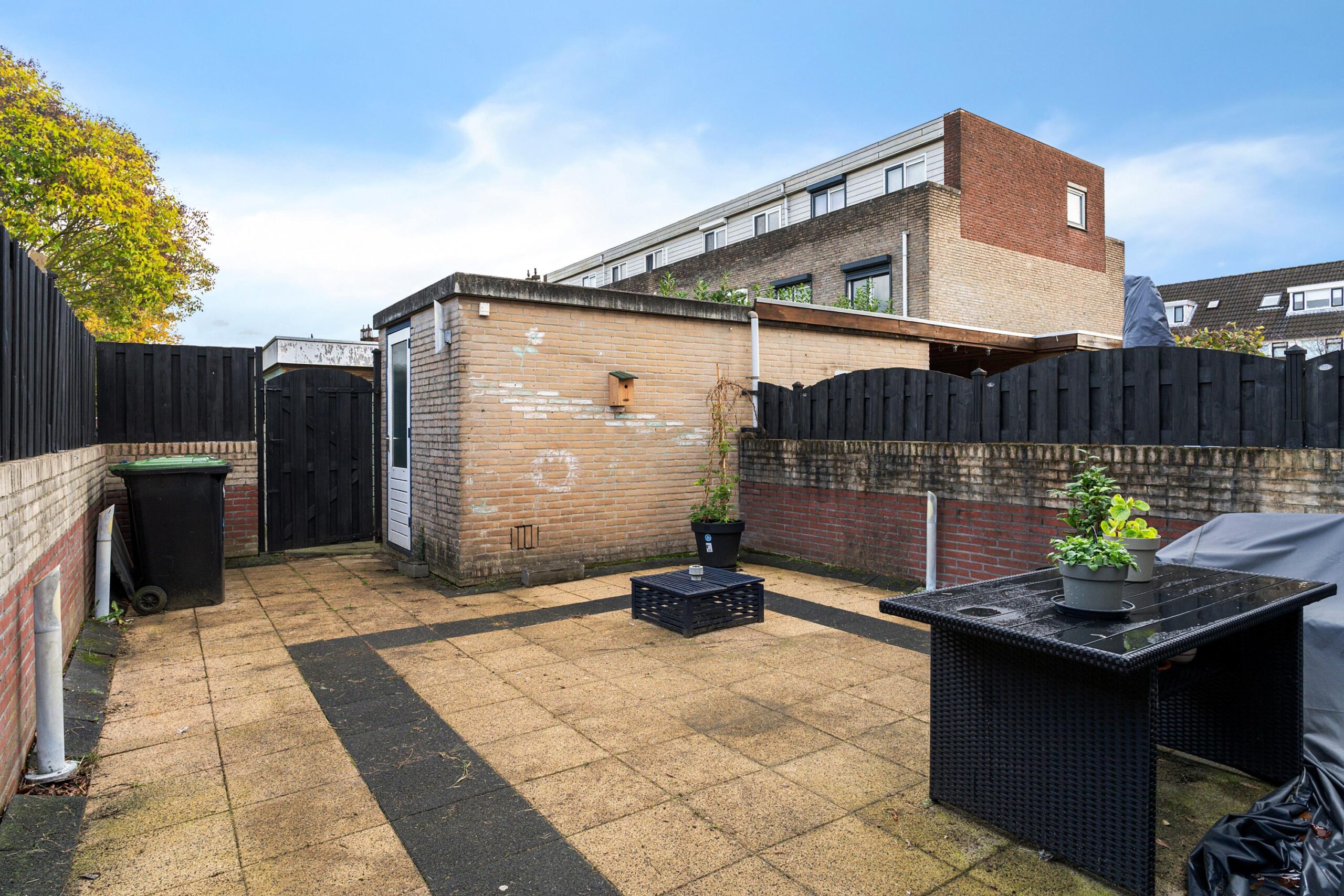 De achtertuin ligt op het noordoosten, is onderhoudsvriendelijk bestraat en beschikt over een stenen berging en een handige achterom.