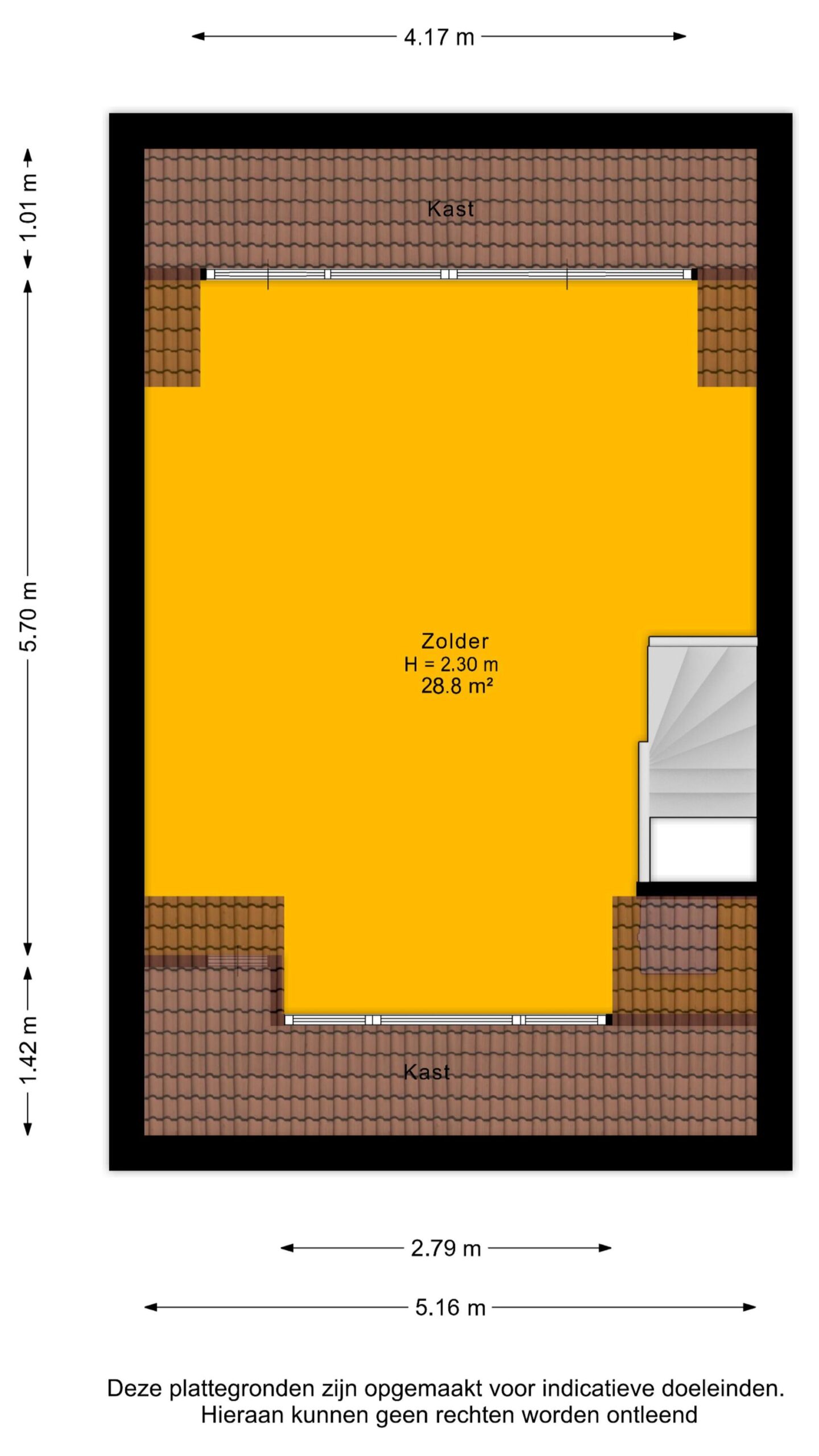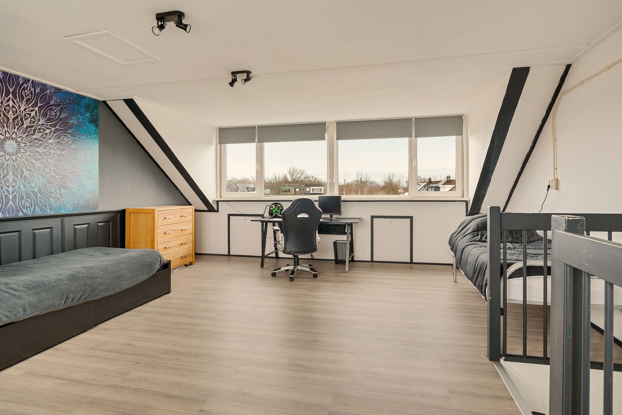 De zolderverdieping is een fijne open ruimte met twee dakkapellen die zorgen voor veel daglicht en extra ruimte. Hier bevindt zich de aansluiting voor de wasmachine. Achter de knieschotten en op de vliering is volop bergruimte aanwezig. De verdieping is afgewerkt met een laminaatvloer.